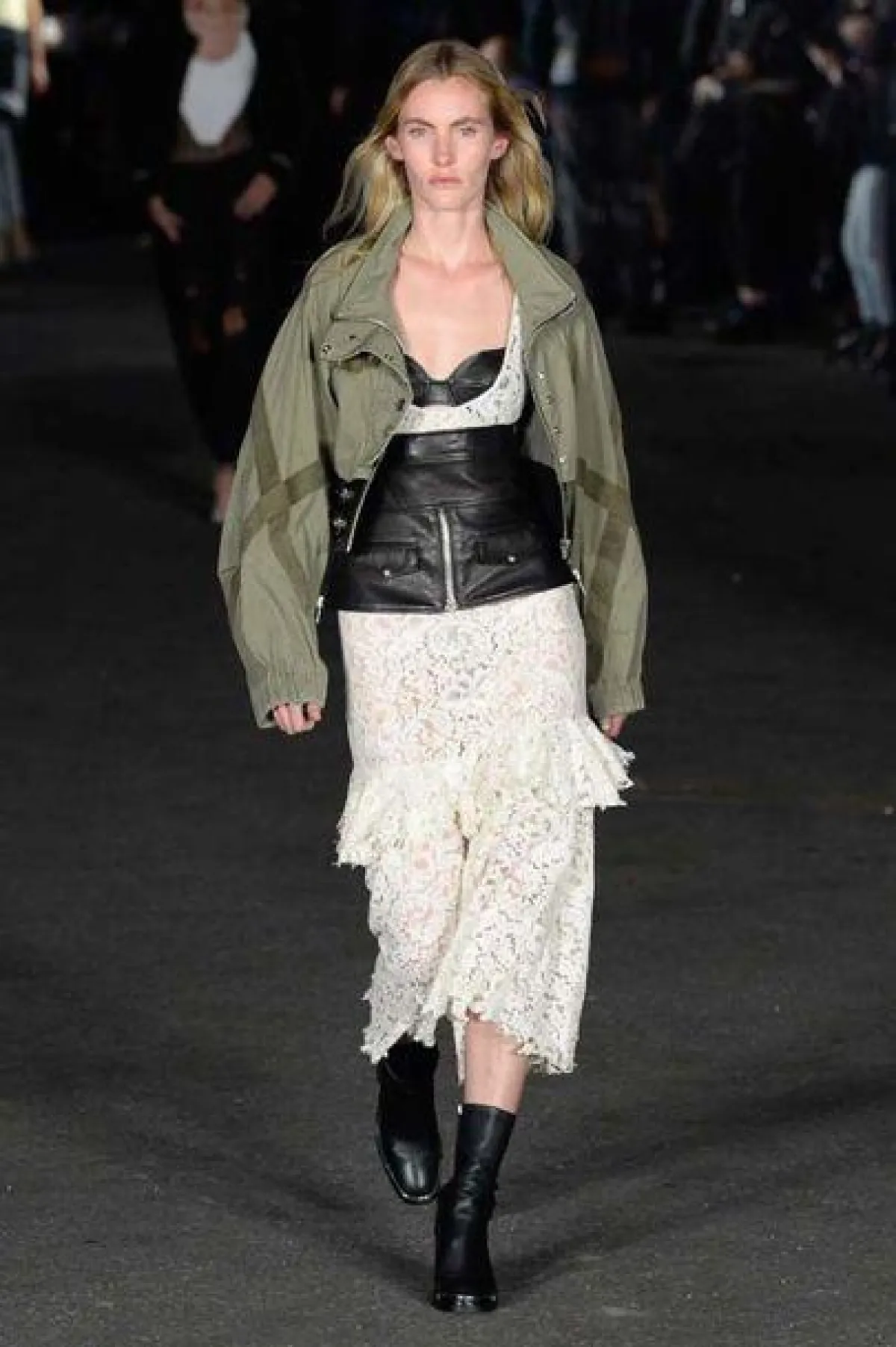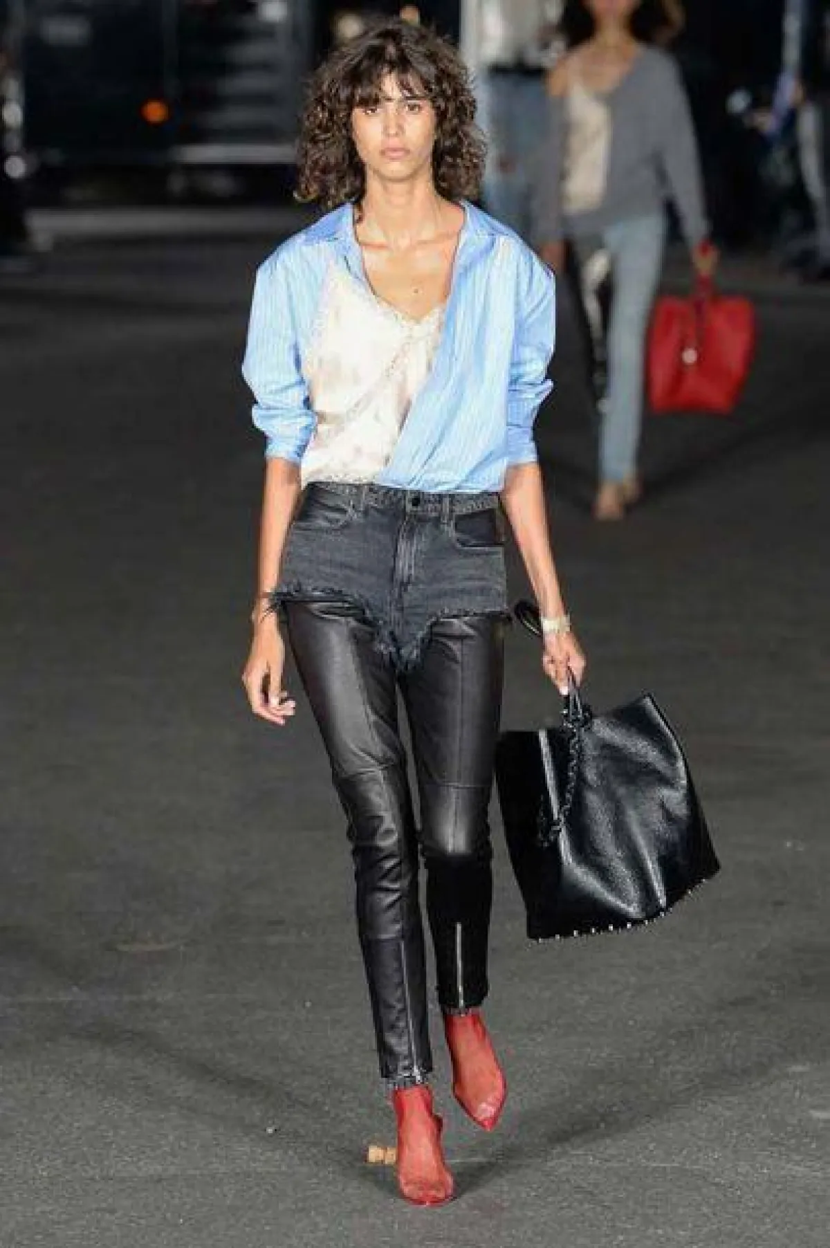 كذلك تابعنا عرض أزياء دار "الكسندر وانغ" Alexander Wang وقد استوحيت المجموعة بشكل أساسي من حفل مسائي في نيويورك، فشاهدنا عارضات الأزياء في تصاميم فساتين قصيرة بدت الى حد بعيد مبتكرة وقد نسقنا معها اكسسوارات شعر مزينة بشعارات احتفالية، كما شاهدنا التصاميم المبتكرة والجريئة والتي امتزج فيها النمط الرياضية مع النمط الرسمي الفاخر، أو امتزج فيها أسلوب الروك أن رول مع اللمسات الأنثوية الناعمة.