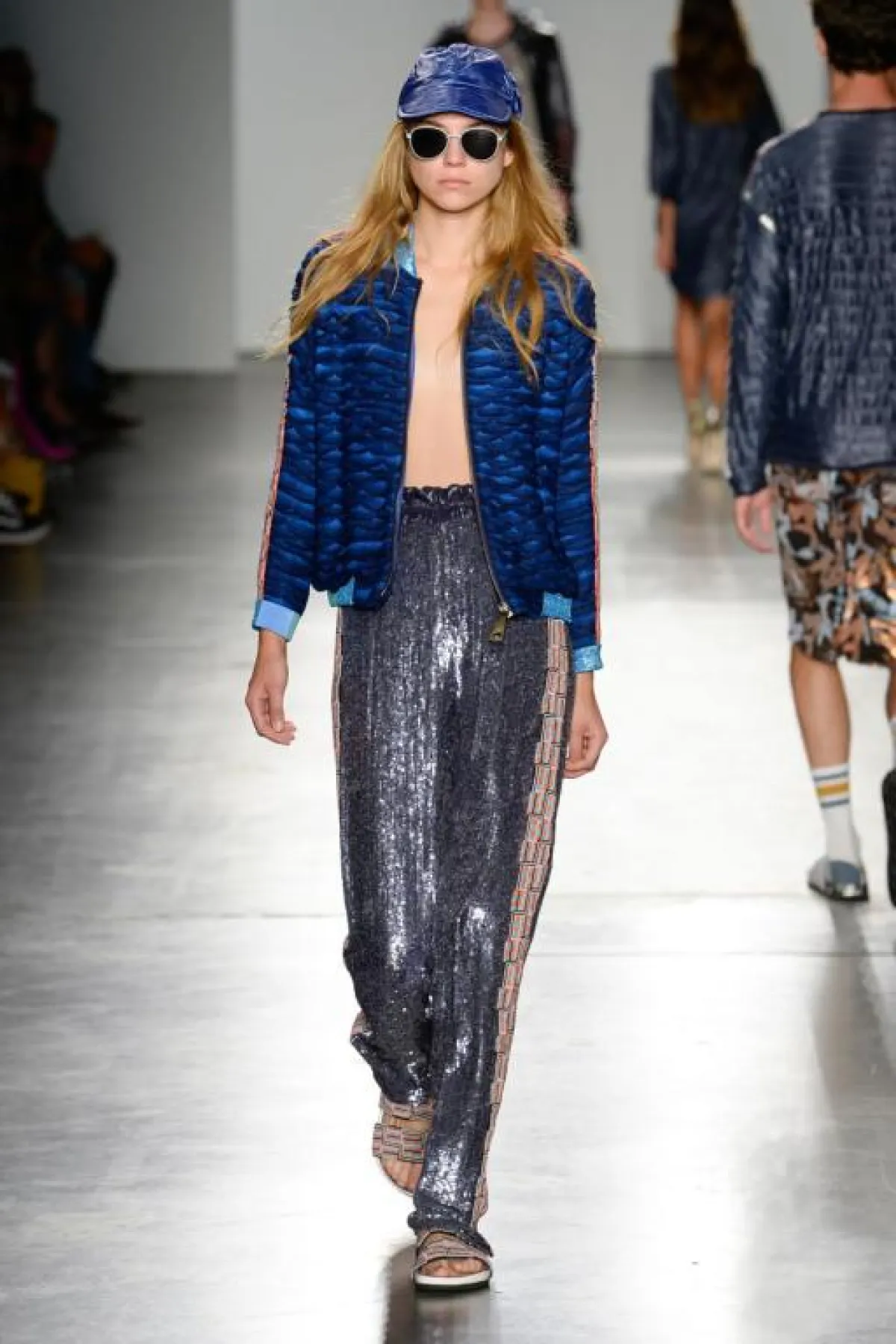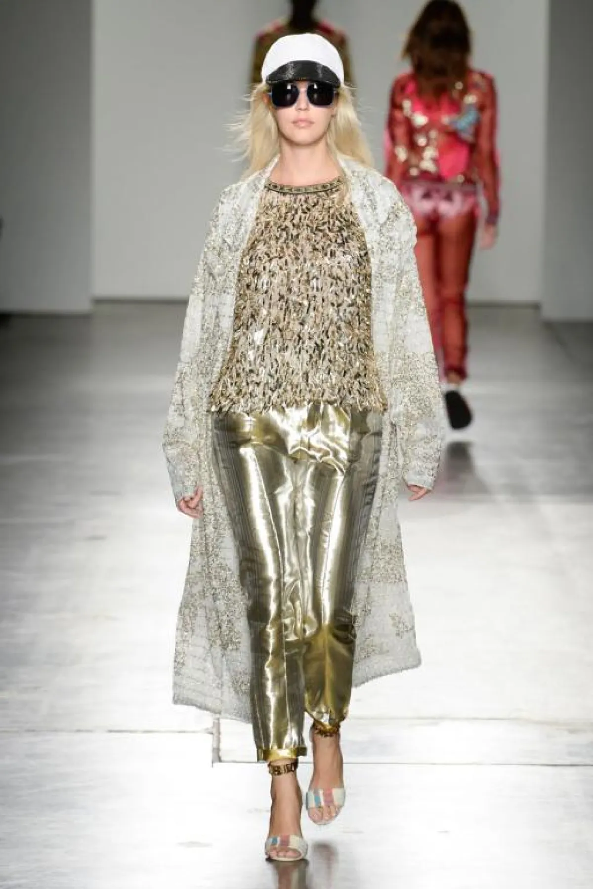 وفي نفس اليوم تابعنا عرض أزياء دار "كوستو برسلونة" Custo Barcelona والذي بدا عرض صيفي بامتياز، فأجواء البحر كانت حاضرة بقوة، من ناحية التصاميم والألوان وملابس السباحة التي بدت الى حد بعيد رسمية، كما أن اللمسات الرياضية أيضاً كان له حضور لافت على المجموعة وقد قدمت بأساليب جديد ولافتة، وللأقمشة المعدنية وخاصة اللون الذهبي الحصة الأكبر في المجموعة.