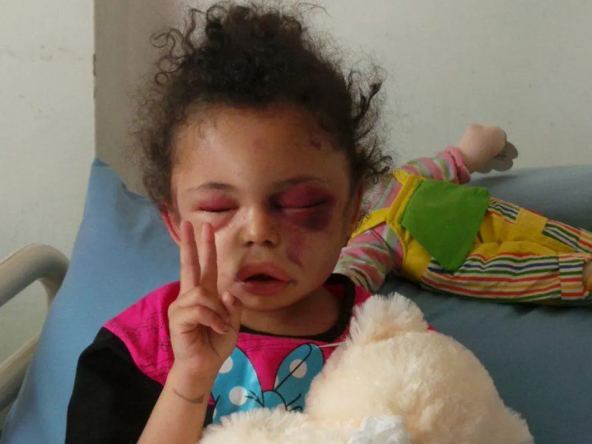 وأثارت الطفلة بثينة (خمس سنوات) مشاعر ملايين الناس في الدول العربية ودول العالم عندما أفاقت في المستشفى وقد أصيبت إحدى عينيها، وتستخدم أصابع يدها محاولة فتح العين الأخرى لترى أين هي وماذا حدث لها.