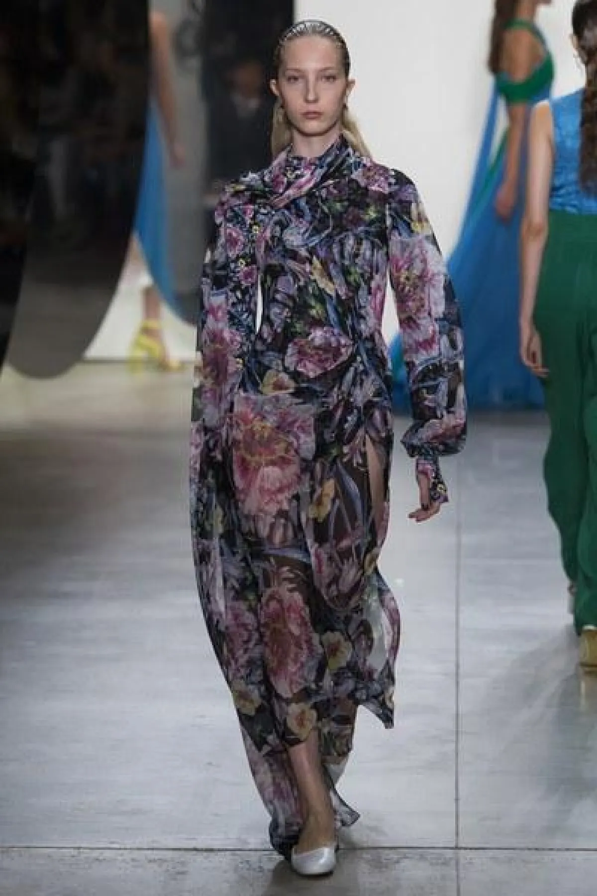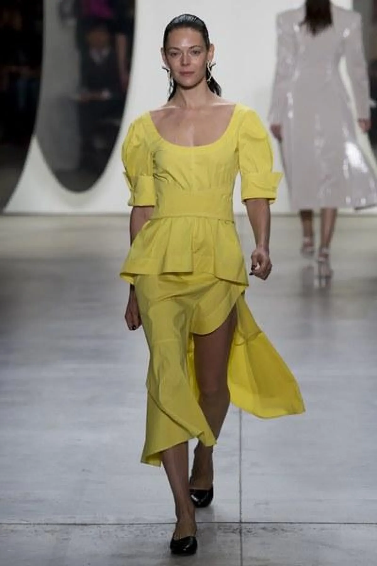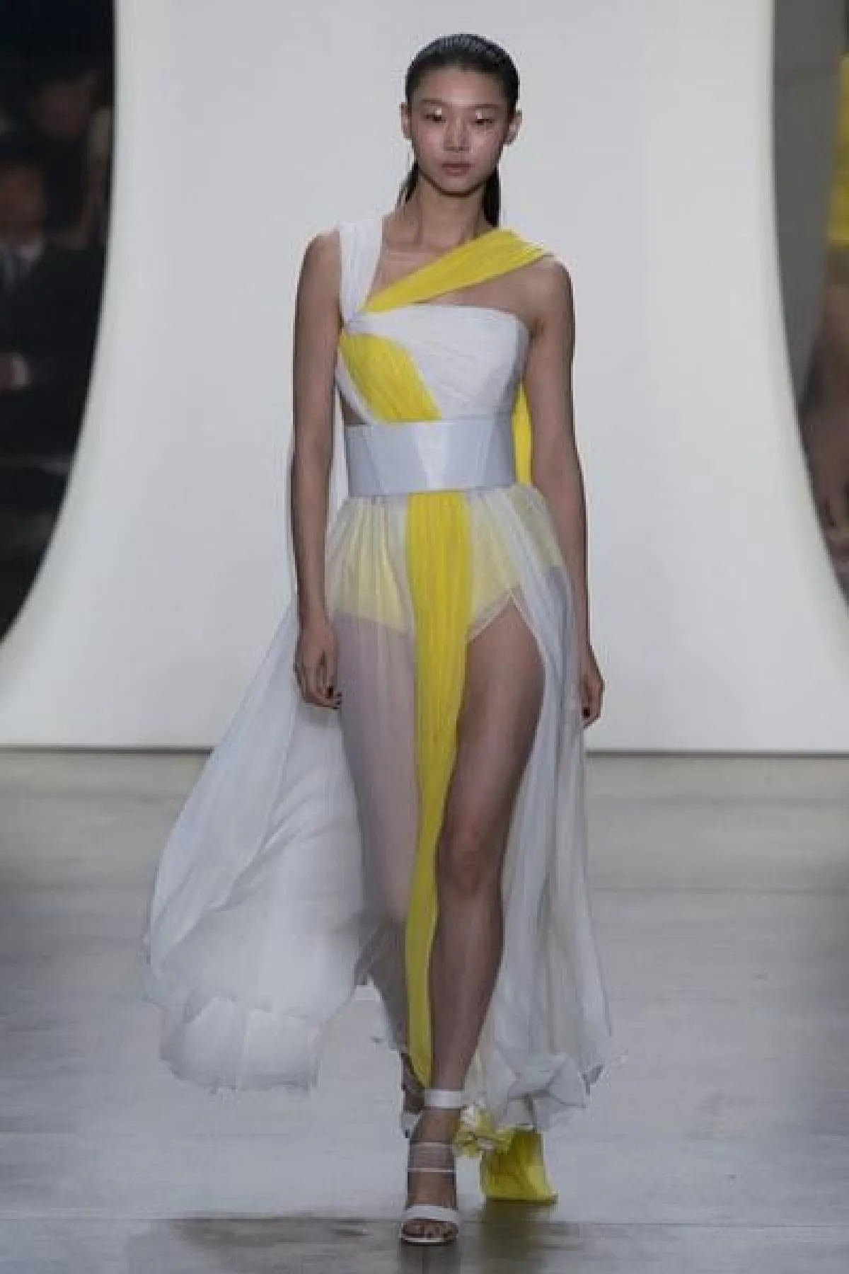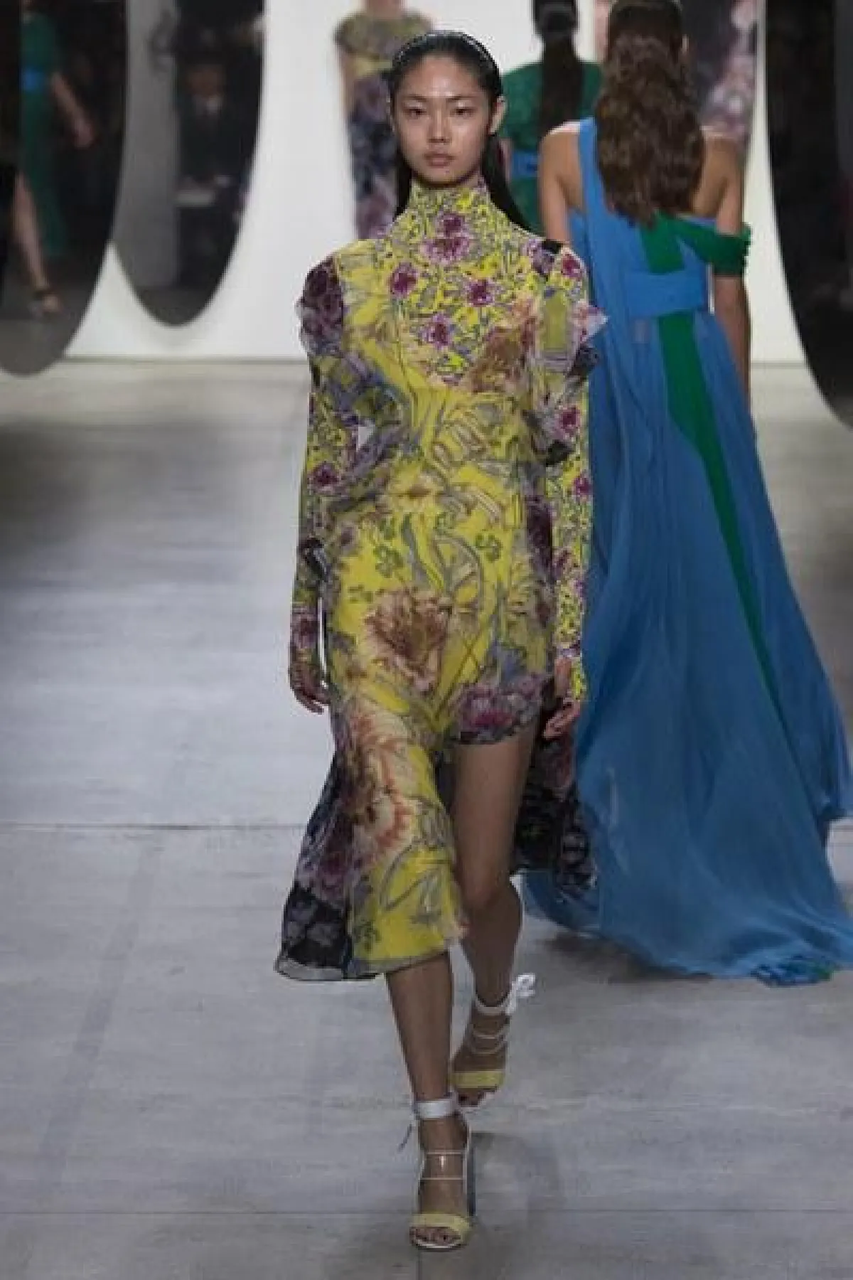 وضمّت تشكيلة غورونغ مجموعة من الفساتين الناعمة والبسيطة التصميم، التي تميزت بالأكمام الطويلة والواسعة الكبيرة الحجم، وبعضها كان جريئًا وعصريّ التصميم بالأقمشة المورّدة واللامعة.