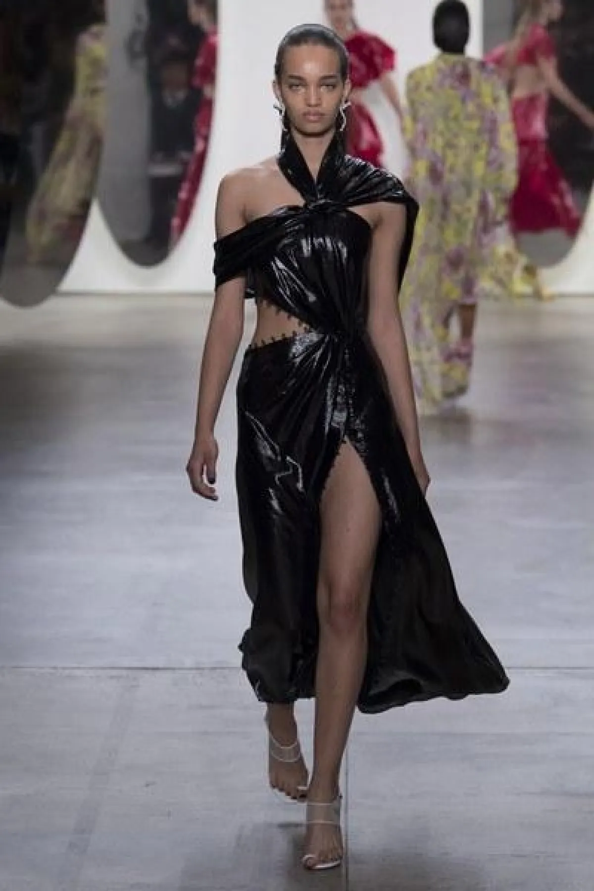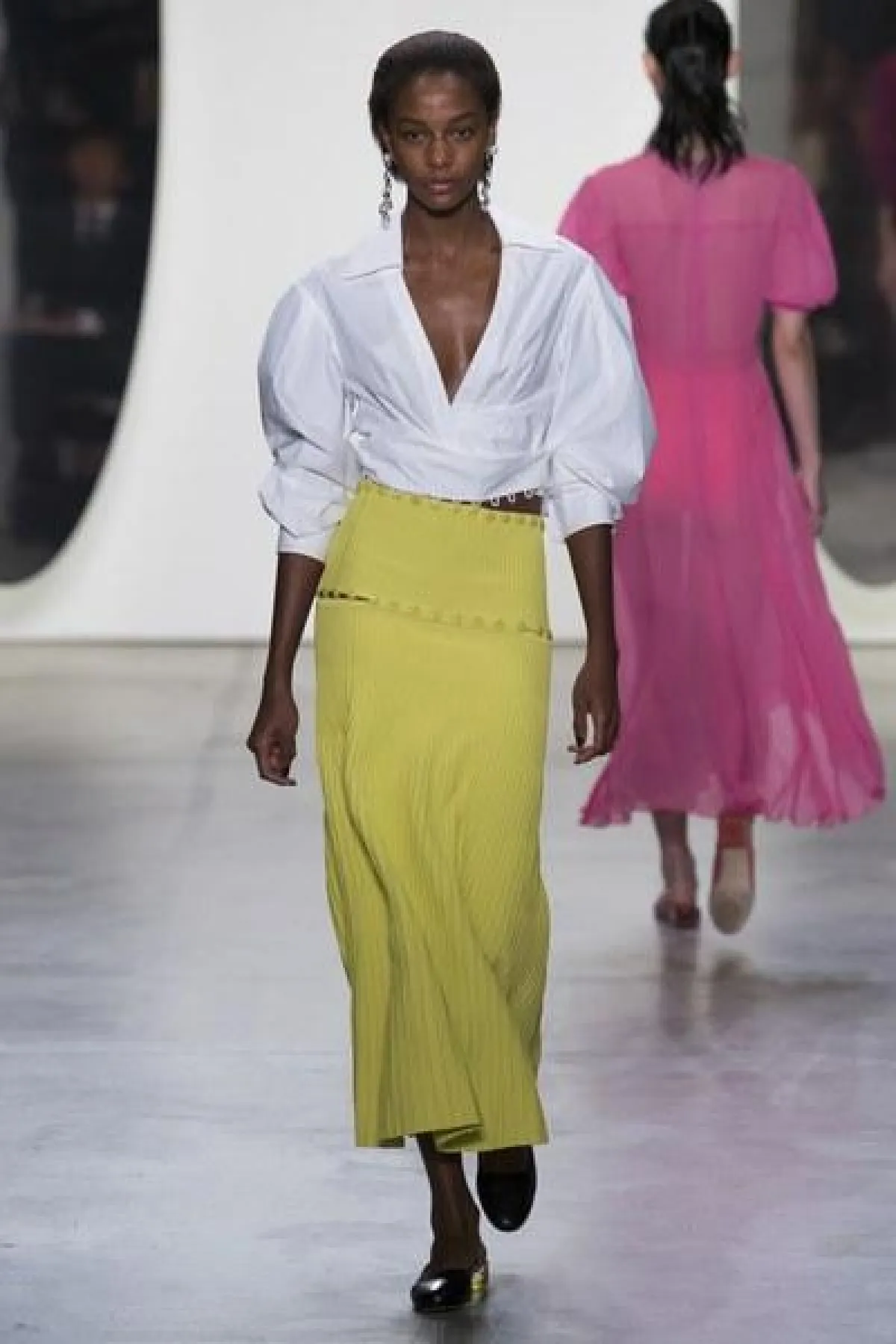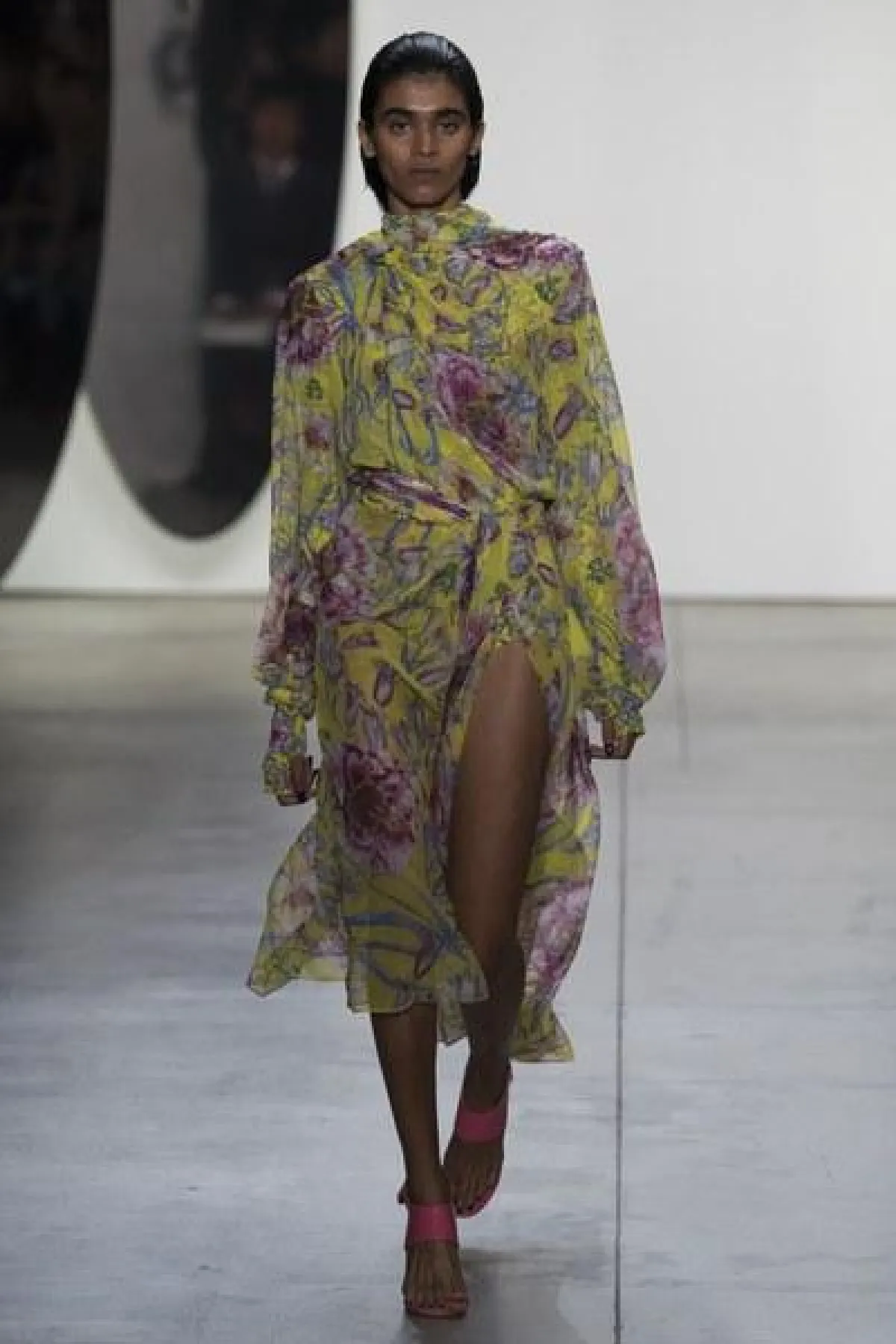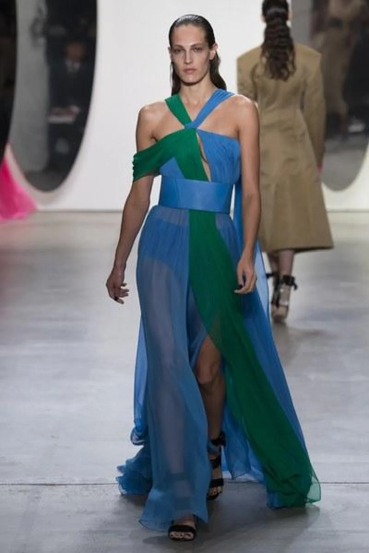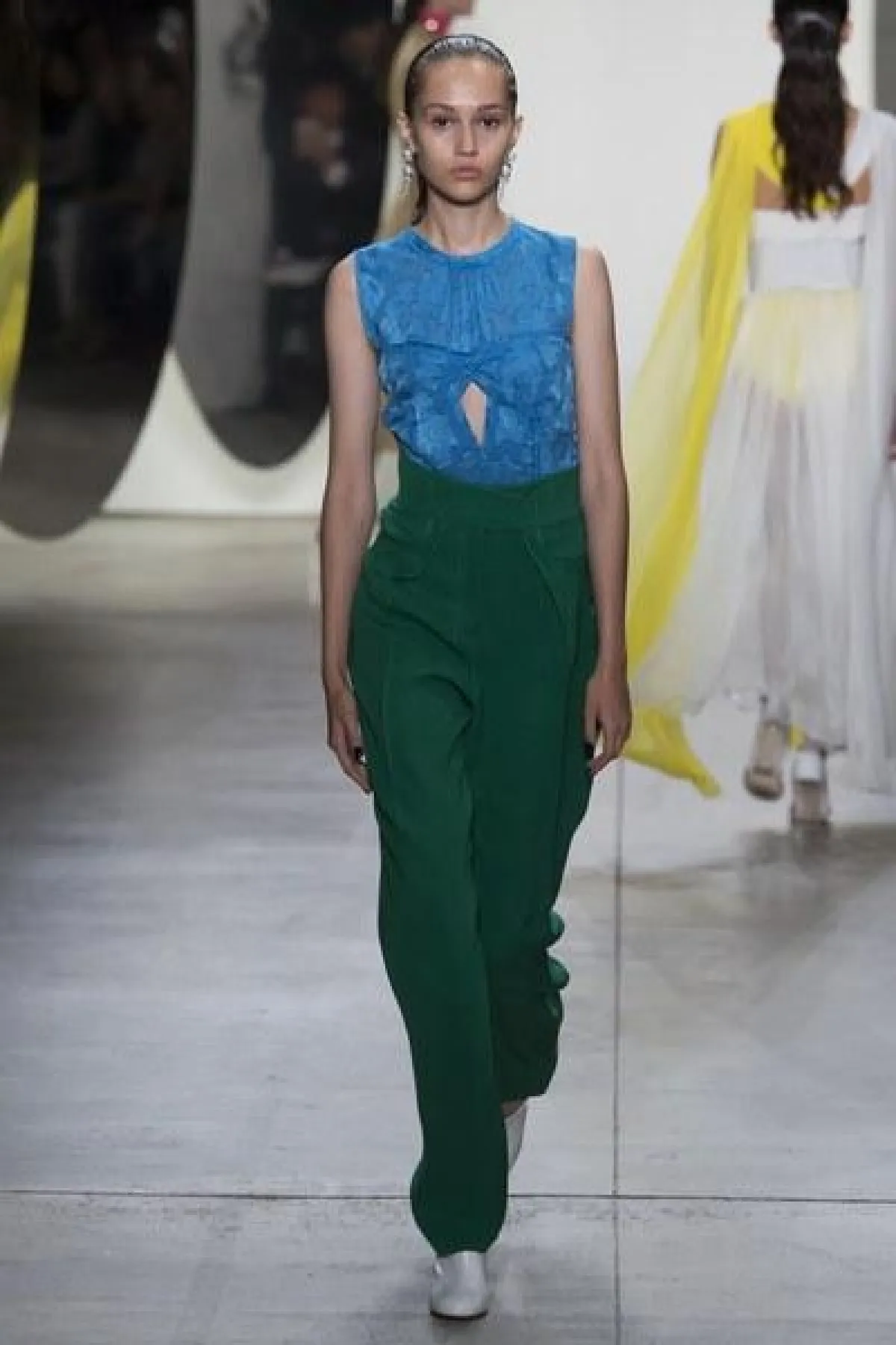 وضمّت تشكيلة غورونغ مجموعة من الفساتين الناعمة والبسيطة التصميم، التي تميزت بالأكمام الطويلة والواسعة الكبيرة الحجم، وبعضها كان جريئًا وعصريّ التصميم بالأقمشة المورّدة واللامعة.