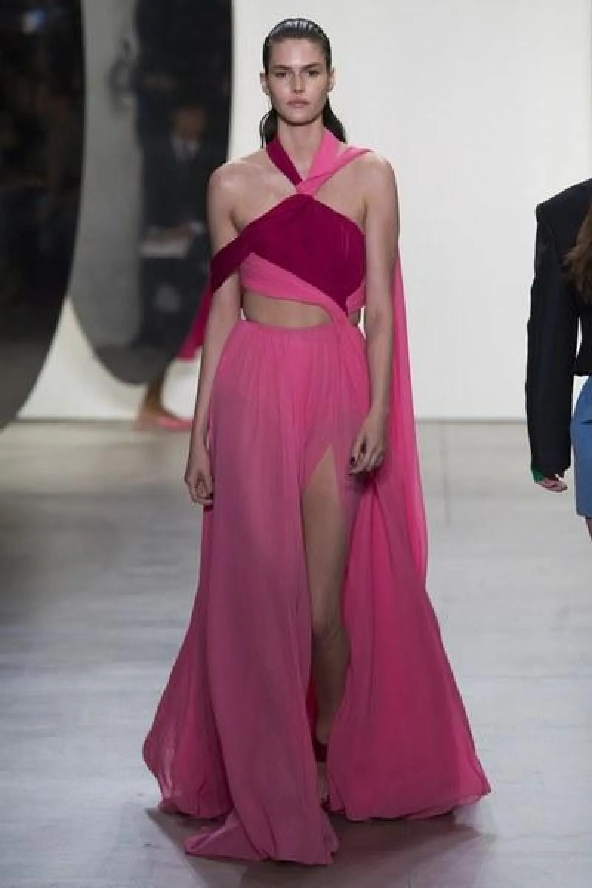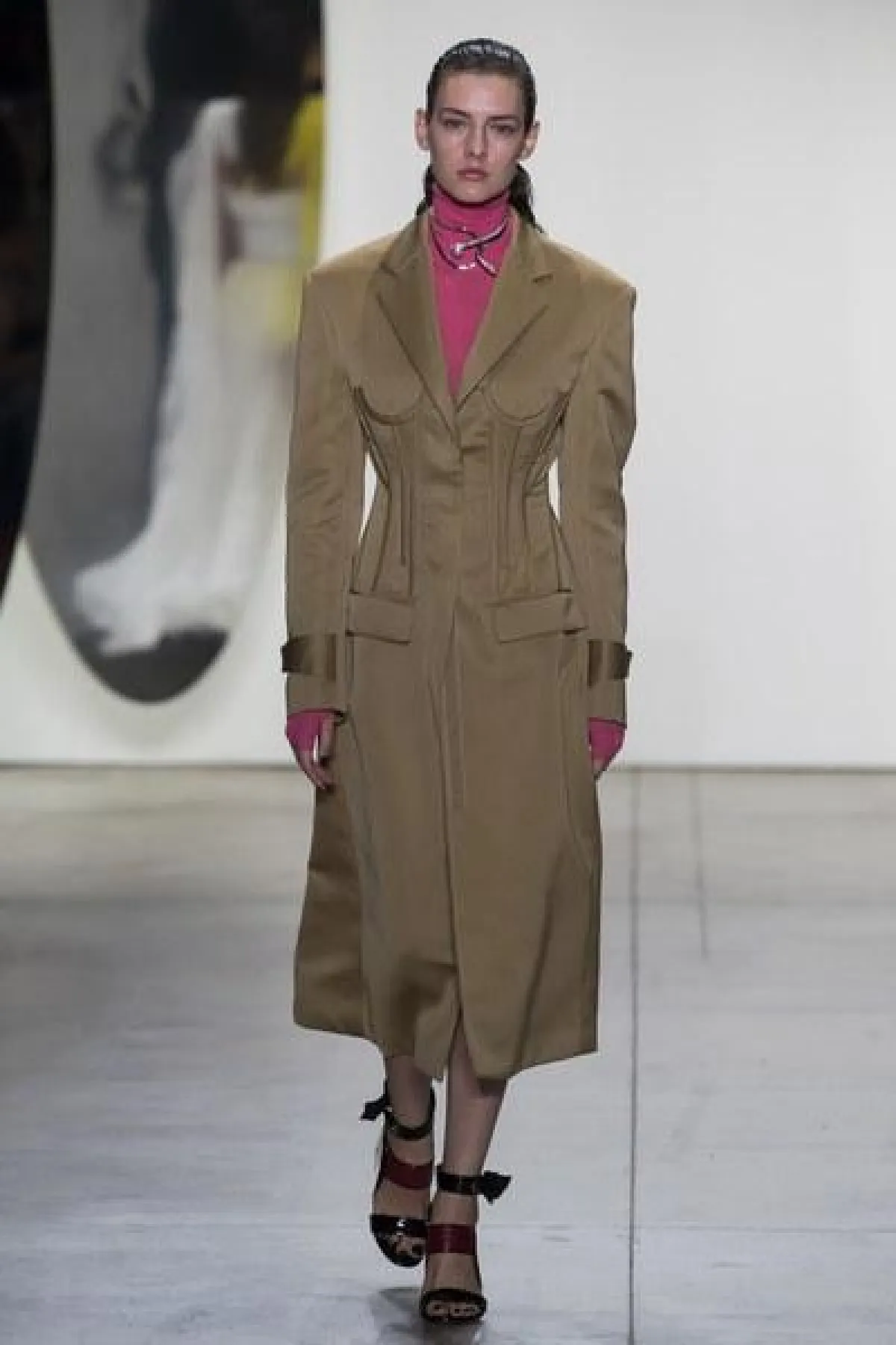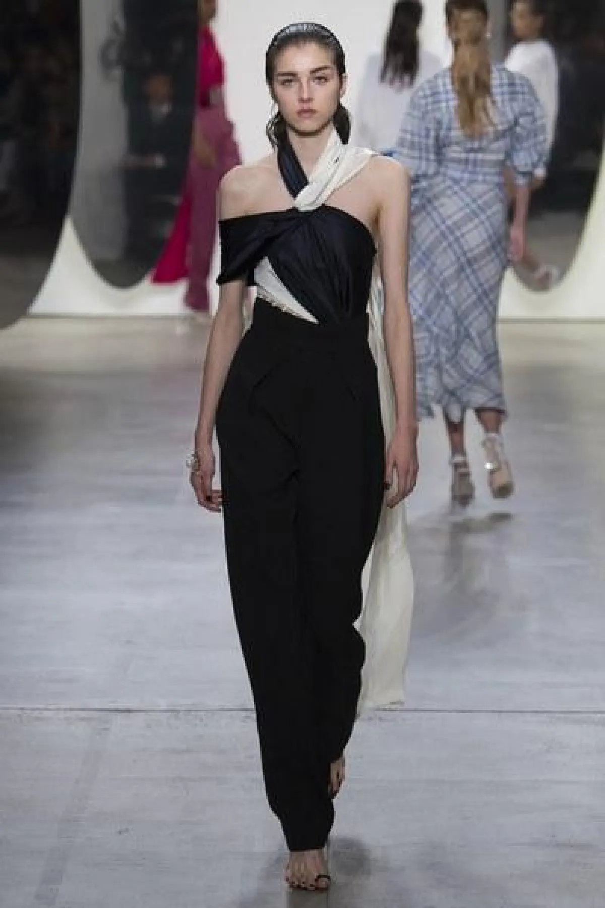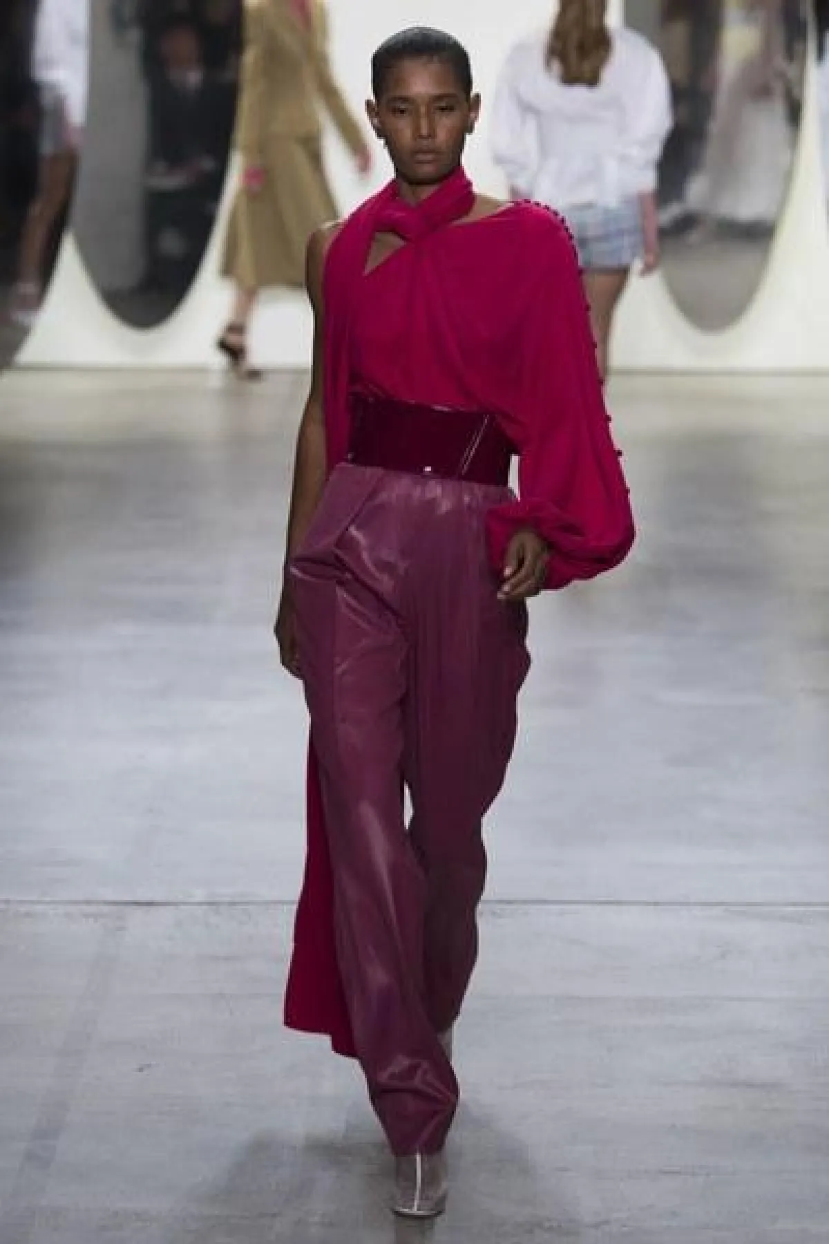وضمّت تشكيلة غورونغ مجموعة من الفساتين الناعمة والبسيطة التصميم، التي تميزت بالأكمام الطويلة والواسعة الكبيرة الحجم، وبعضها كان جريئًا وعصريّ التصميم بالأقمشة المورّدة واللامعة.