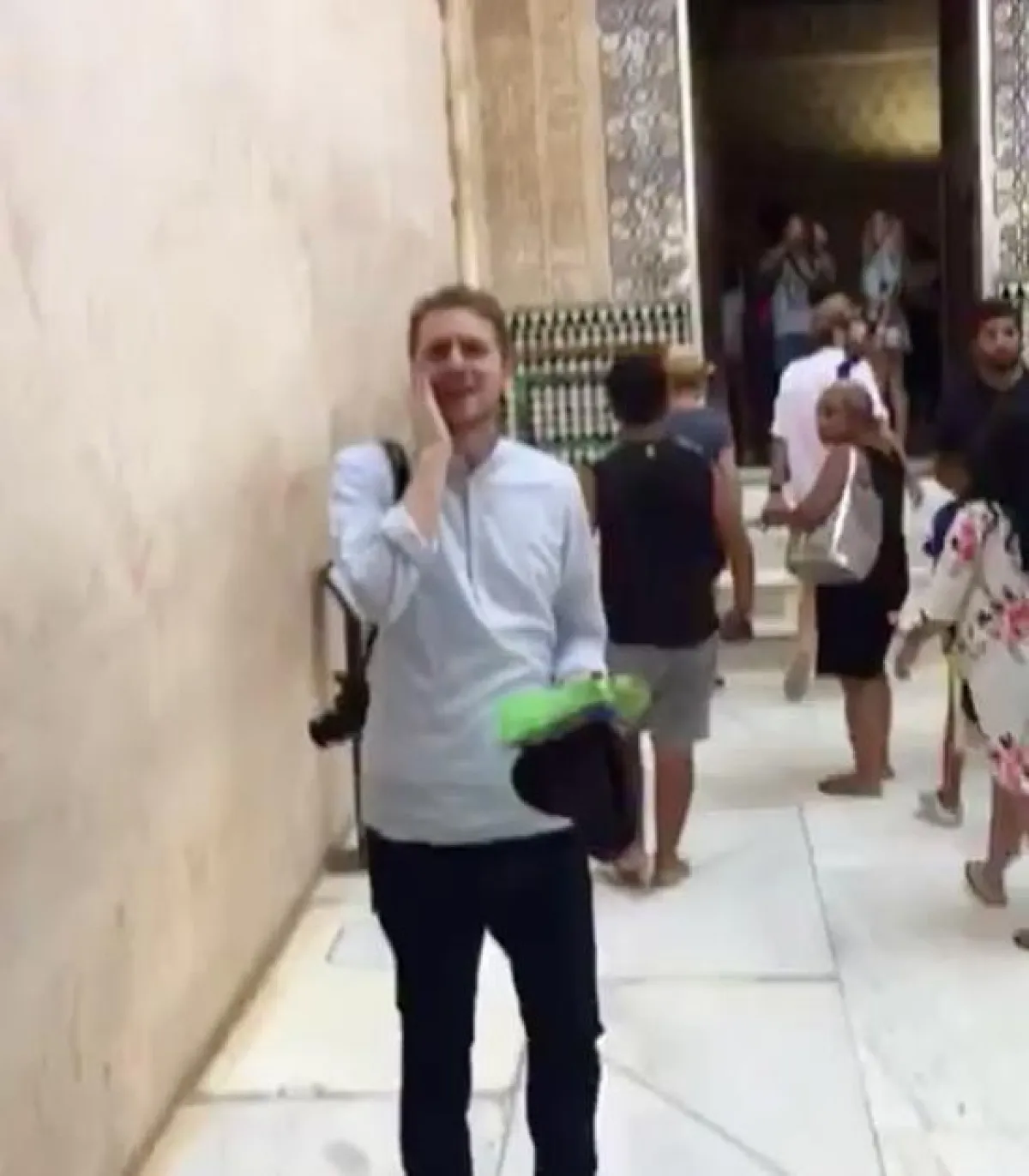 انتشر على موقع "يوتيوب" ومواقع التواصل الإجتماعي مقطع فيديو يظهر سائحاً أمريكياً يرفع الآذان في أقدم قصور إسبانيا.