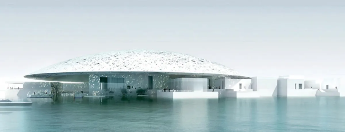 وصمم متحف اللوفر أبوظبي الذي يقع على ضفاف العاصمة الإماراتية أبوظبي، المهندس المعماري الفرنسي جان نوفيل الحائز جائزة بريتزكر العالمية، حيث صمم المتحف الذي تحيط به مياه البحر من كل جانب تحت قبة فريدة من نوعها، ليبدو اللوفر أبوظبي وكأنه «مدينة متحفية» تطفو فوق سطح البحر. ويمكن للزوار الاستمتاع بالمشي عبر الأروقة والممرات المطلة على البحر التي تظللها القبة الضخمة التي يبلغ قطرها 180 متراً والمؤلفة من حوالي 8000 قطعة معدنية على شكل نجوم، مما يتيح لهم اختبار التأثيرات المدهشة لأشعة الضوء المتسللة من السقف وكأنها رذاذ متساقط من السماء، وذلك في مشهد يذكرنا بأشعة الضوء المنبعثة عبر أشجار النخيل المتداخلة في واحات دولة الإمارات.