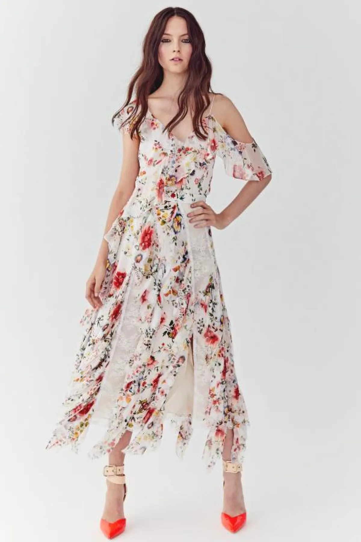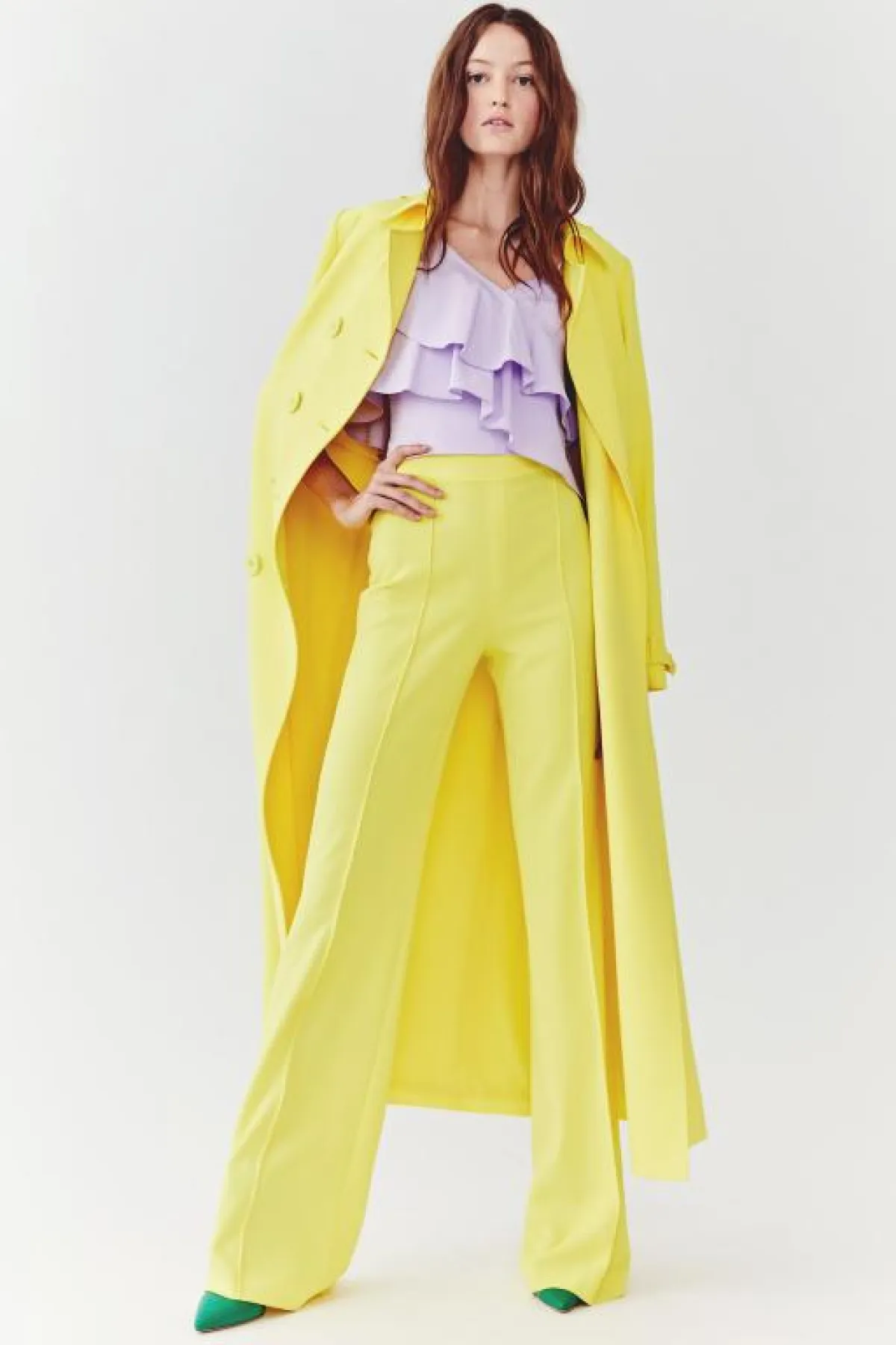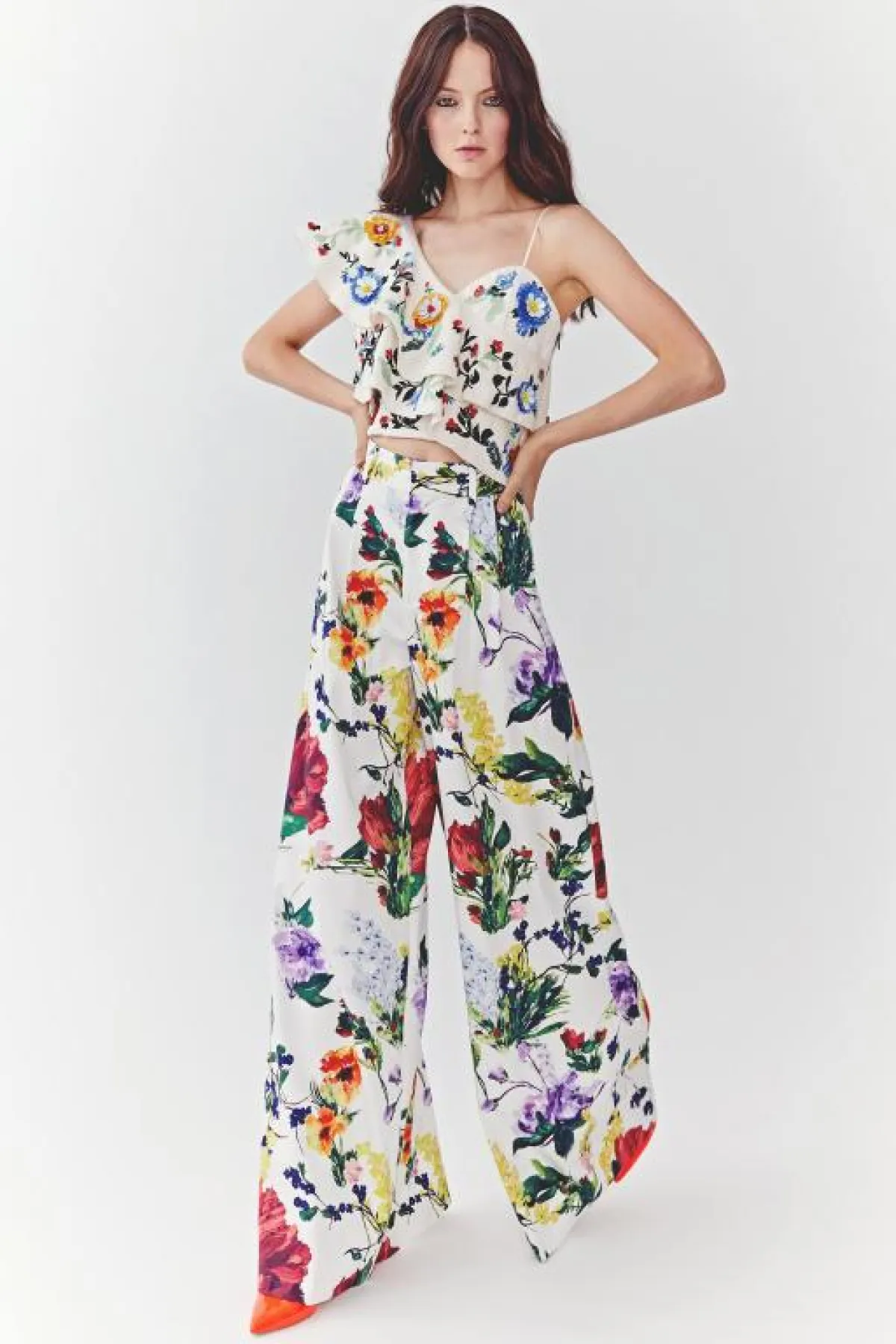 واستخدمت الأقمشة الحريرية المطبّعة بالورود الربيعية الزهرية، كما اعتمد دار أليس أند أوليفيا اطلالات الجينز من وحي العصور القديمة، التي تميزها القصات الواسعة مع لمسات من العصرية والتجدد.