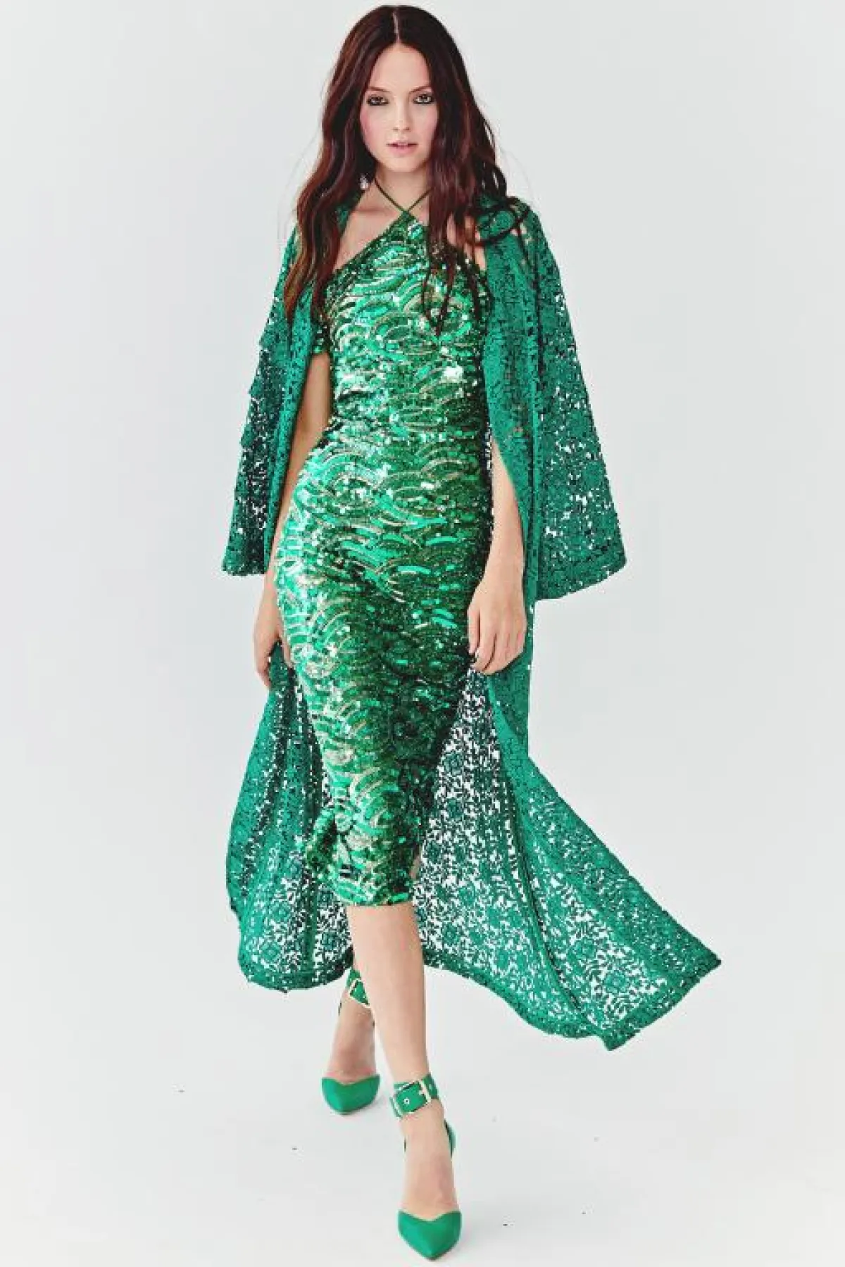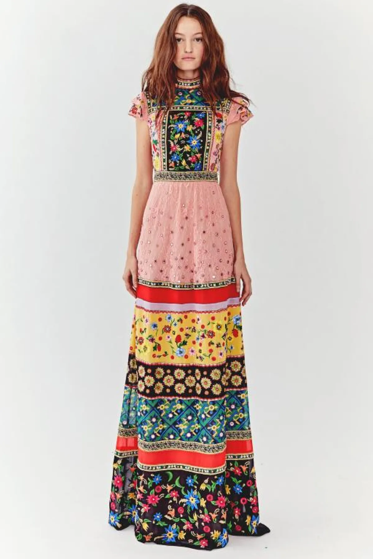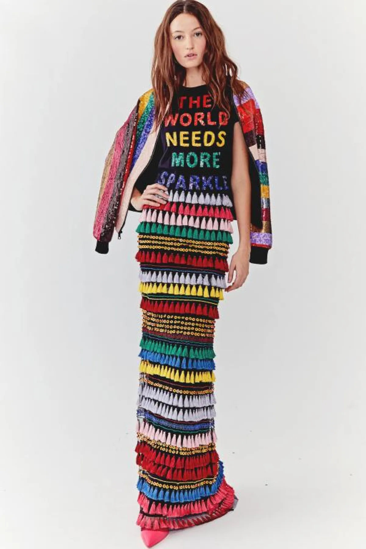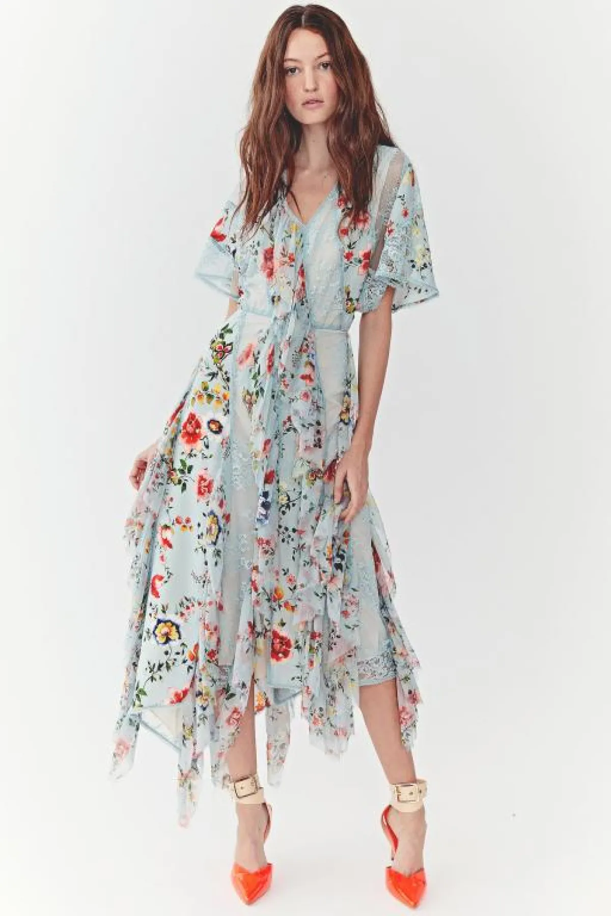 واستخدمت الأقمشة الحريرية المطبّعة بالورود الربيعية الزهرية، كما اعتمد دار أليس أند أوليفيا اطلالات الجينز من وحي العصور القديمة، التي تميزها القصات الواسعة مع لمسات من العصرية والتجدد.