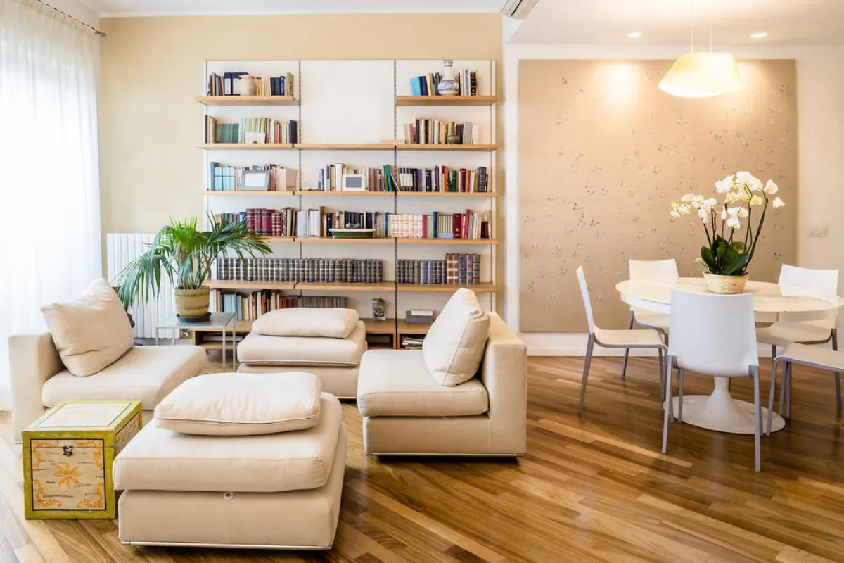 1. لـ"ديكورات" عصرية تشي بالفخامة، يُنصح باختيار لون من مجموعة الألوان المحايدة الفاتحة، كونها تضفي الفسحة على المساحة. مثلًا: يمكن انتقاء أقمشة الأثاث بألوان ترابية، كالبيج والسكري، مع تطعيمها بإحدى الدرجات الداكنة لهذه الألوان وبقليل من الذهبي الفاتح، وبلمسات طفيفة من الأزرق السماوي.