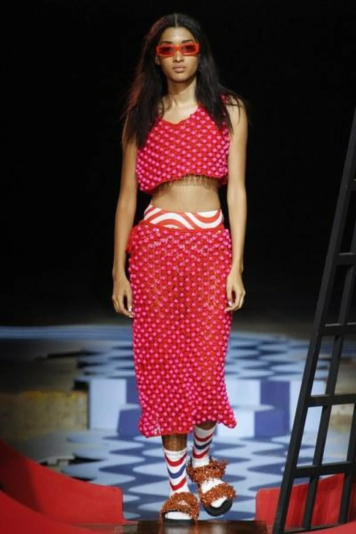 أما الإكسسوارات فكانت من النظارات الشمسية الملونة والقبعات المتنوعة الأشكال.