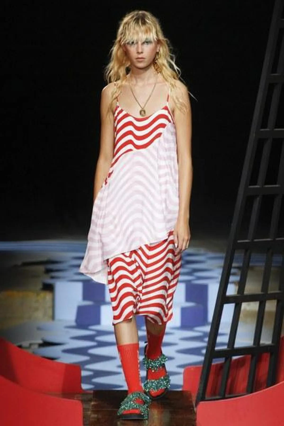 الملفت في عرض هاوس اوف هولاند كان الأقمشة المقلمة بألوان صيفية حيث غلب اللون الأبيض على أكثرية الإطلالات الى جانب الألوان الأحمر والأزرق والأصفر والبرتقالي.