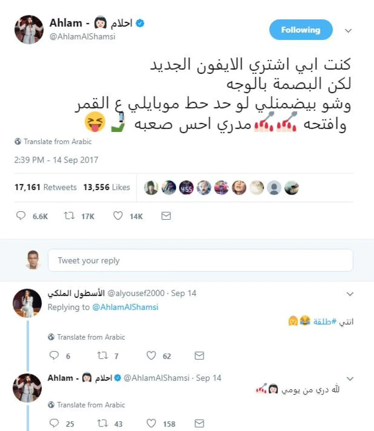 المعركة بدأت بتغريدةٍ من أحلام قالت فيها: كنت أبغي أشتري الآيفون الجديد ولكن البصمة بالوجه، وشو بيضمنلي لو حد حط موبايلي على القمر وفتحه، ويبدو أنّ غرور الملكة استفزّ الإعلامية المصرية فردّت بانتقاد ملامح وجه أحلام، مؤكّدة أنها تجري عمليات تجميلٍ بشكل دوري حتى تظهر بهذه الهيئة، وأضافت: أمّال كاثرين زيتا جونز تقول إيه؟! طيب مونيكا بيلوتشي؟! ياسمين صبري تروح تولّع في نفسها؟!…”.