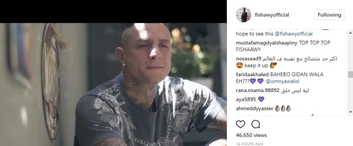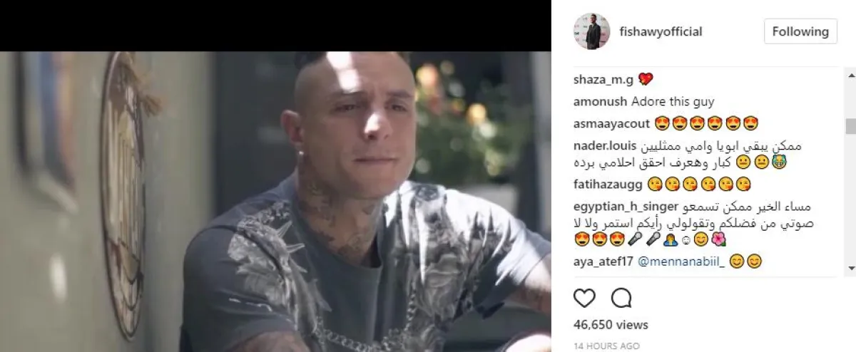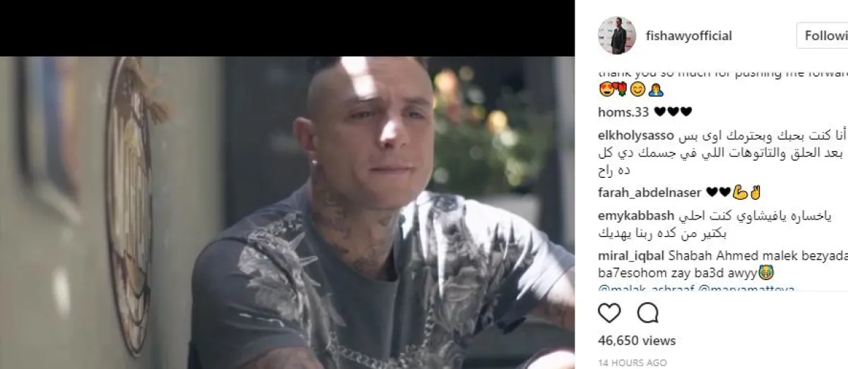 المقطع حصل على 46 ألف ضغطة إعجاب، ولكن التعليقات لم تكن كلها معجبة بمسيرة أحمد الفنية وإطلالته الشخصية، وذهبت أغلبها للتعليق على ارتدائه للأقراط في الأذن، والوشم الذي يغطي مساحات كبيرة من جسده، وقالت معجبة : أنا كنت بحبك وبحترمك أوي بس بعد الحلق والتاتوهات اللي في جسمك دي كل ده راح، بينما ألمح متابع آخر بأن نصف نجاح الفيشاوي يعود لكون والده هو الفنان فاروق الفيشاوي ووالدته الممثلة سمية الألفي قائلا: ممكن يبقى أبويا وأمي ممثلين كبار وهعرف أحقق أحلامي برده .