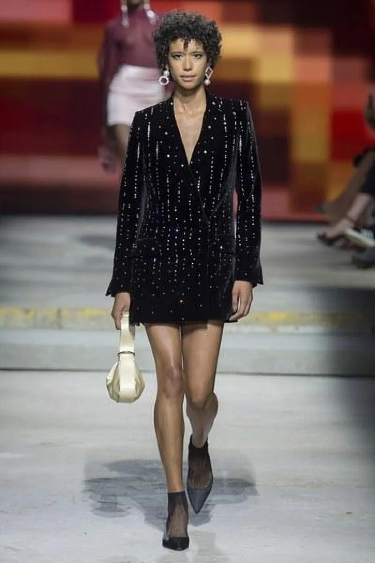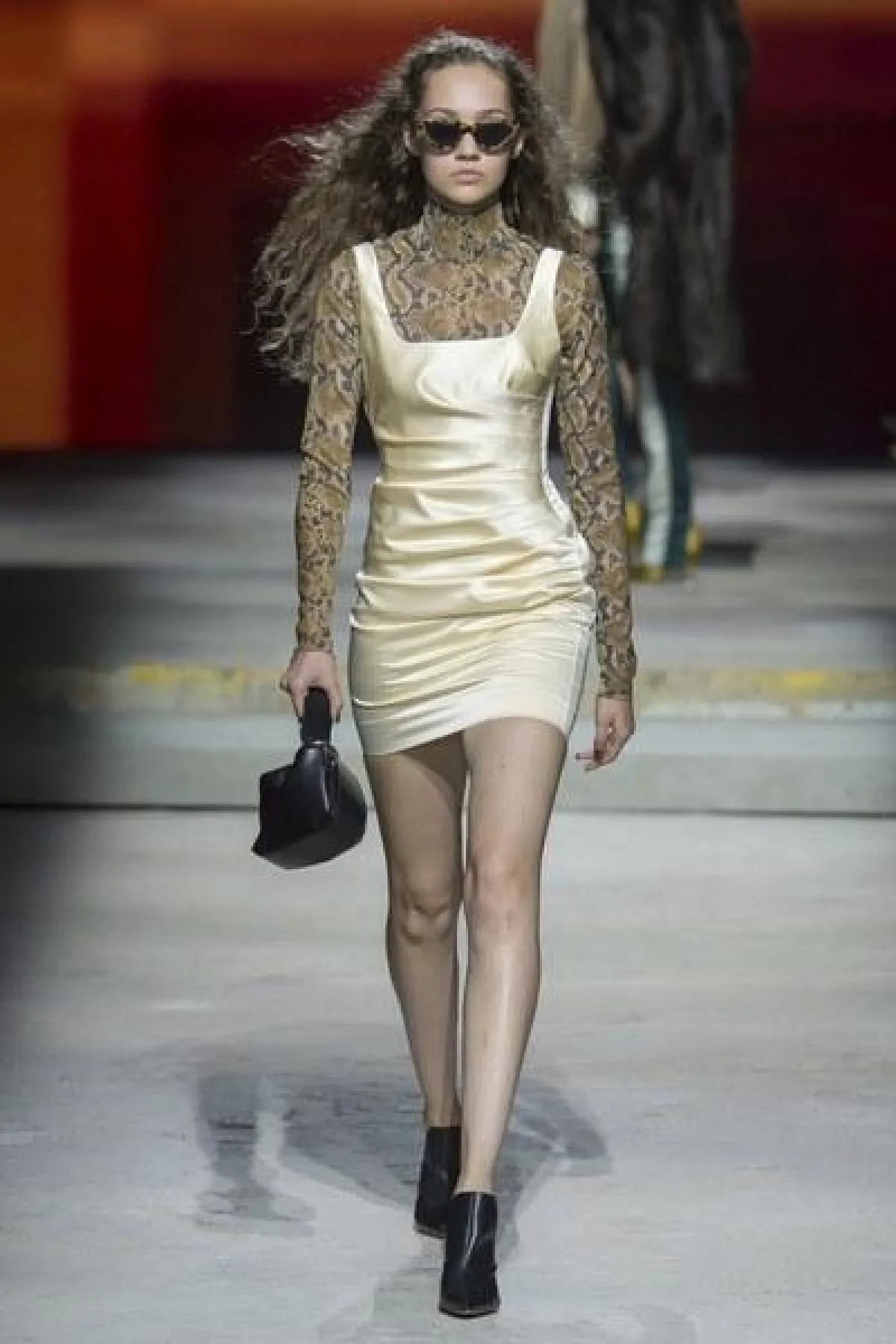 سيطرت أقمشة الساتان على عرض علامة توب شوب يونيك Topshop Unique العالمية، لربيع وصيف 2018 في أسبوع الموضة في لندن ، وتميزت التصاميم بالتنورة القصيرة التي تحاكي المرأة الجريئة صاحبة الجسد الرشيق والقوام الشديد.