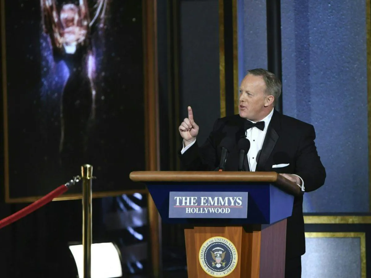 مفاجأة من العيار الثقيل شهدها حفل توزيع "إيمي" Emmy Awards، الذي انطلق مساء أمس الأحد في لوس أنجلوس بولاية كاليفورنيا الأمريكية، حيث أطلّ شون سبايسر Sean Spicer، المتحدث السابق بإسم البيت الأبيض على منصة الحفل، وسخر من نفسه ومن التصريحات الخاطئة التي ظل يرددها إلى حين استقالته من هذا المنصب في نهاية تموز/يوليو الماضي.