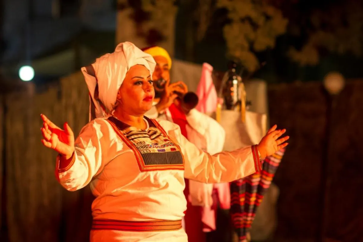في المشاهد الأولى من العمل التونسي، وأثناء حديث "زينة" عن قصتها مع العزوبية، أو بشكل أدق، سردها لما تُحس به كونها عزباء تعدت الأربعين عاماً، أو كما يُسميها المجتمع بـ"العانس"، ذهب العمل إلى شرح تفاصيل طقوس الأعراس التونسية في جزيرة "جربا"، حتى وصل لأن يكون شرحاً مُفصلاً ابتعد حداً كبيراً عن كونه مسرحياً، فضخّ الكثير من المعلومات عن هذه الطقوس، كأنه يعرضها بمقال مكتوب، أو برنامج وثائقي عن المنطقة، وأطال كثيراً بهذا السرد حتى أصاب الجمهور الضياع والملل باستثناء دخول فرقة تونسية شعبية عزفت بعض هذه الأغاني، حتى ولو كانت بدون أي مبرر درامي لدخولها.