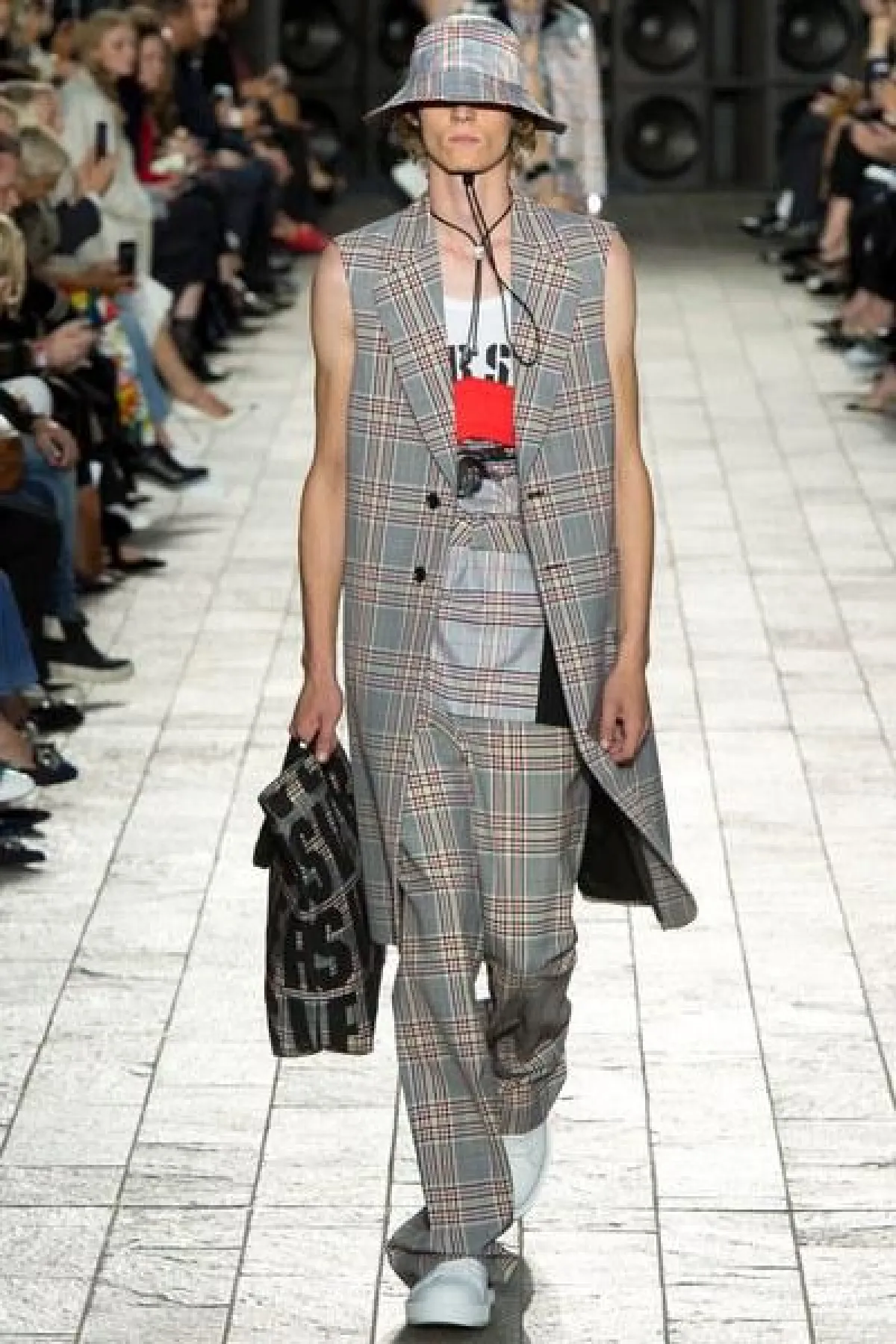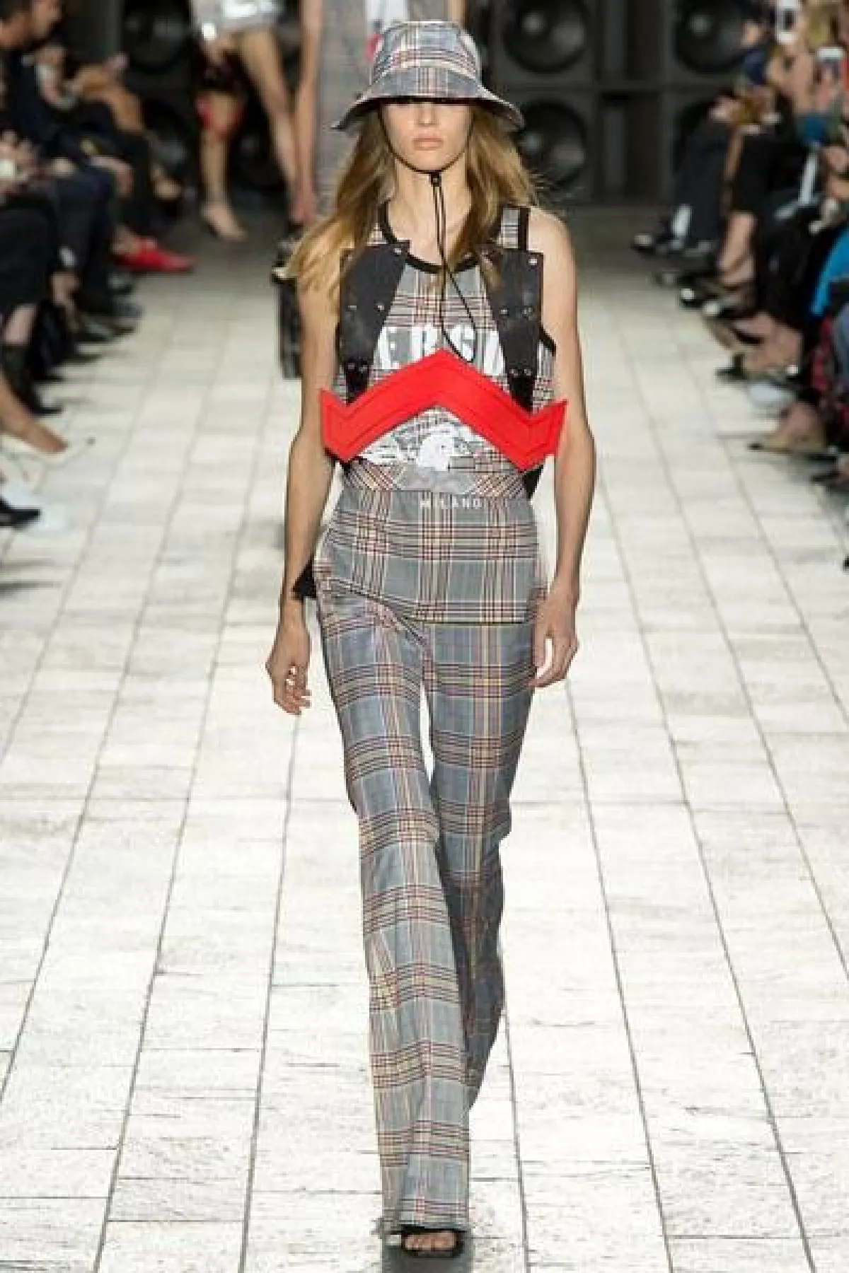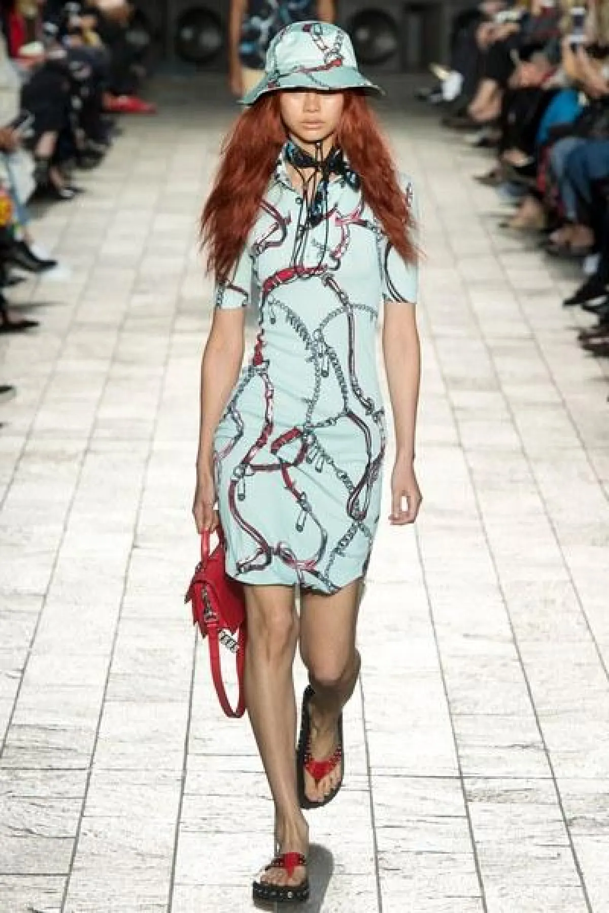 لكن الملفت في عرض فيرساتشي "التوب" القصيرة المكشوفة عند البطن لدى السيدات، والقميص المطبع مع القبعة عند الرجال.