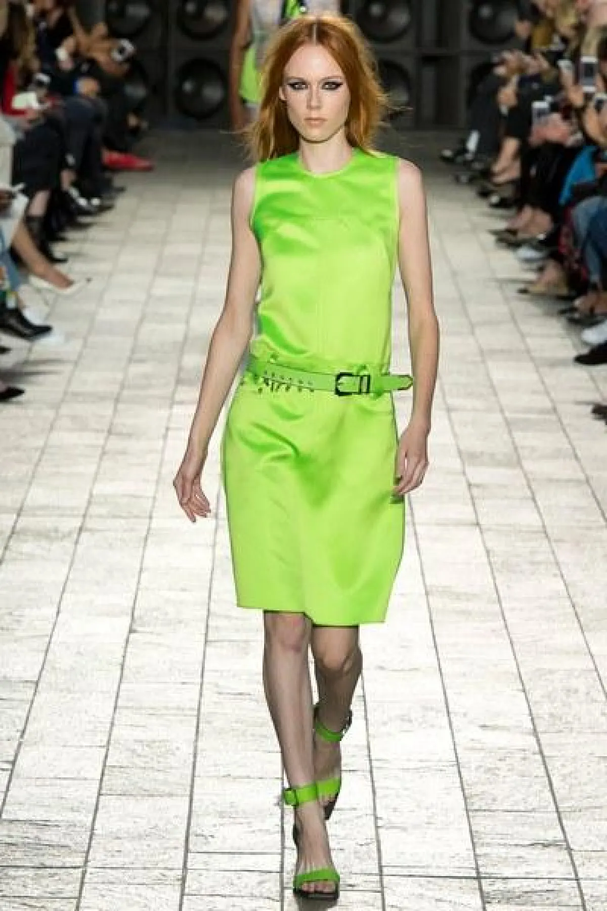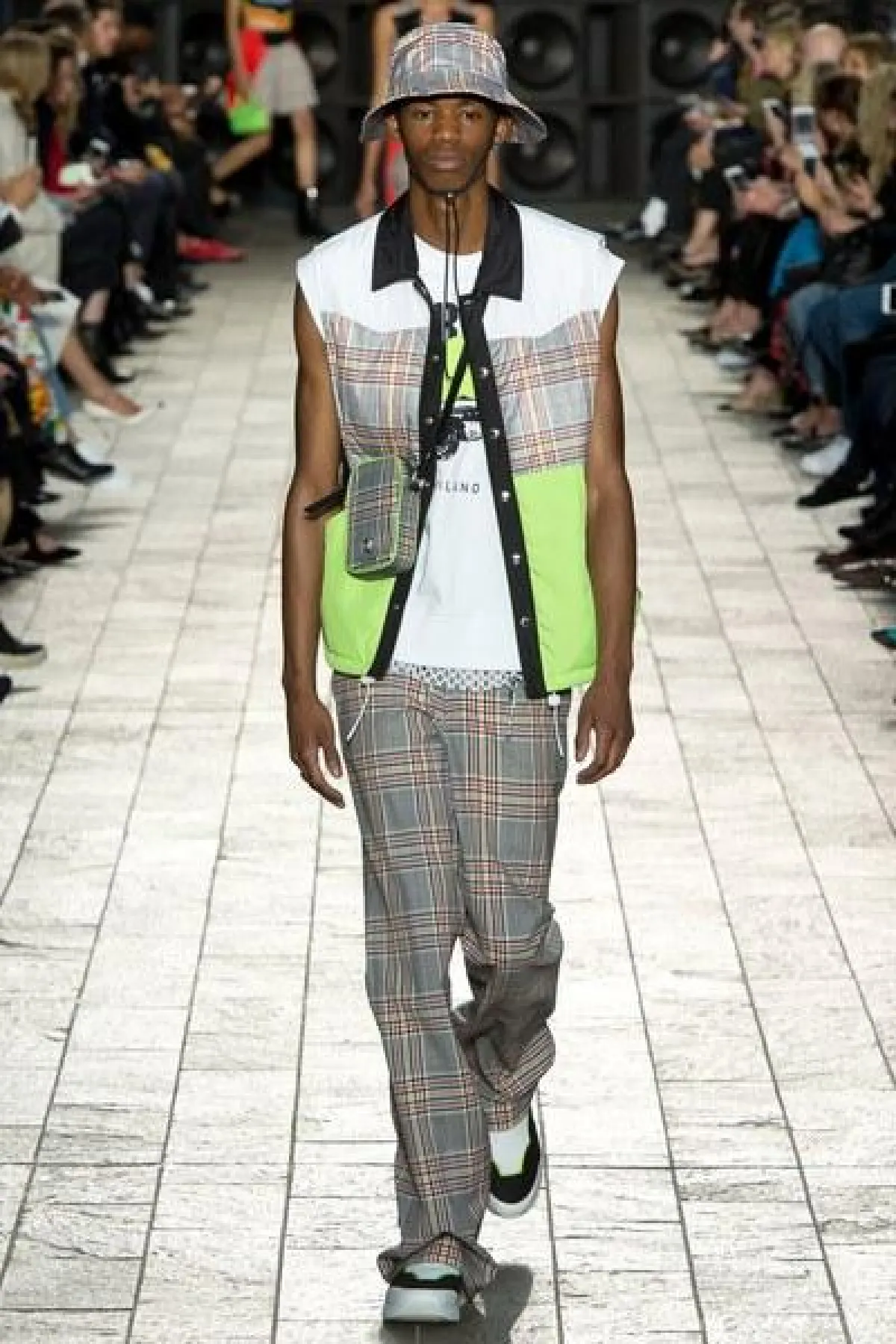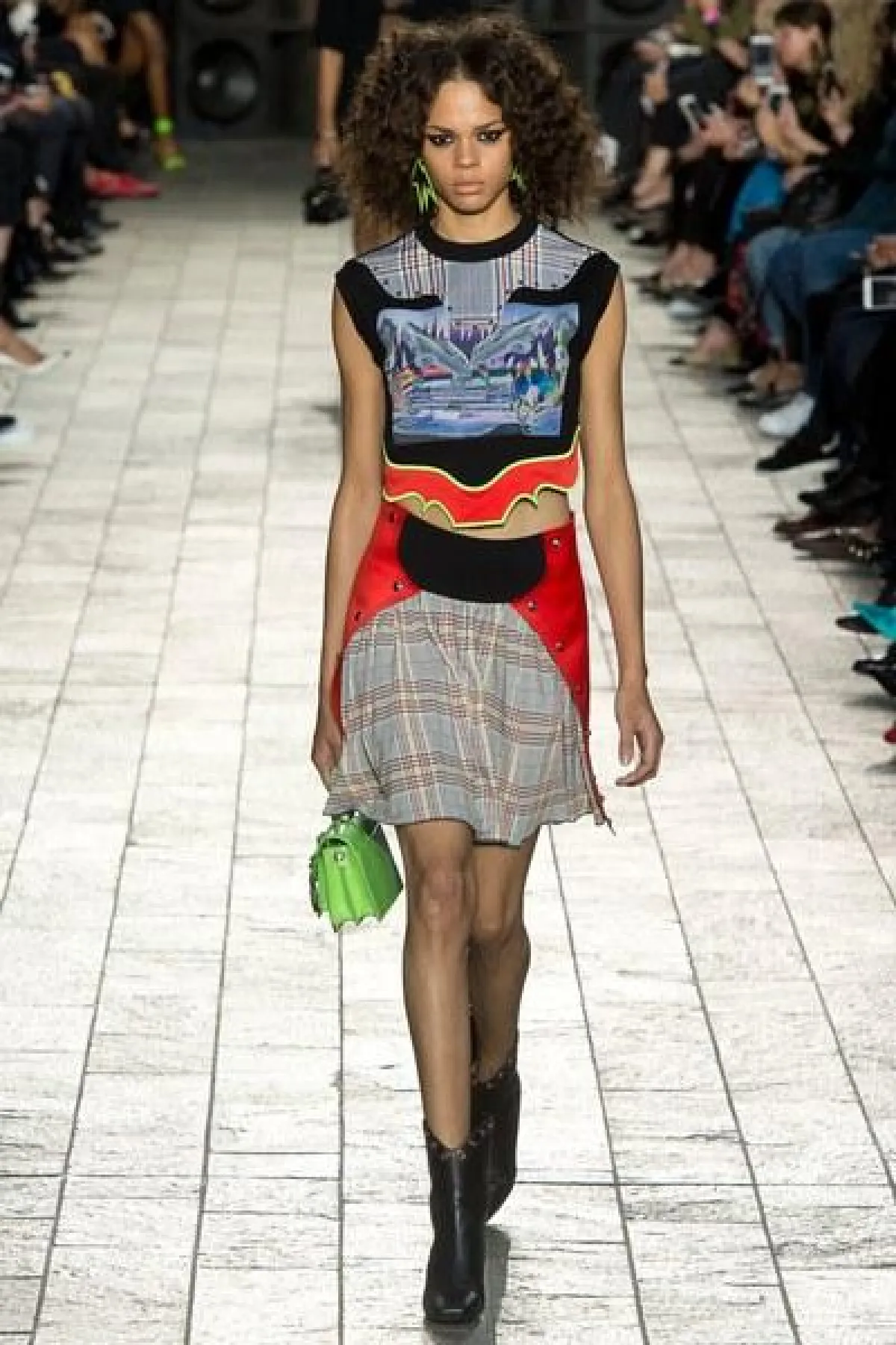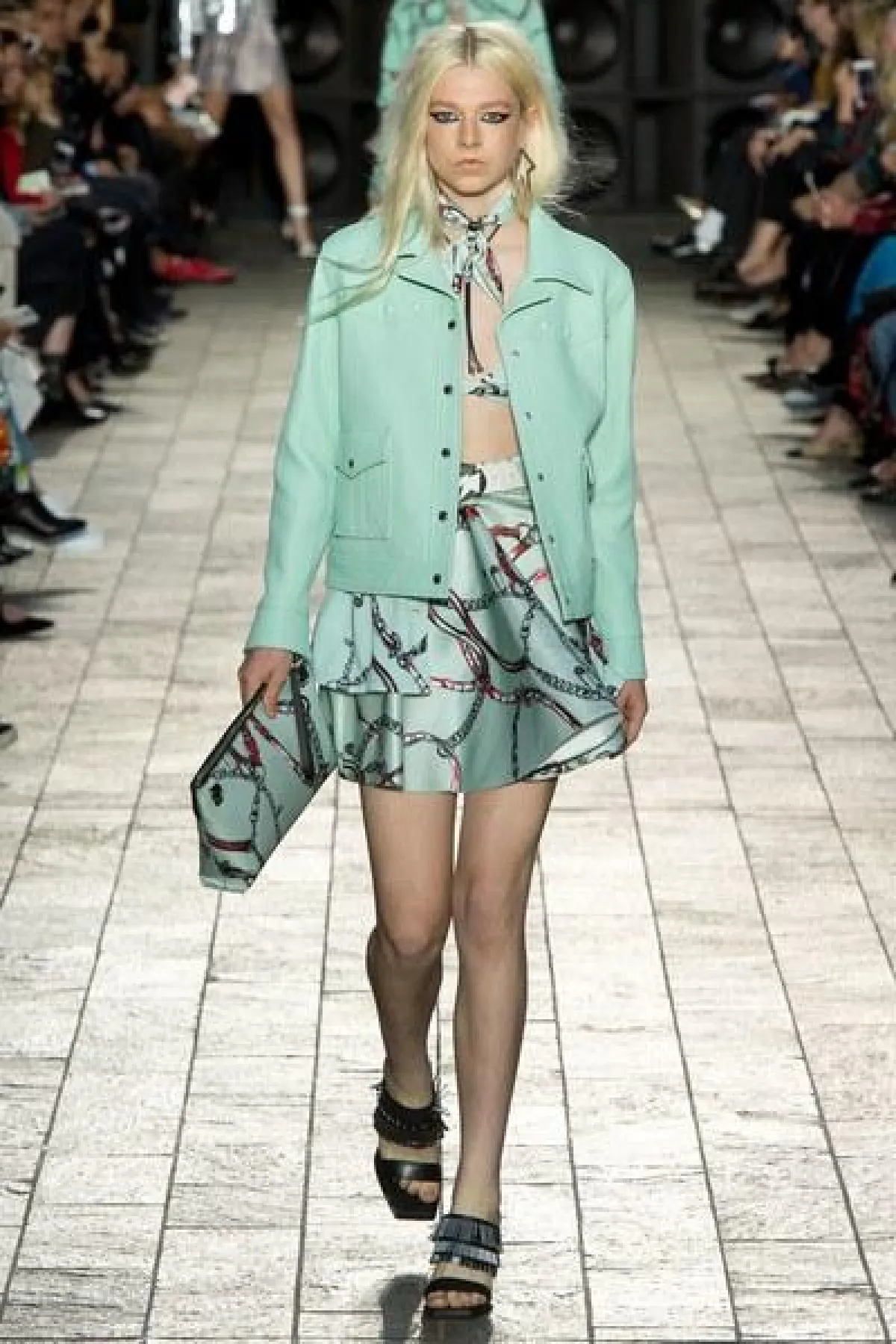 لكن الملفت في عرض فيرساتشي "التوب" القصيرة المكشوفة عند البطن لدى السيدات، والقميص المطبع مع القبعة عند الرجال.
