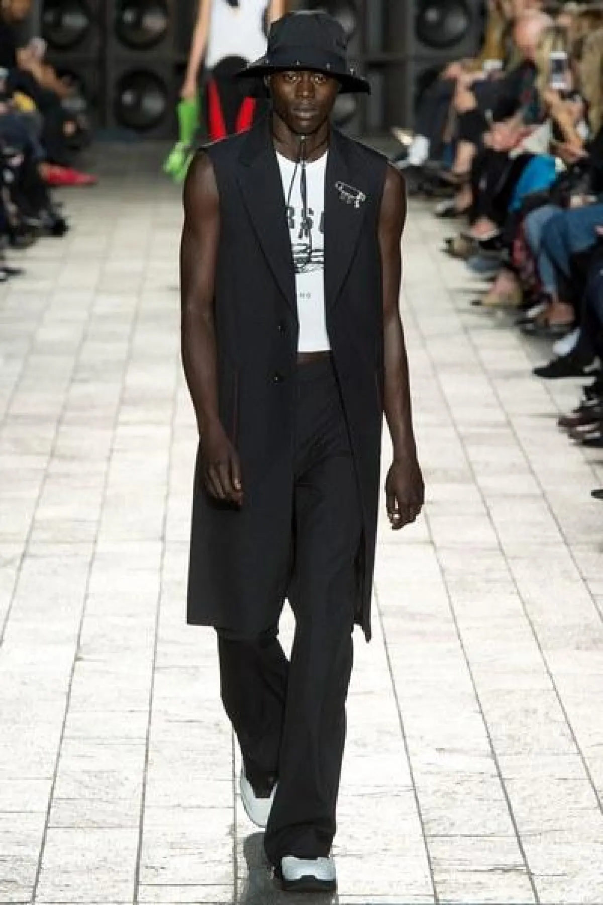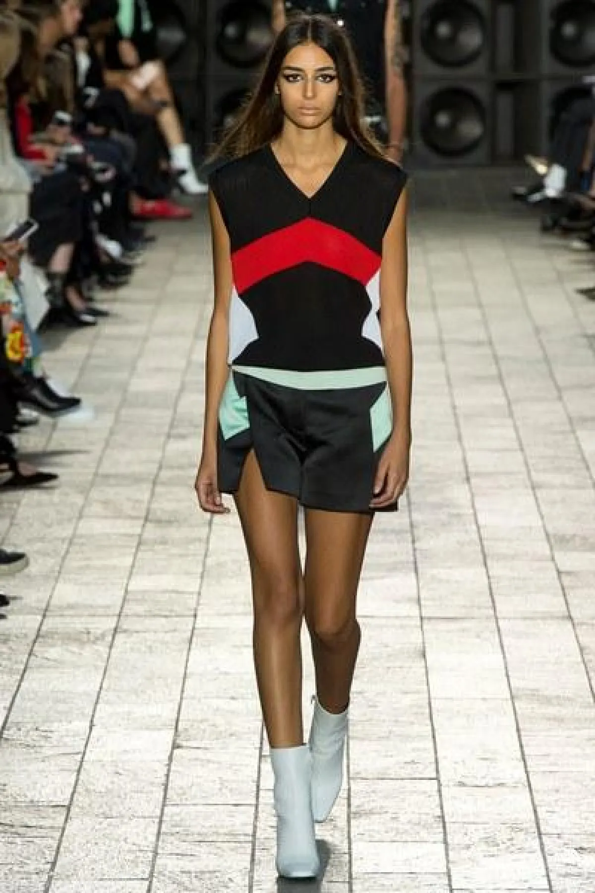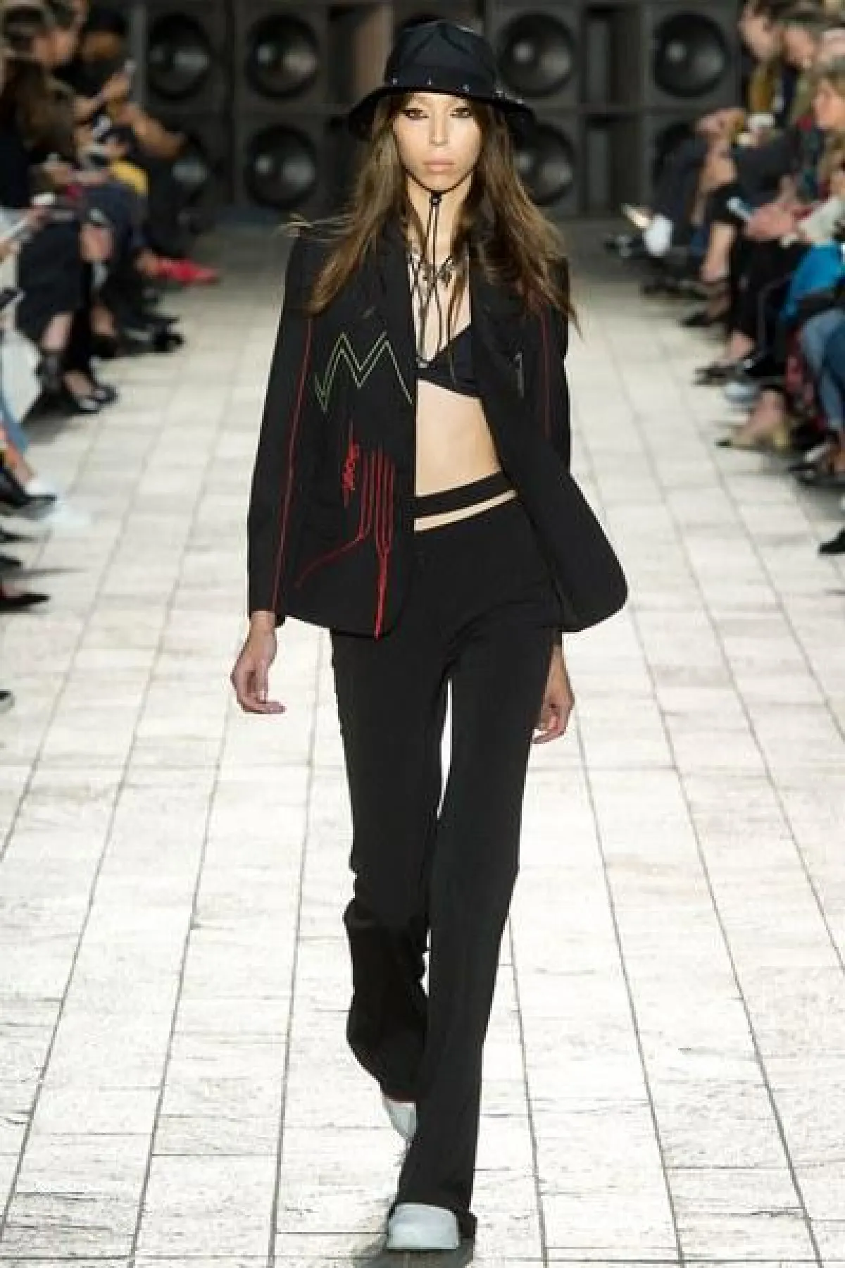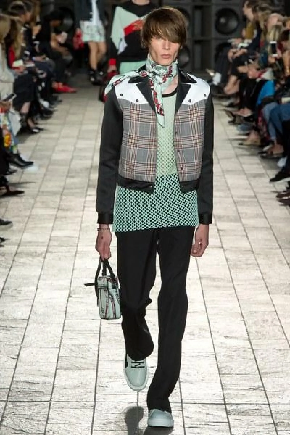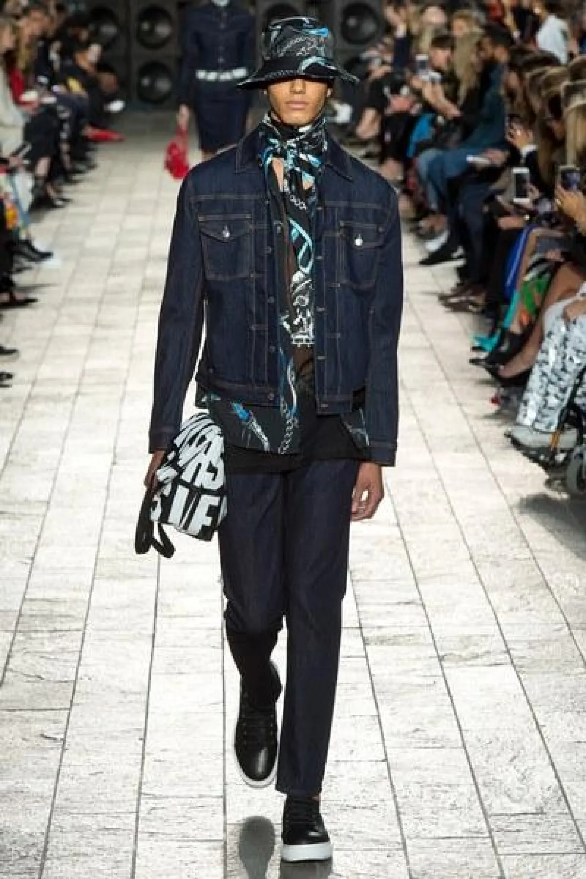 أما الأقمشة فكانت من الشيفون والساتان اللامع، كما سيطرت الألوان الراكزة الى جانب الأزرق والأخضر الفاتح، واستخدمت القبعات الكاجوال في بعض الإطلالات.