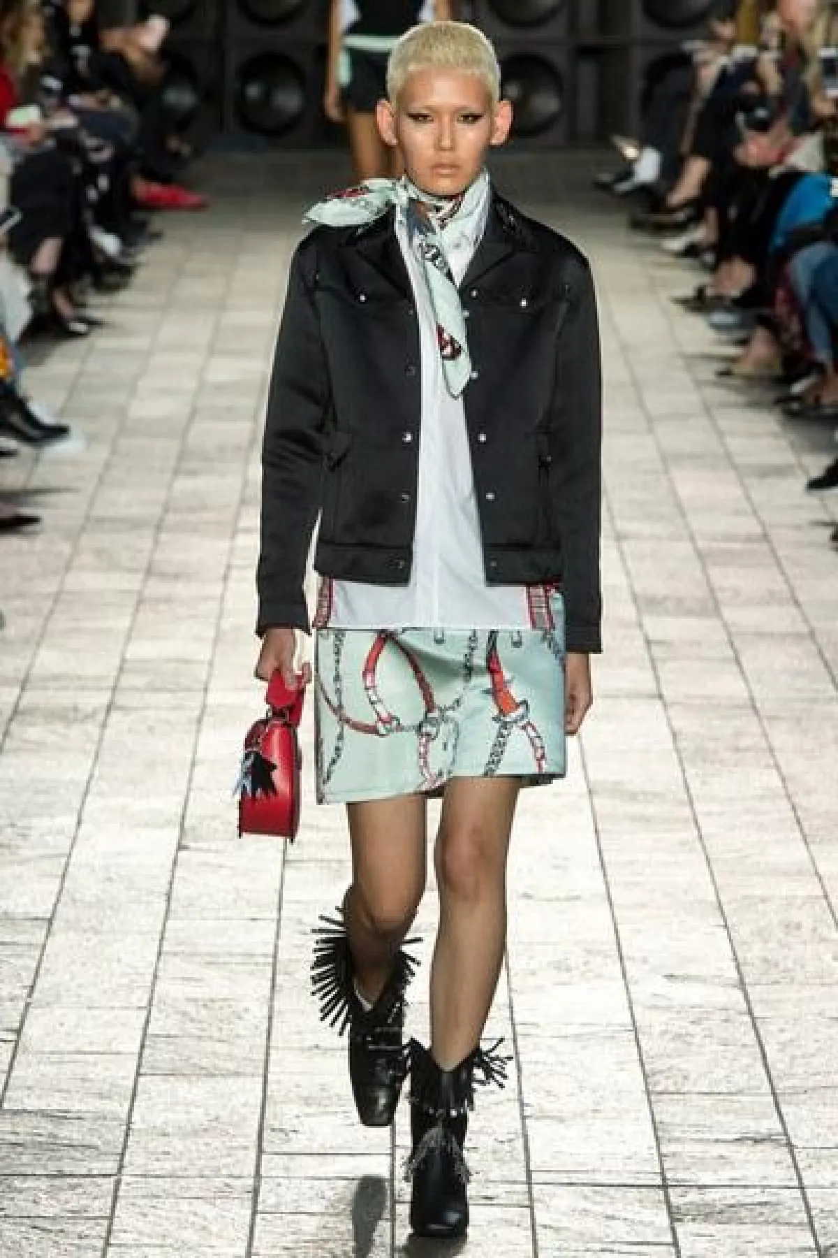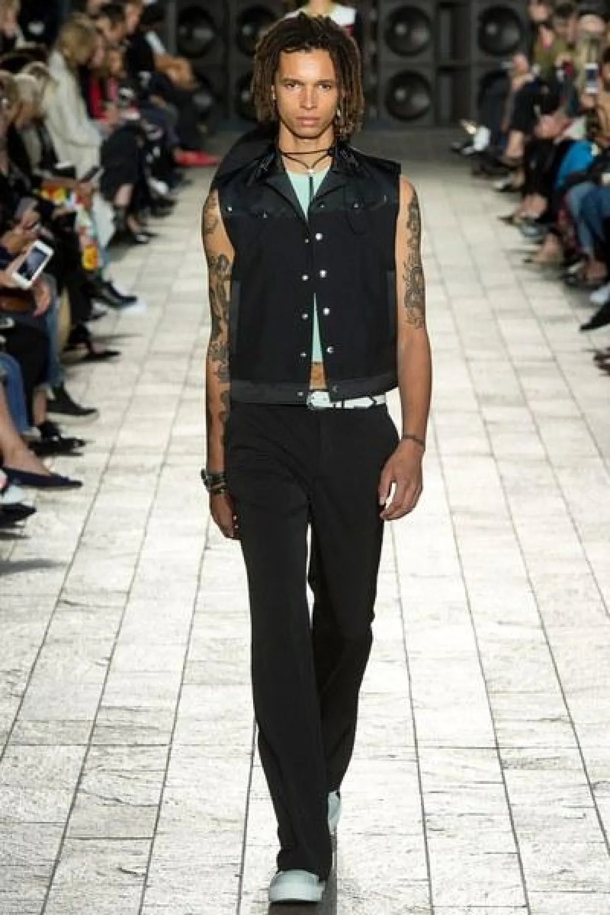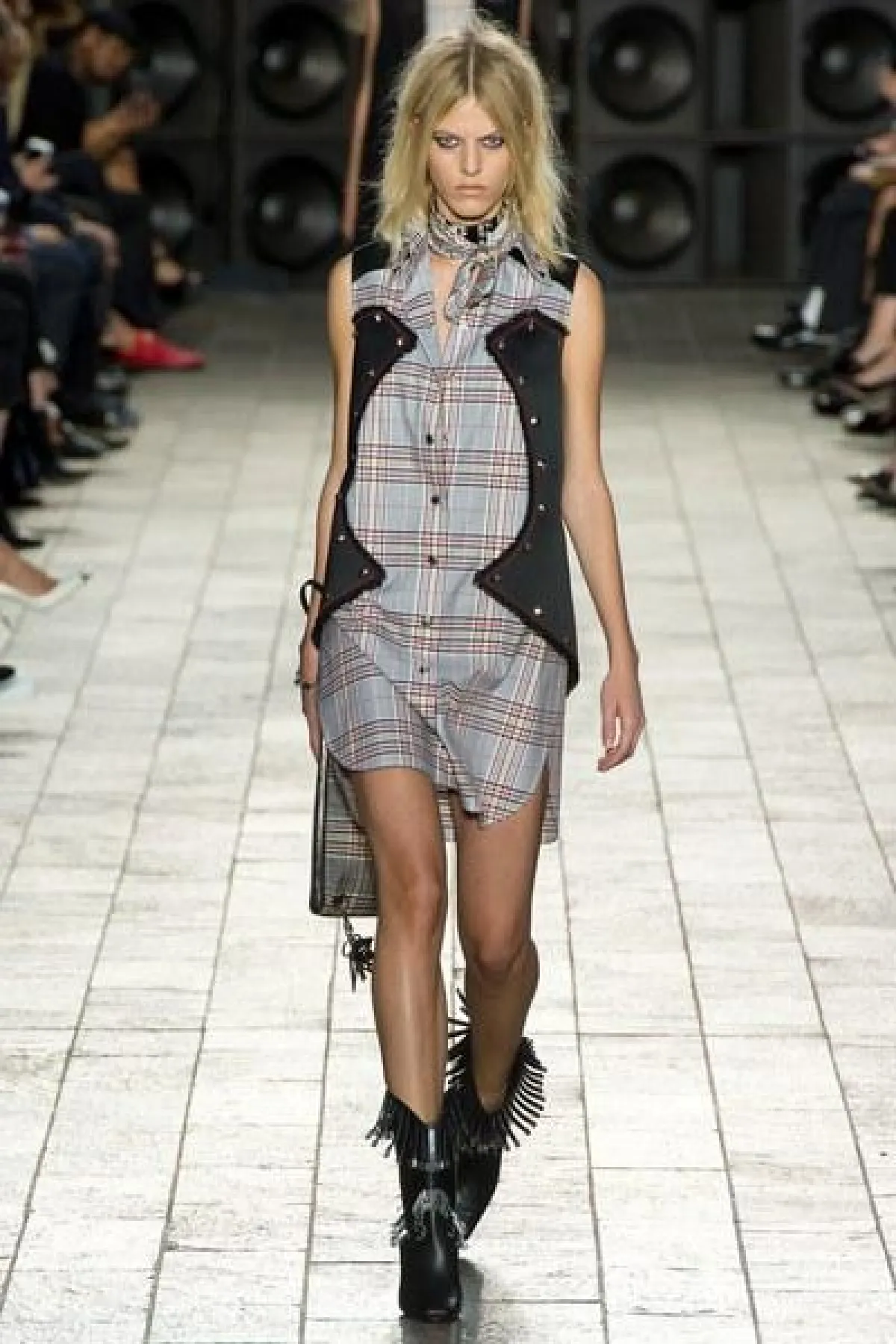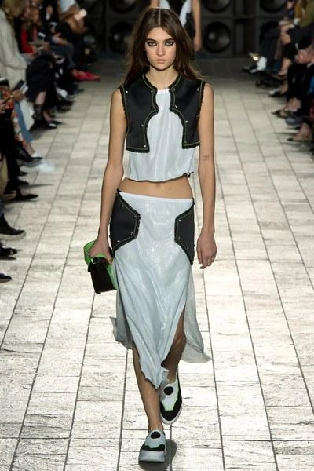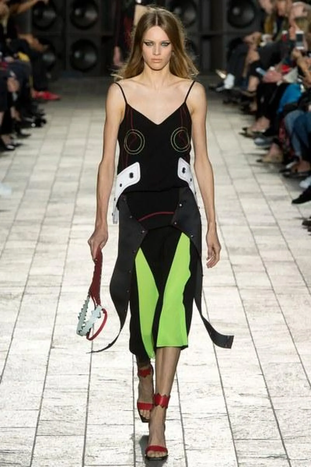 أما الأقمشة فكانت من الشيفون والساتان اللامع، كما سيطرت الألوان الراكزة الى جانب الأزرق والأخضر الفاتح، واستخدمت القبعات الكاجوال في بعض الإطلالات.