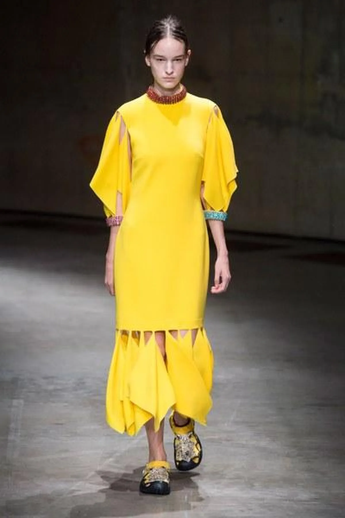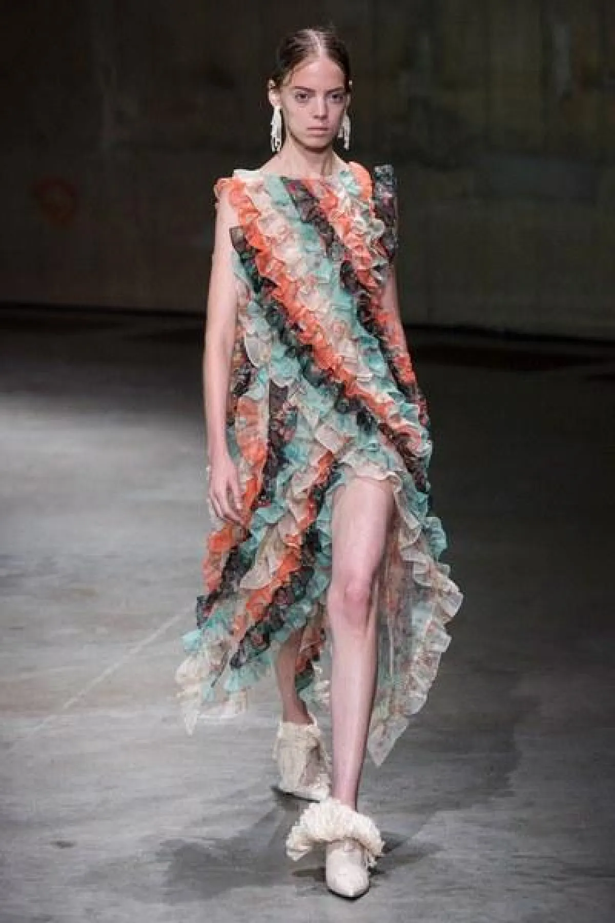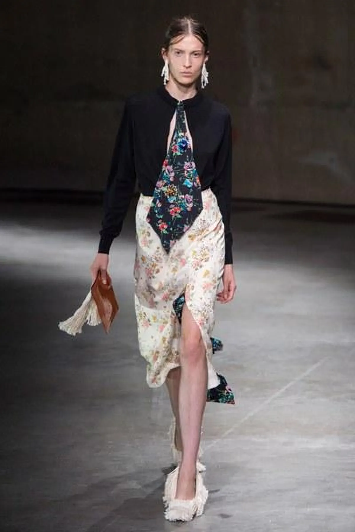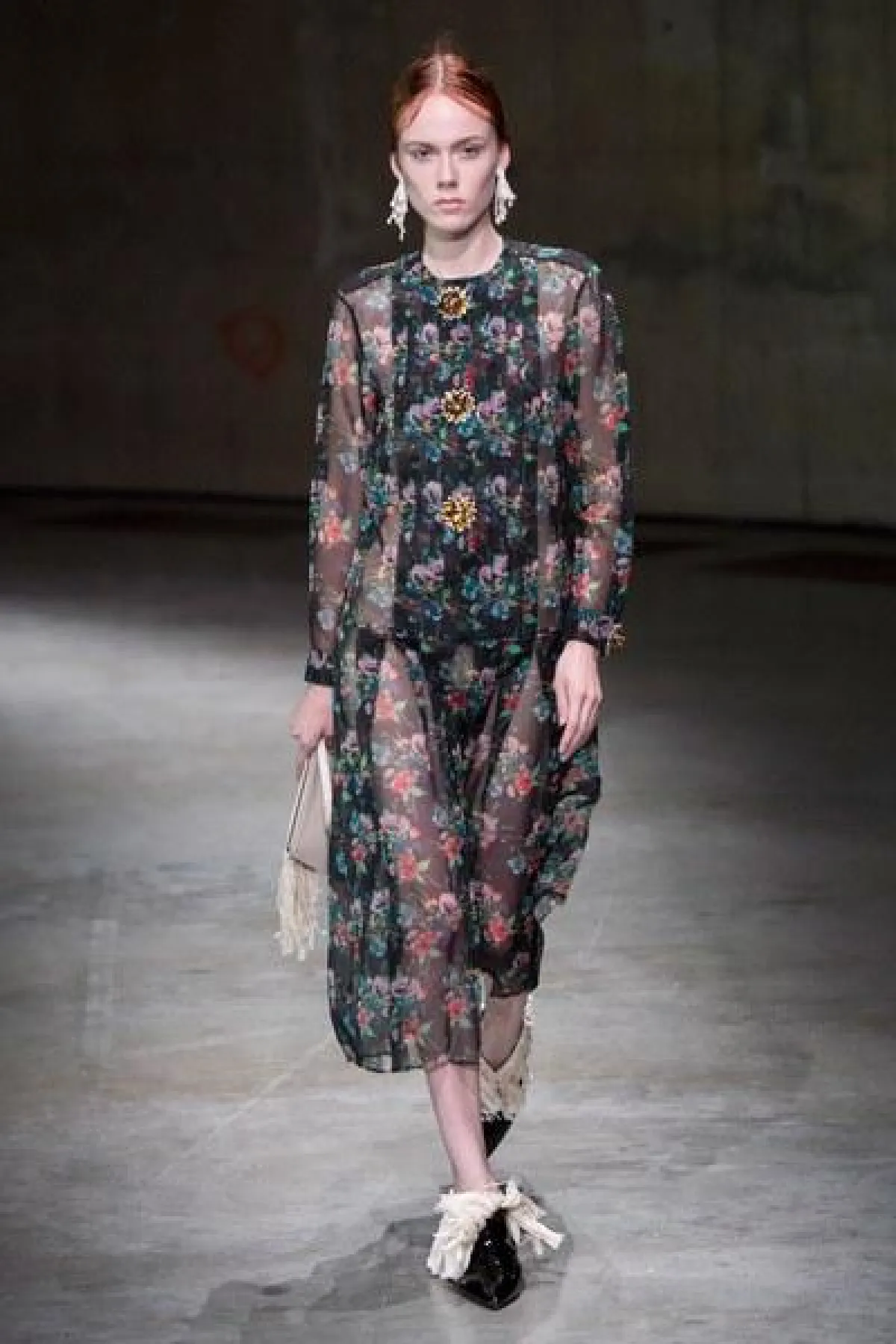 وسيطرت الفساتين المصممة من الكشكاش والحرير المنسدل، على العرض، الى جانب التصاميم الفضفاضة المريحة مع الطبعات المنوعة عليها.