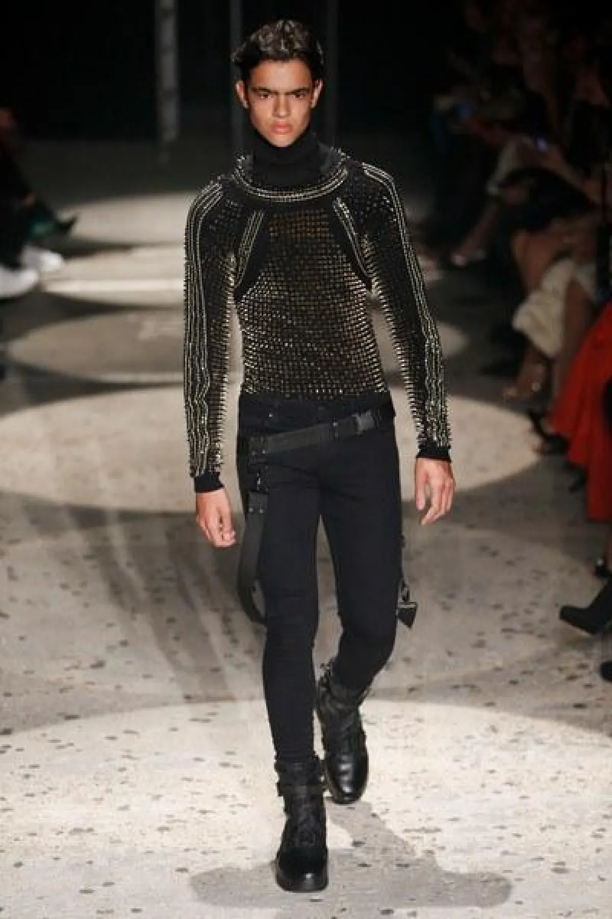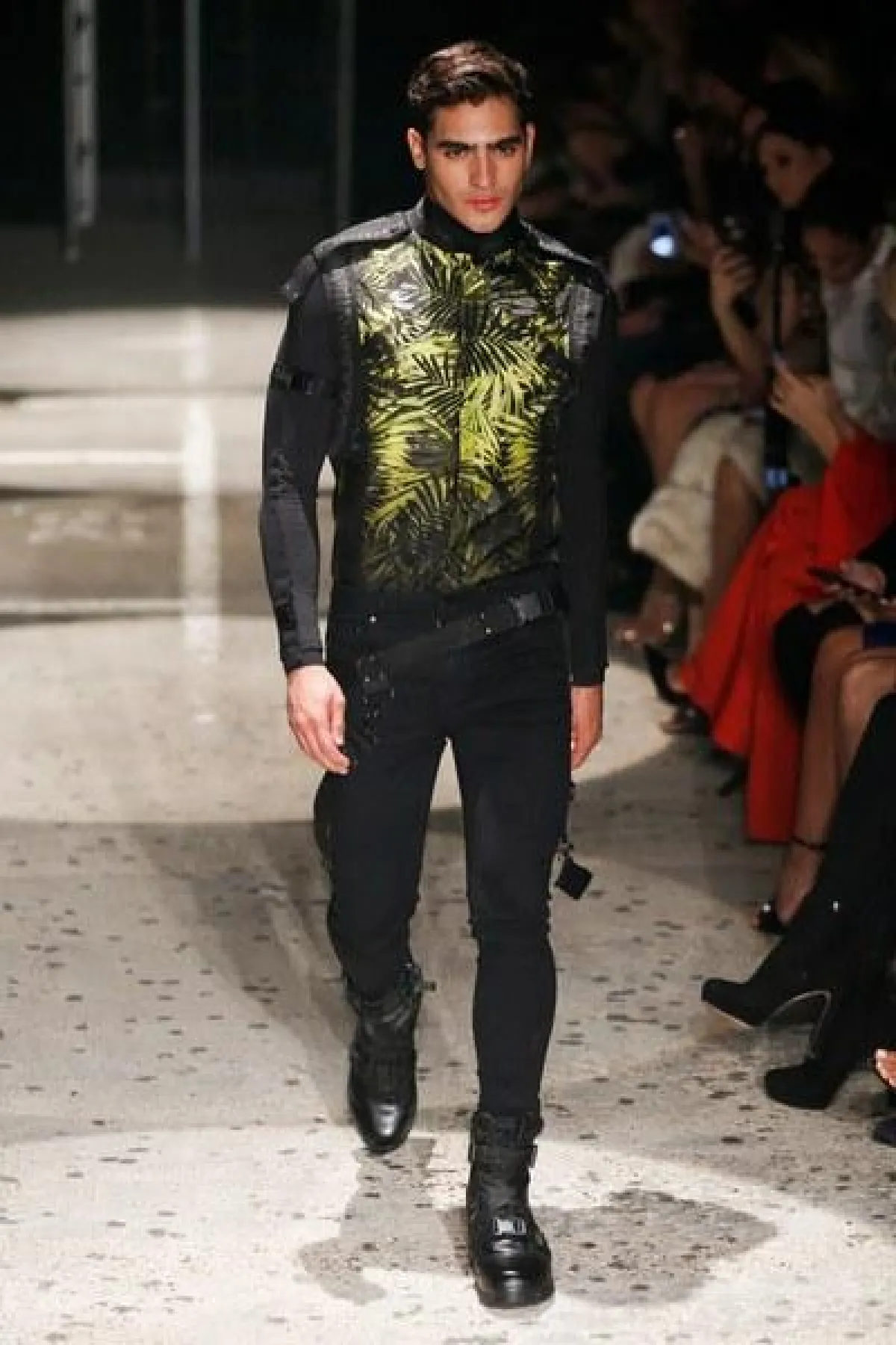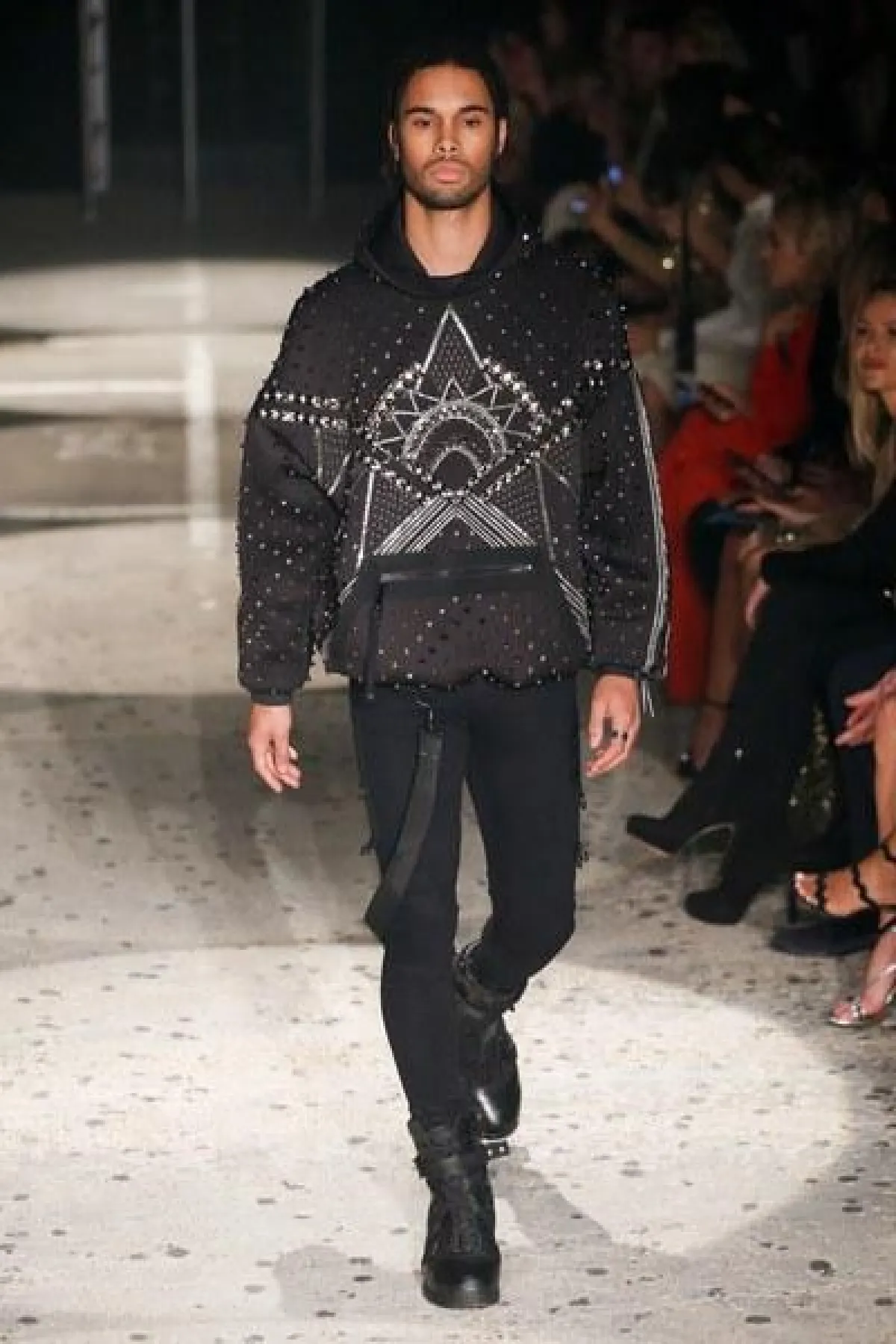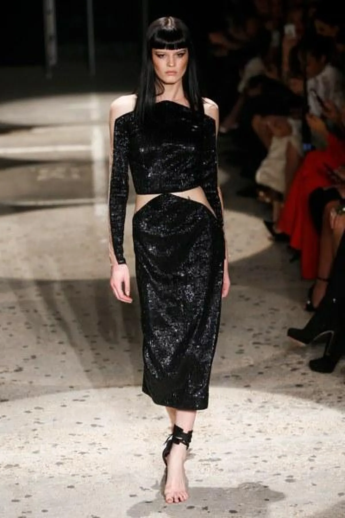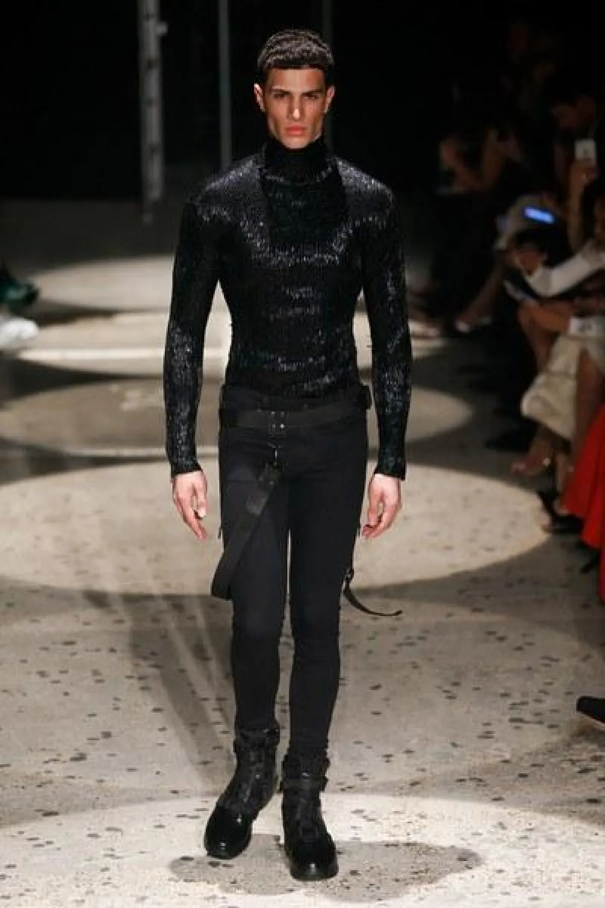 وتنوعت الأقمشة بين التول والكوبير، والدانتيل والشفاف، مع الستراس الناعم، كما ركّز ماكدونالد على الفتحة عند الفخذ والأكمام المخرّمة في أغلب فساتينه.