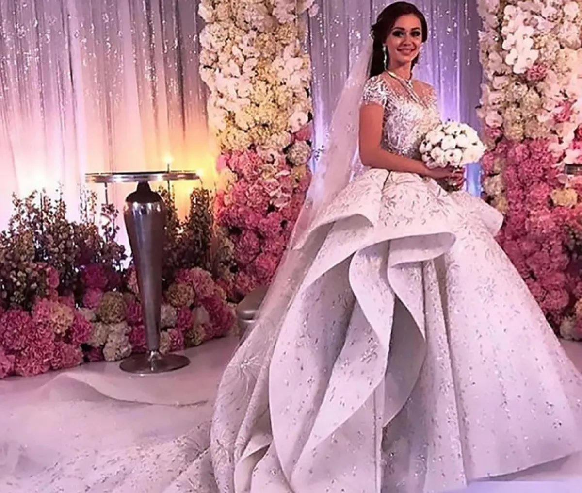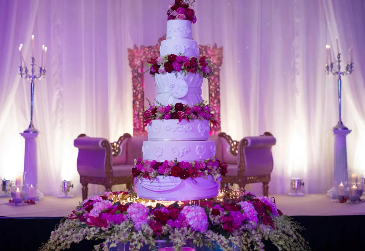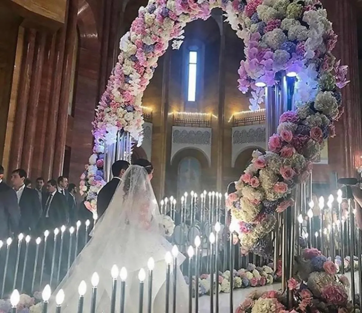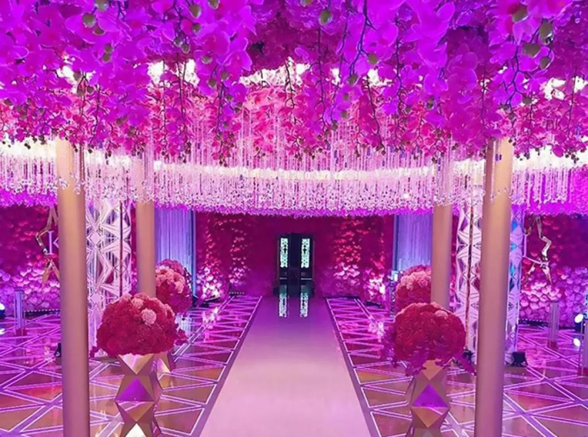 وأقيم زفاف الملياردير في كاتدرائية تم تزيينها بألوانٍ من الزهور، واستقبل الضيوف من كبار الشخصيات في حفل زفافه الفخم بـ "كعكة زفافٍ"، يبلغ طولها 15 قدماً.