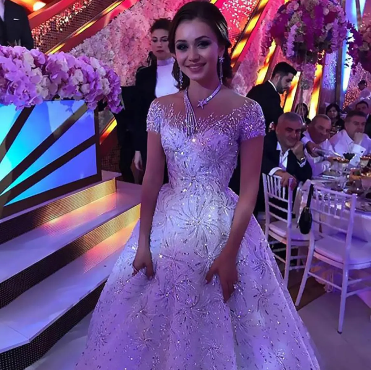 وبدَّلت العروس اثنين من الفساتين الباهظة، أحدهما مع تنورة مطوية، ولفتت كعكة حفل الزفاف الأنظار على مواقع التواصل الاجتماعي، حيث قال أحد المدعوين: "إنه حفل زفاف خيالي". وقال آخر: "كان هذا حفل زفاف رائعاً. العروس جميلة جداً، فستانها قاتل. أتمنى لكما حياة من السعادة".
