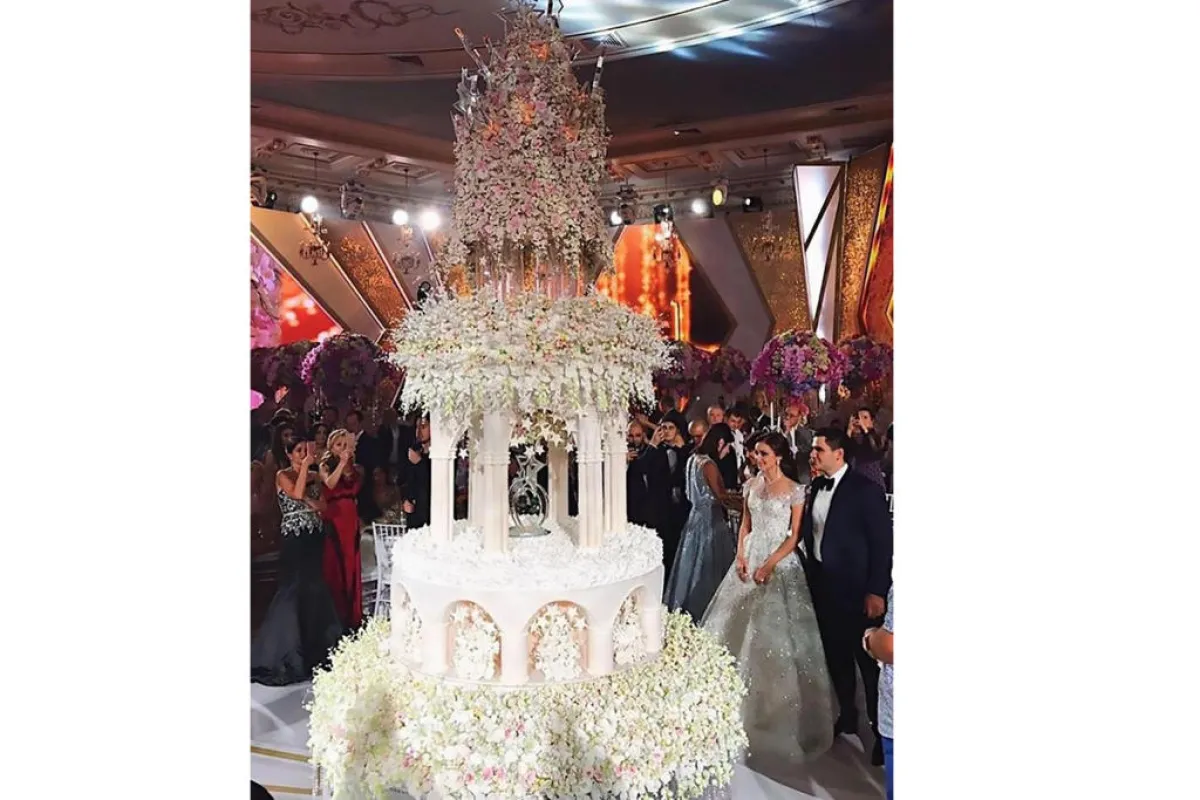 أجواء من الرفاهية طغت على حفل زفاف الملياردير الروسي كارين كارابيتيان، وأذهلت جميع المدعوين بالتفاصيل الفخمة التي خطفت أنظارهم وقلوبهم، وفي مقدمتها "كعكة الزفاف" الهائلة، التي امتازت بطولها ورقي تصميمها الشامخ.