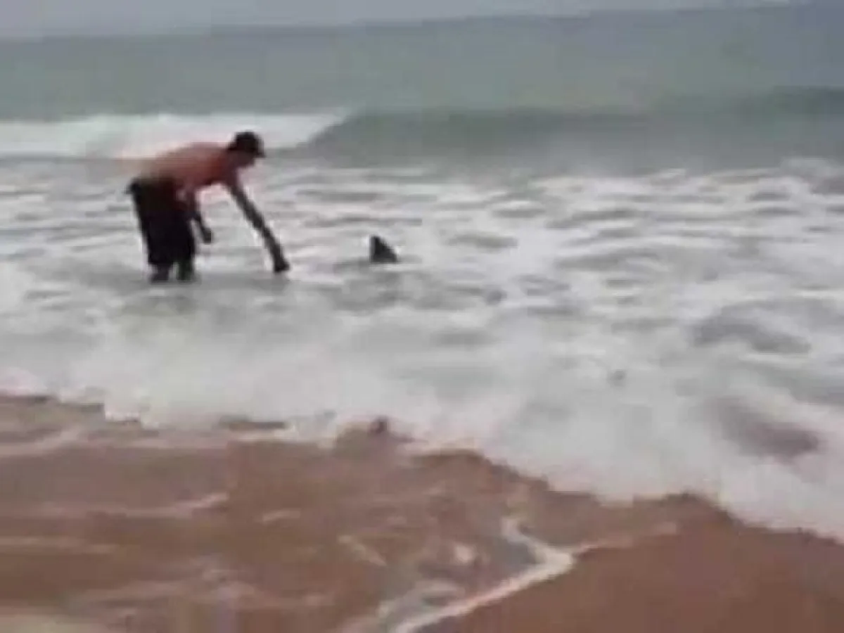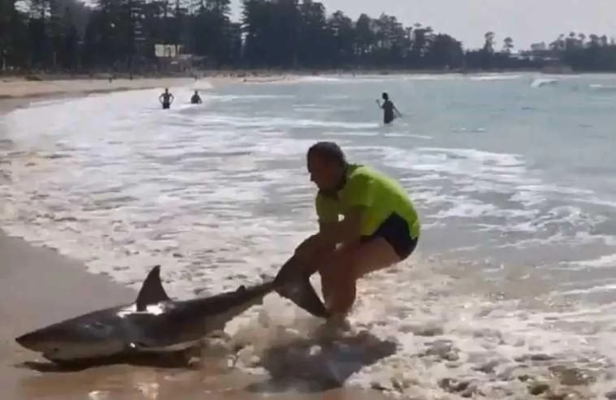 في موقف إنساني نادر، وفي مشهد جريء وغير مألوف، أعاد شاب سمكة قرش الى المحيط بعد ان قذفت بها الأمواج الى شاطئ سيدني في استراليا، وكادت ان تشارف على الموت.