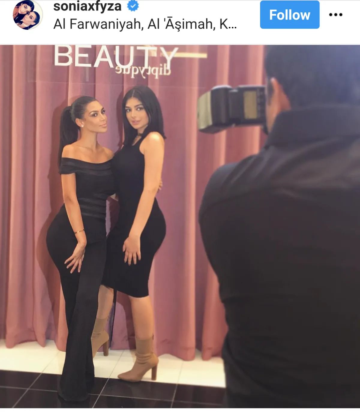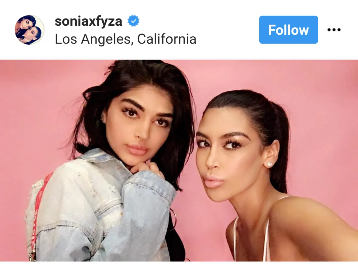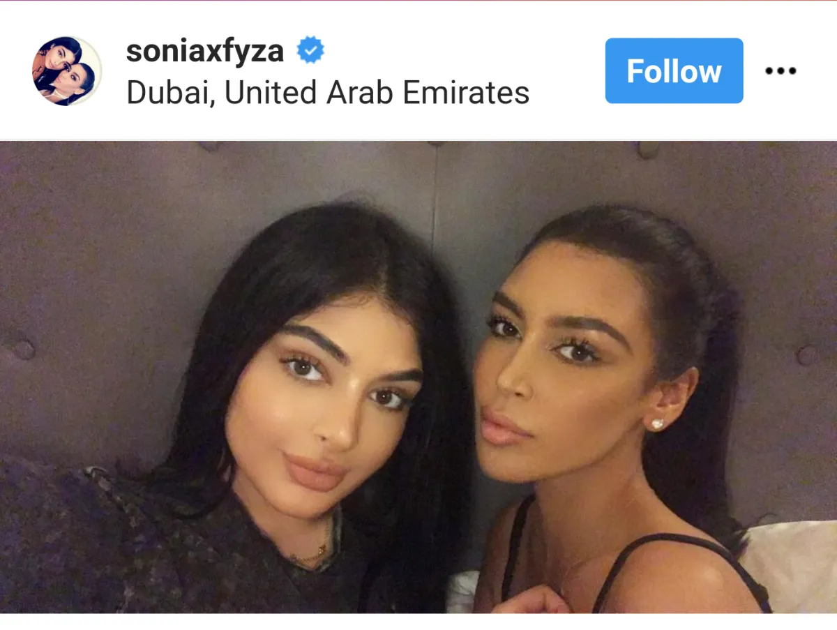 سونيا و فايزة علي، الشقيقتان اللتين تتخذان من دبي مقراً لهما مع أكثر من 600,000 متابع على إنستقرام. تعرفّ صفحتهما الناشطة على موقع إنستقرام أنّهما خبيرتا مكياج وتعنيان بكل ما يتعلّق بالجمال وهما مدوّنتان تهتمان بكل ما يتعلّق الموضة وأسلوب الحياة الباذخ ولكن يجب إضافة شيء واحد أكثر أهميةّ هو أنهما نسختان طبق الأصل عن نجمة تلفزيون الواقع الأمريكية كيم كارداشيان Kim Kardashian وأختها غير الشقيقة كايلي جينر Kylie Jenner .