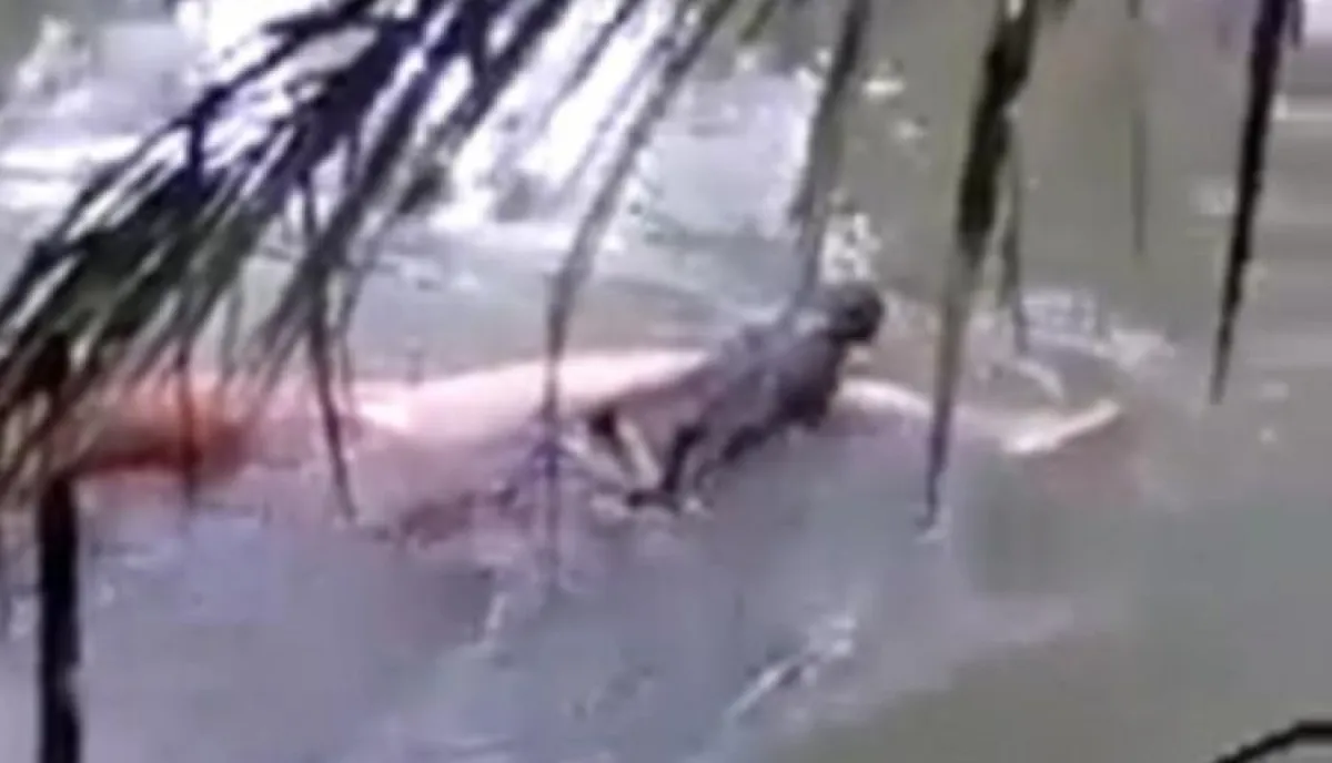 في مشهد مؤلم ومرعب، لقي رجل إندونيسي حتفه عندما وقع في فك تمساح التهمه أثناء محاولة مصارعته والإمساك به باستخدام القوى السحرية في مياه أحد الأنهار.