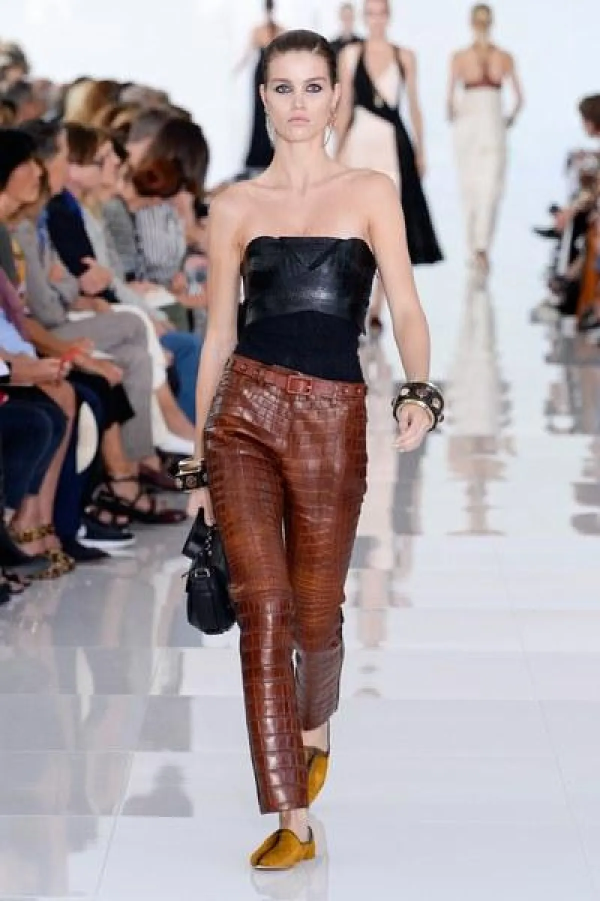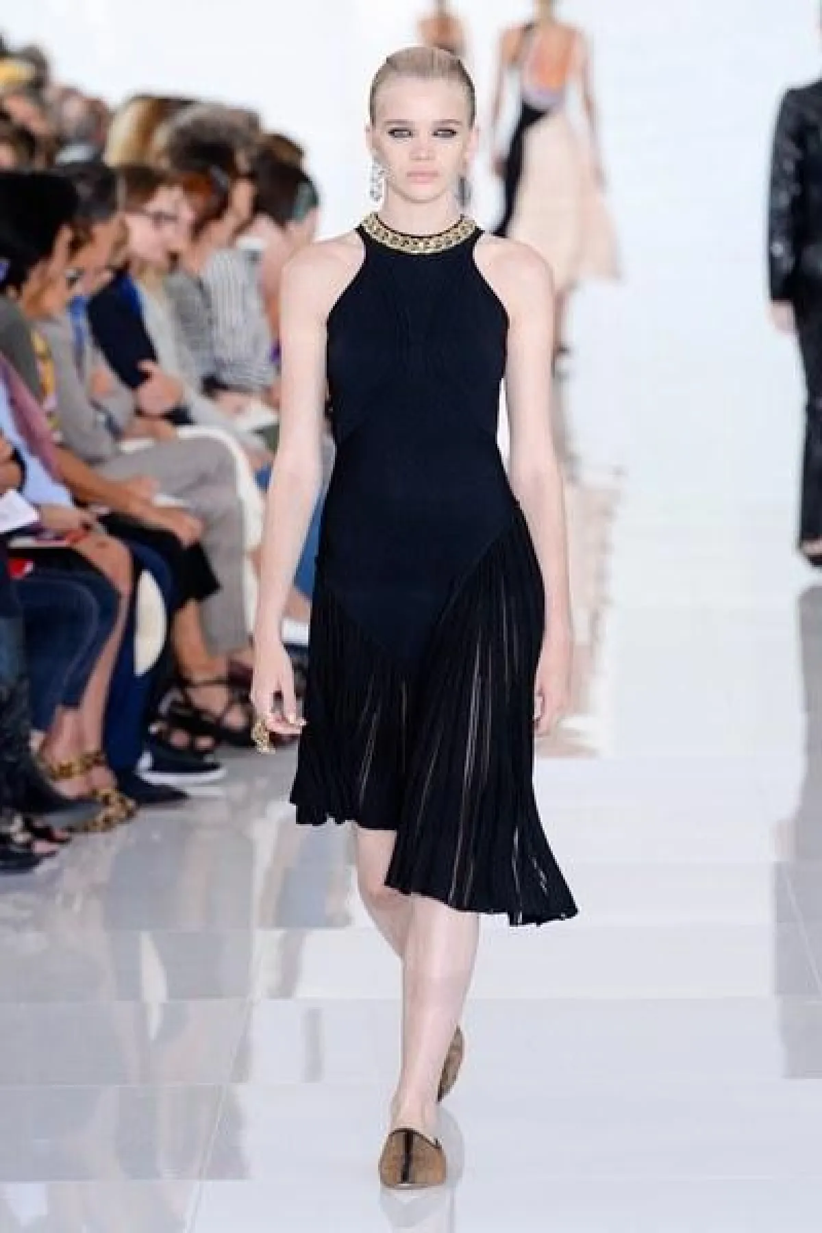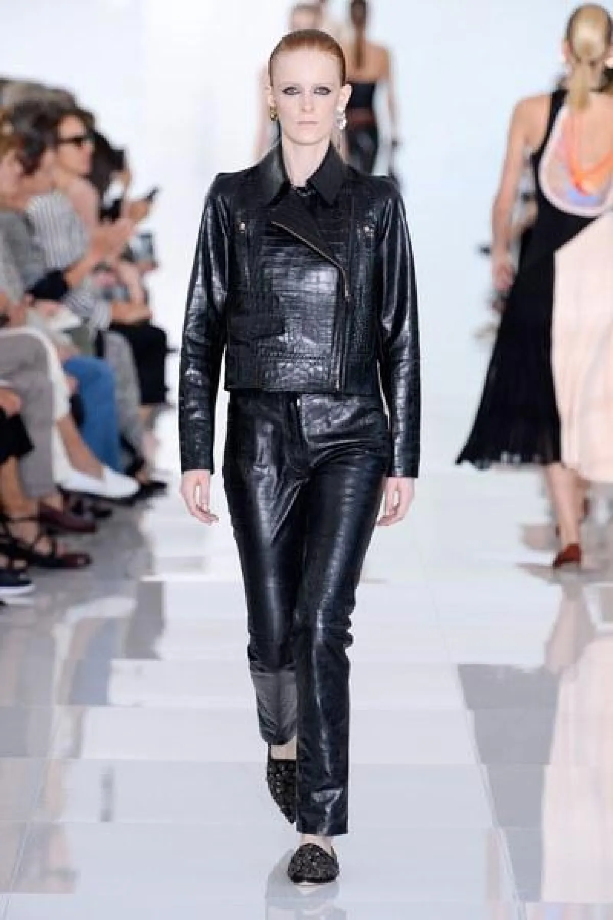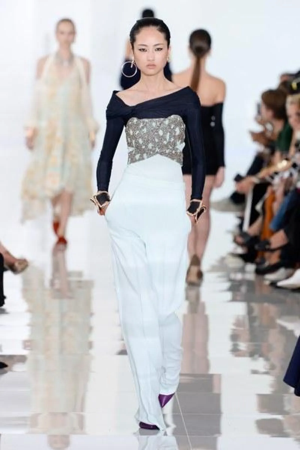وتنوعت التصاميم بين الفساتين والجمبسوت المصمم من أقمشة الحرير والشيفون والشفاف، أما الألوان فتأرجحت بين الأبيض والأسود والبني القاتم.