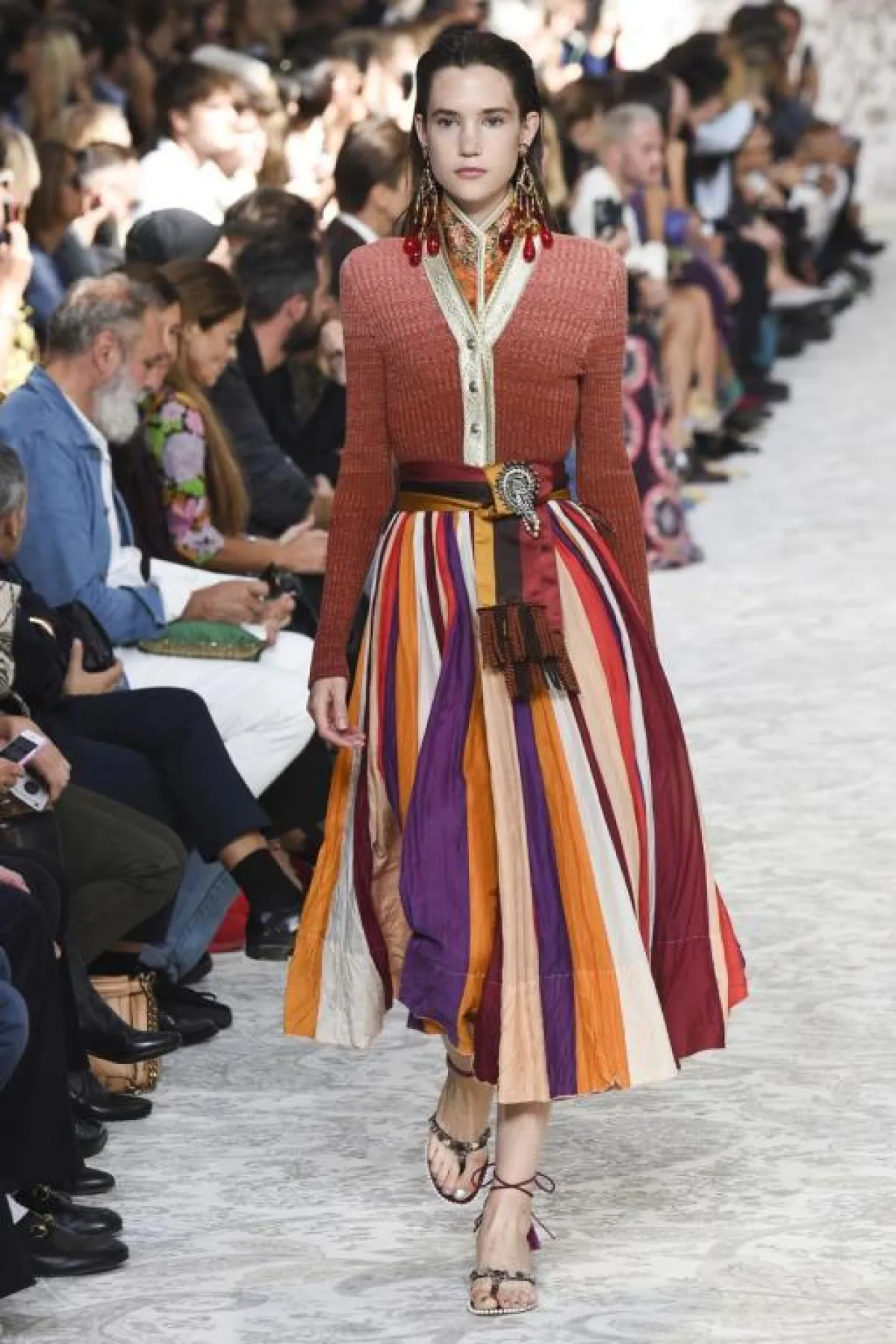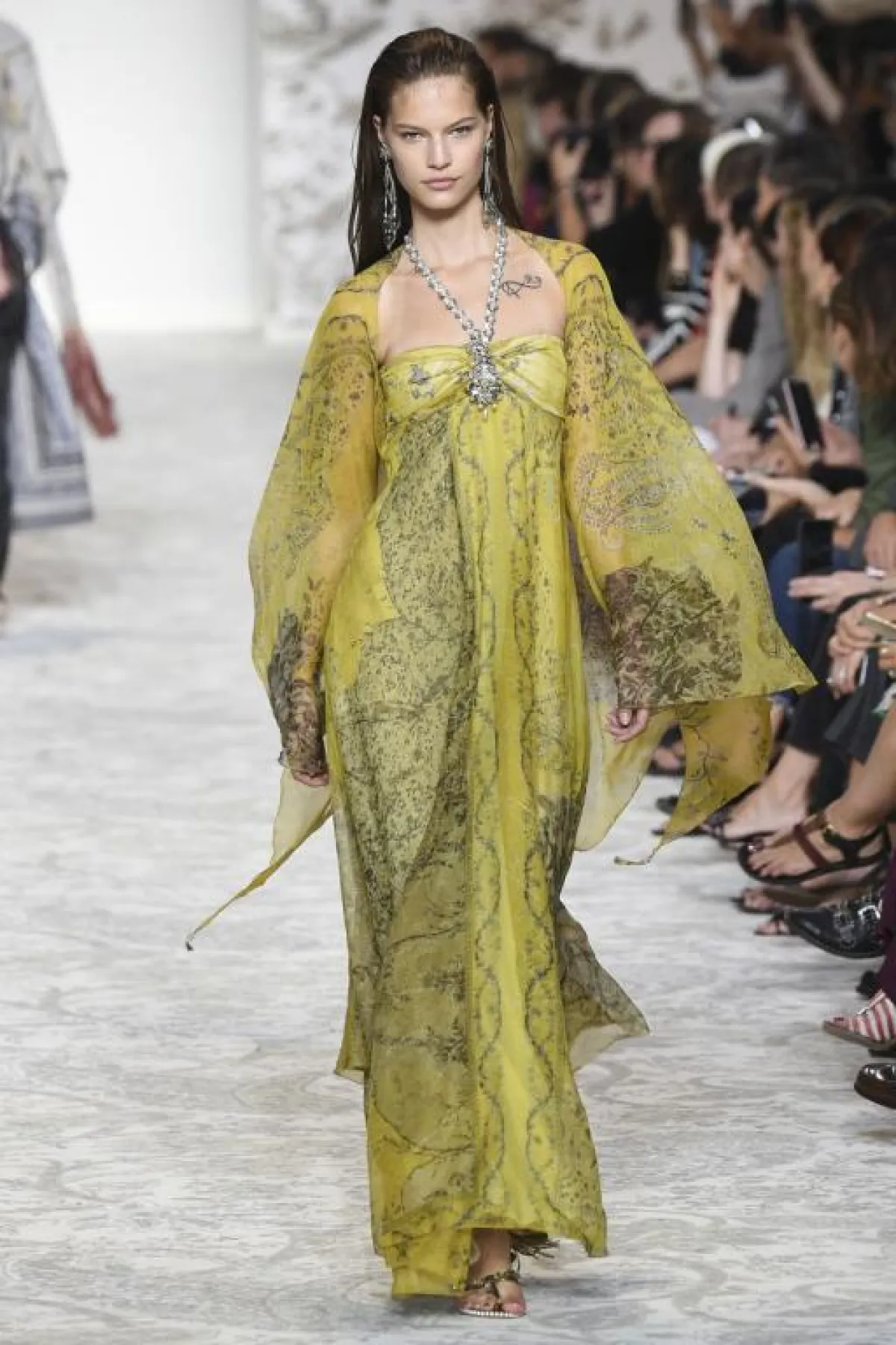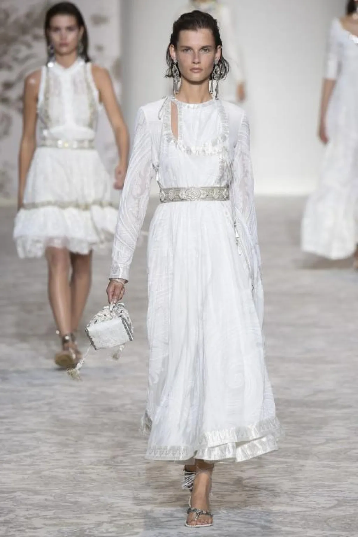 كما قدمت دار "ايترو" Etro مجموعتها الجديدة لموسم ربيع وصيف 2018 وقد كانت من أجمل المجموعات ومن أكثرها تنوّعاً للدار، وقد تم افتتاحها باللون الأبيض مع أقمشة مطرّزة بطريقة ناعمة بخيوط فضية، ومن ثم بدأت مجموعات الألوان بالظهور تدريجياً، وقد تمثلت بتعريقات الدار الشهيرة، كما بالقصات التي، مثل العادة، بدت إلى حدّ بعيد شرقية، مع لمسات من العصرية الشبابية.