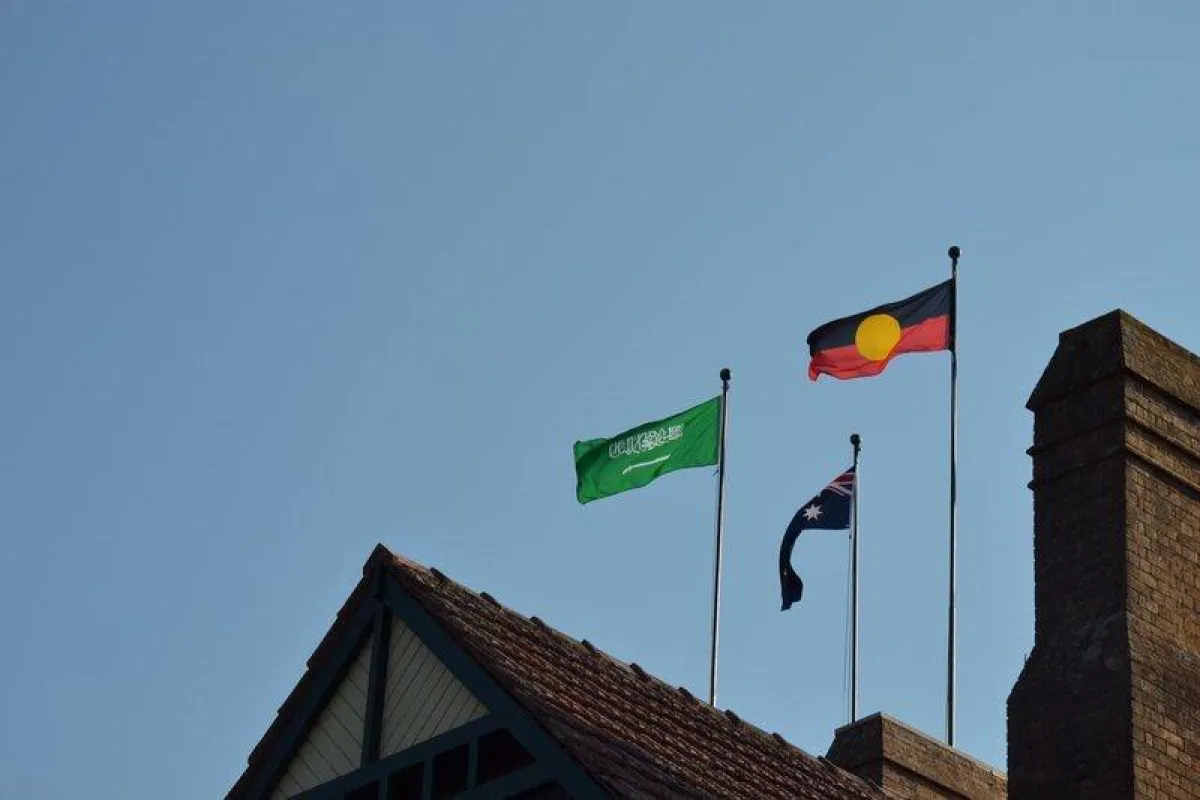 رفع العلم السعودي على أعلى مبنى بجامعة نيونجلد الأسترالية