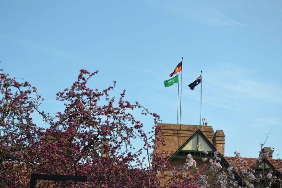 العلم السعودي على أعلى مبنى بجامعة نيونجلد الأسترالية