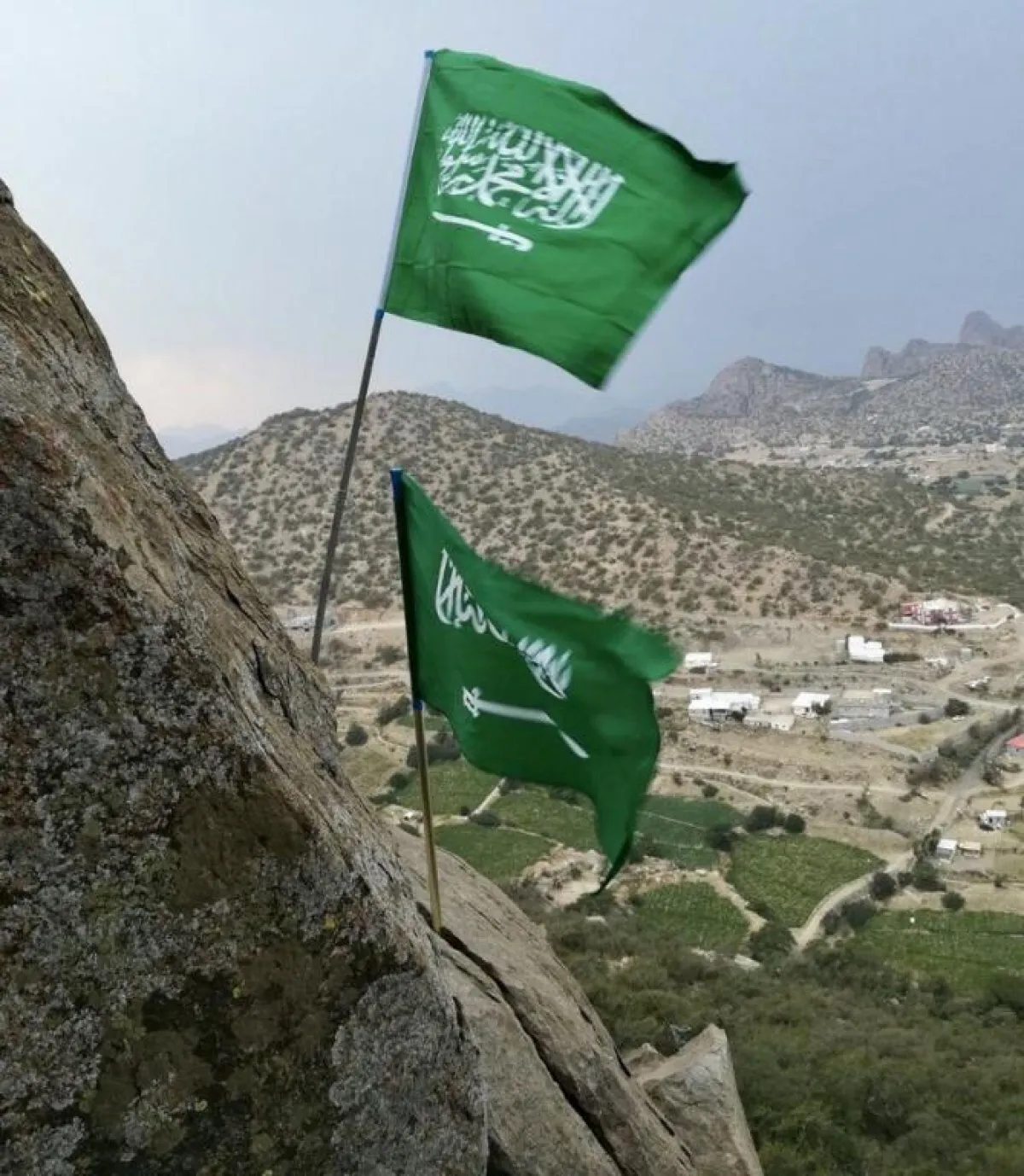 رفع ثلاثة شبان العلم السعودي في أعلى قمة جبلية بمحافظة ميسان الإيرانية، احتفالًا بـ اليوم الوطني السعودي الـ 87.