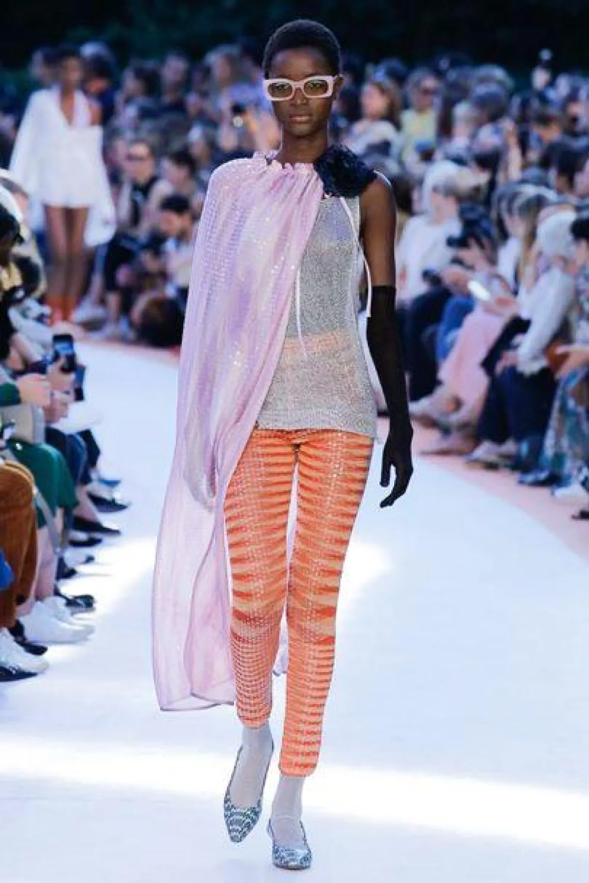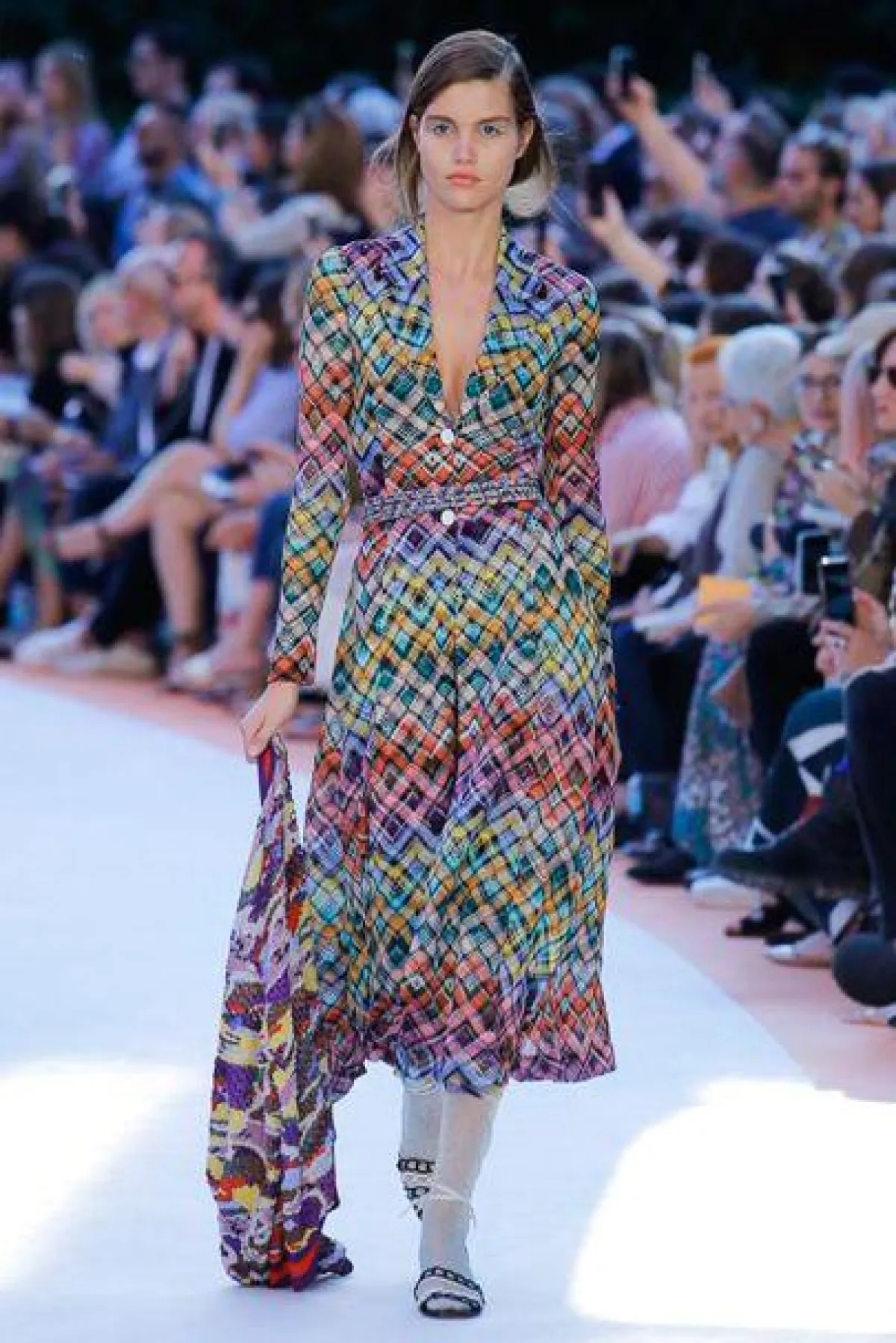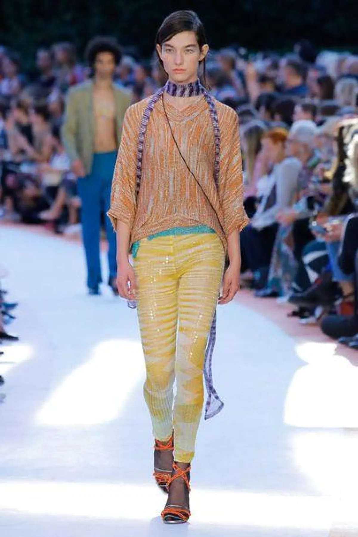 وصلنا لليوم الرابع من أسبوع الموضة في ميلانو لموسم ربيع وصيف 2018، وقد تابعنا عدد من العروض اللافتة، التي قدمت أفكار جديدة ومميزة، ومنها عرض أزياء دار "ميسوني" Missoni والتي قدمت مثل العادة مجموعة غنية بالتفاصيل والألوان والتعريقات، حيث الى جانب النقشة التي اشتهرت بها الدار شاهدنا أيضاً طبعات جديدة على الأقمشة وتمازج لوني شكل لوحات فنية مميزة. وقد تنوعت التصاميم بين الفساتين المتوسطة الطول والفساتين الماكسي، وبين تنسيقات السراويل مع السترات الخفيفة. والجمبسوت والتنانير. وأكثر ما لفتنا هو الجاكيتات الصوفية المحاكة والملونة والتي تم تنسيقها مع الجوارب النسائية باللون الأبيض، وقد شاهدنا تشكيلة من الاكسسوارات المميزة من صنادل من دون كعب، ومجوهرات لافتة وقفازات، وبروشات على شكل ورود وقبعات بأحجام كبيرة وغريبة.