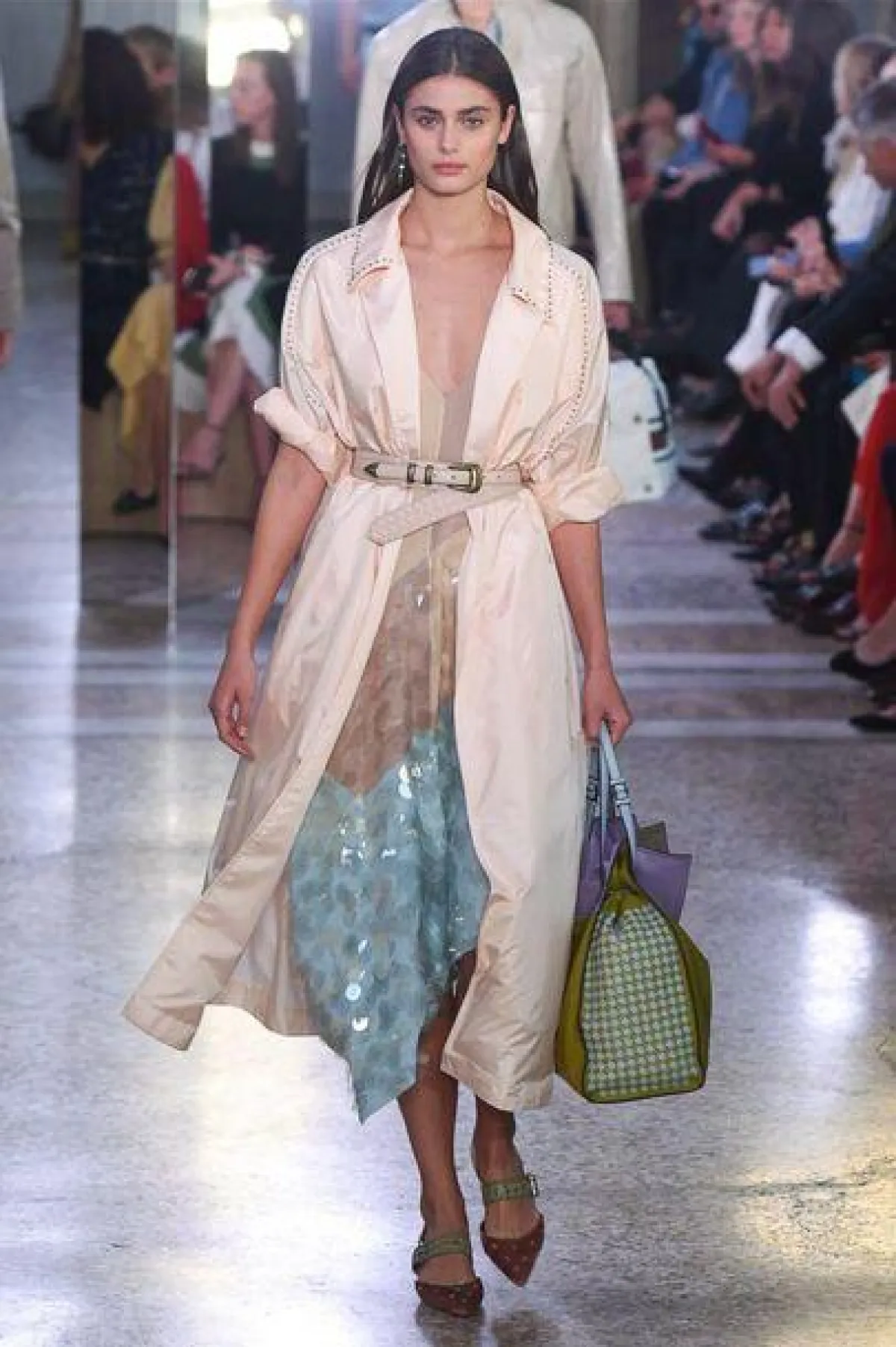 وكذلك قدمت دار "بوتيغا فينيتا" Bottega Veneta مجموعتها الجديدة لموسم ربيع وصيف 2018 وقد بدت المجموعة شبابية وعصرية وفيها الكثير من الألوان الحيوية، وقد كانت الفكرة منها اضافة لمسات من المرح الى روتين الحياة اليومية، وقد شاهدنا القصات العملية والمريحة التي استوحيت من الأزياء الكاجوال الأمريكية اضافة الى لمسات من الفخامة الراقية التي لطالمات اشتهرت بها الدار، وقد لفتتنا الأقمشة البراقة والشراريب التي زينت بعض التصاميم.