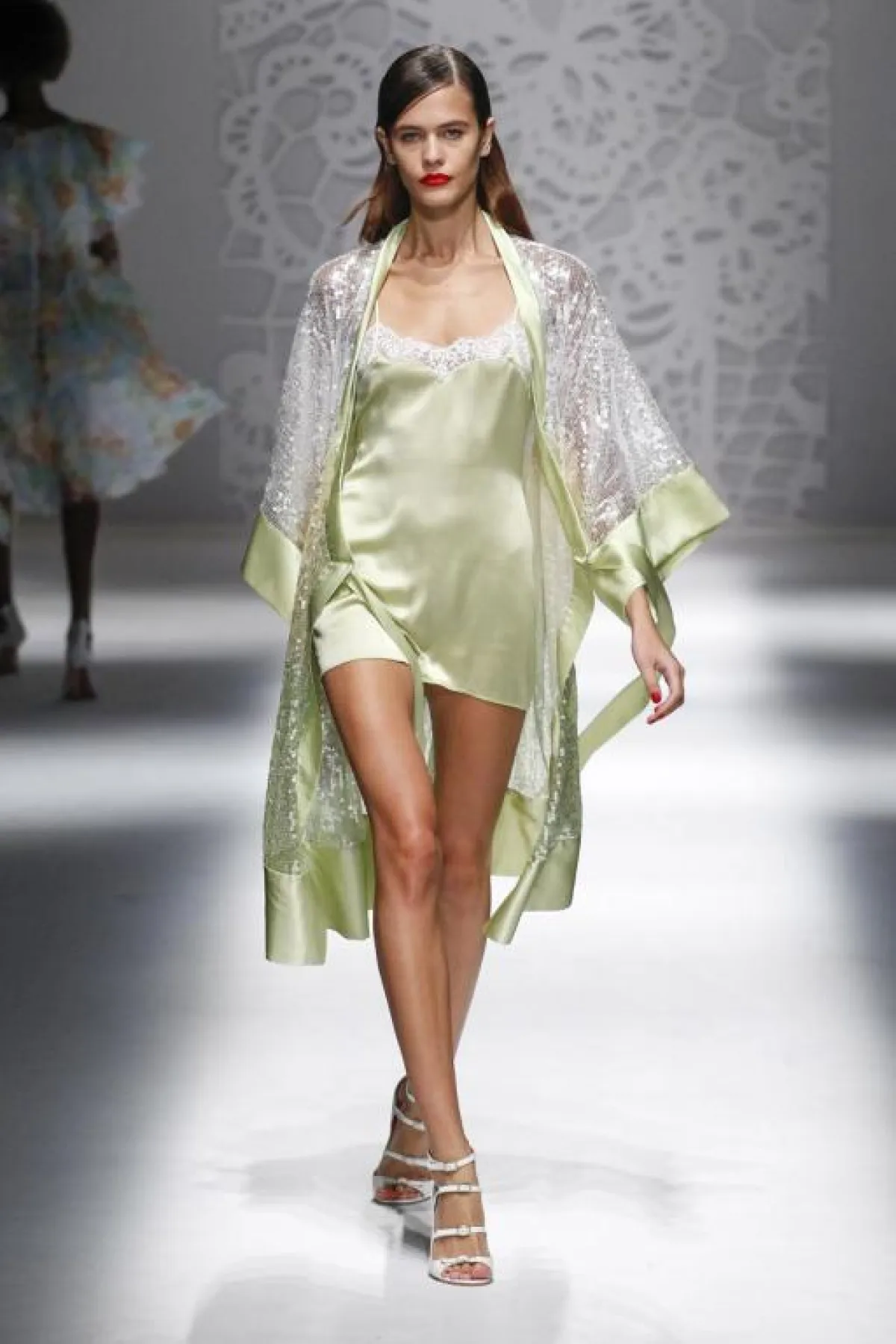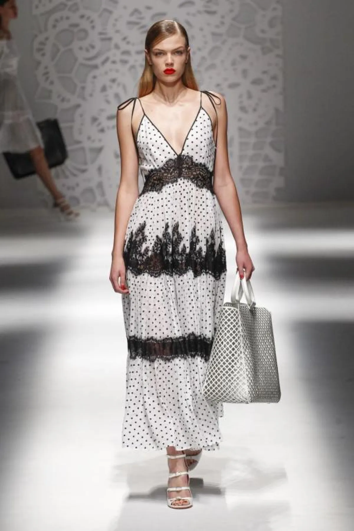 ومن جهة أخرى تابعنا عرض أزياء دار "بولمارين" Blumarine للمجموعة الجديدة، وقد بدت غاية في الروعة والأنوثة وقد تم التركيز فيها على مزيج اللونين الأسود والأبيض ومن ثم تدرجت ألوان الباستيل الهادئة، وطبعات الورود الناعمة، وقد شاهدنا الكثير من التصاميم التي استوحيت من ملابس النوم الأنثوية بأقمشتها الناعمة والمرهفة، اضافة الى تشكيلة فساتين السهرة ذات القصات البسيطة.