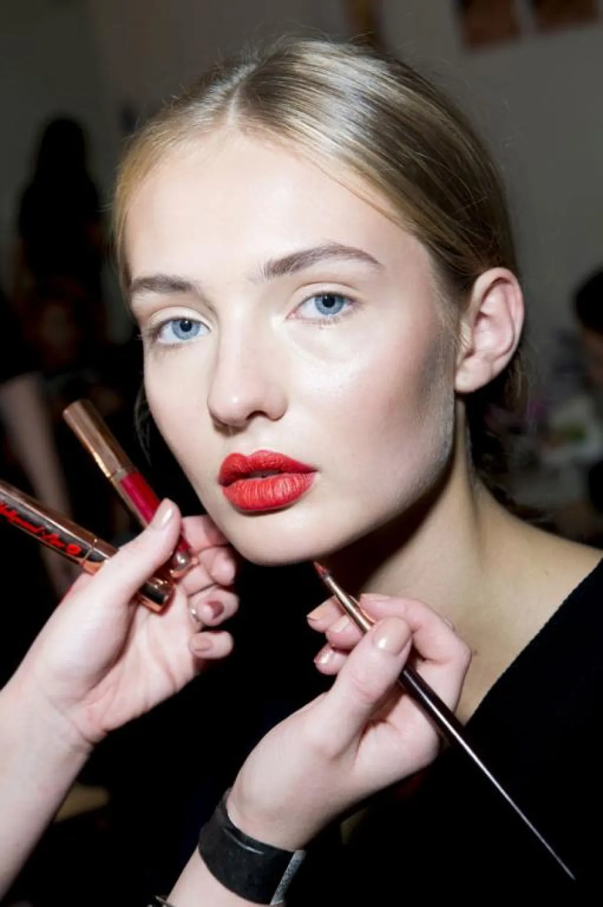 6. استعانت شارلوت بهايلايتر Hollywood Beauty Light Wand فوق الوجنتين، باتجاه عظمة الوجنتين ووسط الأنف وفوق الشفة العليا لتتألّق العارضات بإشراقة تخطف الأنظار!