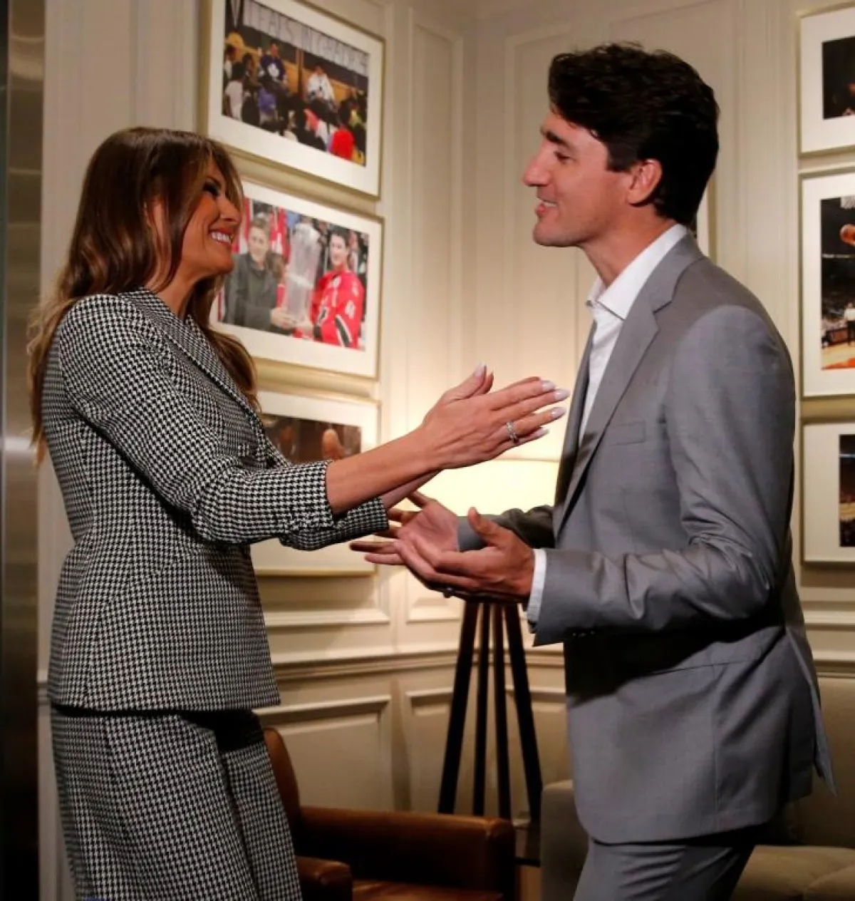 رئيس وزراء كندا في أثناء استقباله ميلانيا ترامب