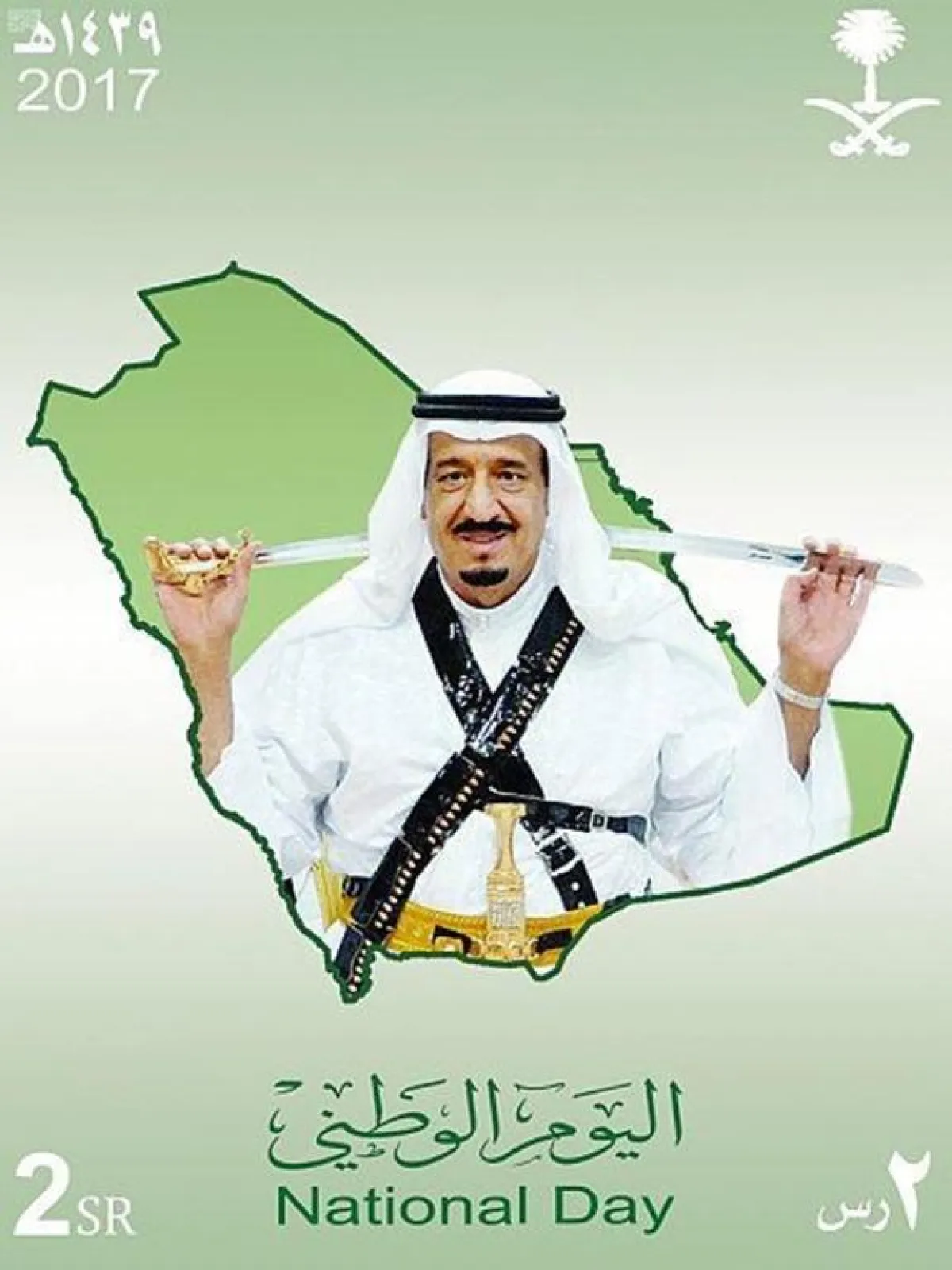 أصدرت مؤسسة البريد السعودي طابعًا بريديًا تذكاريًا؛ بمناسبة اليوم الوطني الـ87، تضمن صورة لخريطة المملكة العربية السعودية، تتوسطها صورة لخادم الحرمين الشريفين الملك سلمان بن عبدالعزيز، حاملاً سيفًا، وهو بالزي التراثي للعرضة السعودية.
