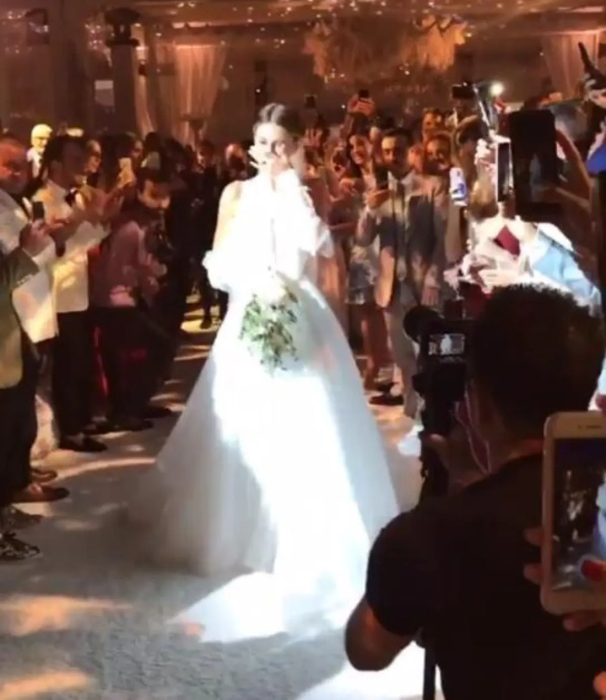 كما ارتدت فستان زفاف ثانيًا في حفل العشاء الساهر، الذي أقيم مباشرة بعد حفل عقد القران الرسمي، بحضور المدعوين الـ 250، واتّسم بأجواء رومانسية مرحة حتى ساعات الصباح الأولى.