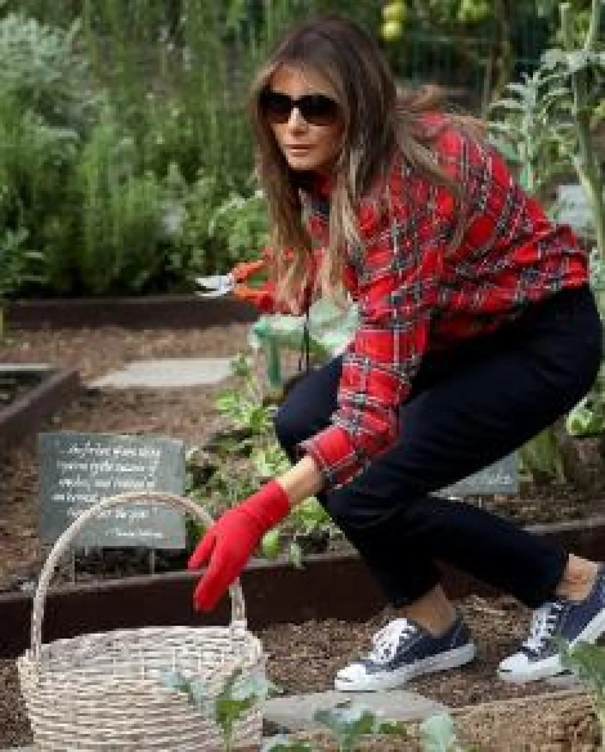وقالت زوجة الرئيس الأميركي، دونالد ترامب، في حديثها مع الأطفال، الذين تتراوح أعمارهم بين 11 و12 عاماً: "شكرا لأنكم أتيتم لمساعدتي في القطف"، مشجعة إياهم على قطف وزراعة الخس والفجل والجزر وغيرها من الخضار.
