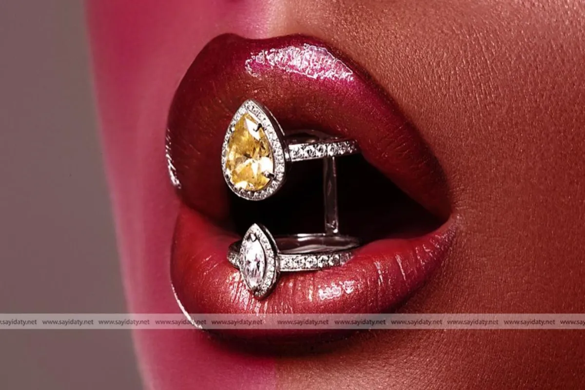 الفم تم تلوينه بواسطة احمر الشفاه الذهبي " غولد شوك من ديور " Dior Shock ,Dior