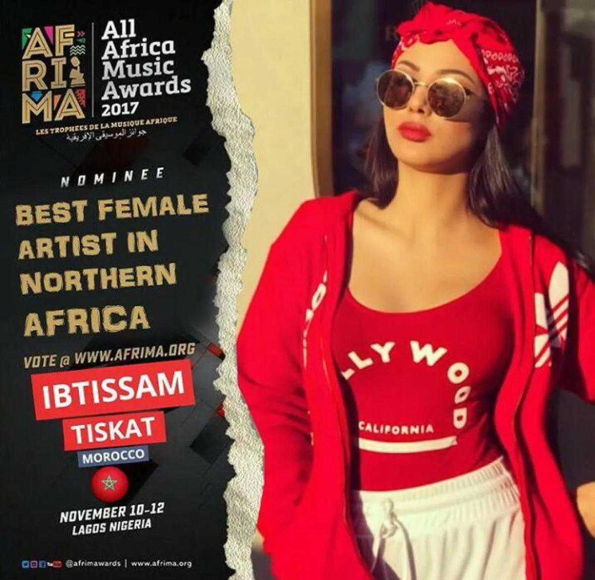 طلبت الفنانة المغربية ابتسام تسكت من جمهورها التصويت لها في مسابقة غنائية لنيل لقب "Nigeria Ng".