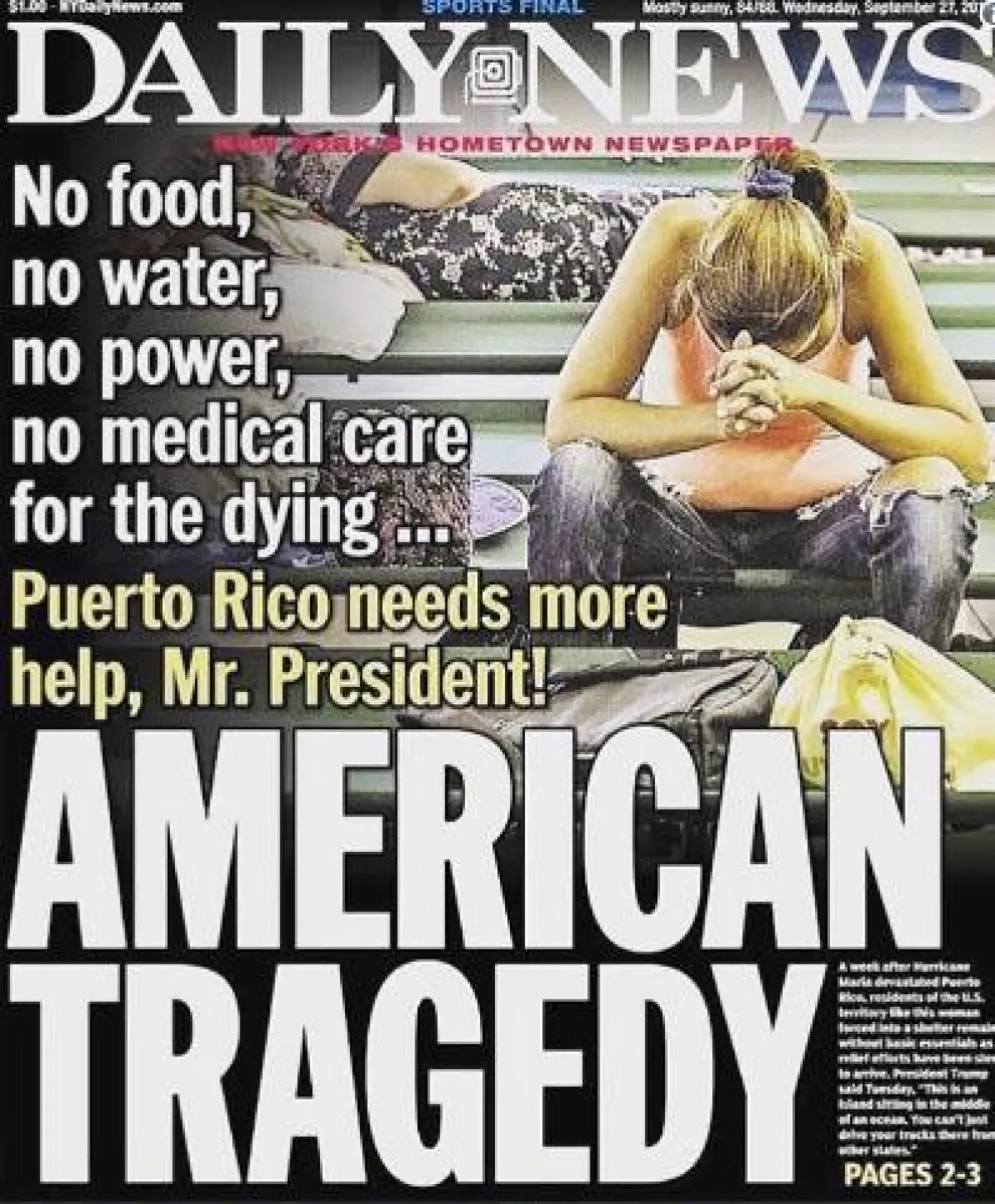 وأشارت النجمة الشهيرة إلى غلاف صحيفة "نيويورك ديلي نيوز" الذي حمل عنوان "بورتوريكو تريد مزيداً من المساعدة أيها الرئيس"، فيما وصف العديد من نجوم هوليوود منهم الموسيقار لين مانويل ميرندا Lin-Manuel Miranda ، المغنية جينيفر لوبيز Jennifer Lopez ، والمغني بيتبول Pitbull ، استجابة ترامب للكارثة الإنسانية في بورتوريكو بـ"البطيئة".