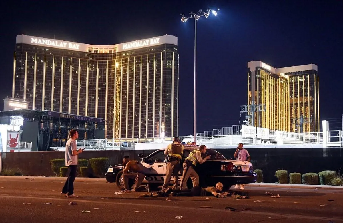 وذكرت وسائل إعلام عالمية، أن حصيلة الاعتداء حتى الآن هي قتيلان، من بينهما شرطي، و24 جريحاً، فيما أكد شهود عيان أن إطلاق النار كان من الطابق الـ29 باتجاه الحشود المتجمعة في الأسفل.