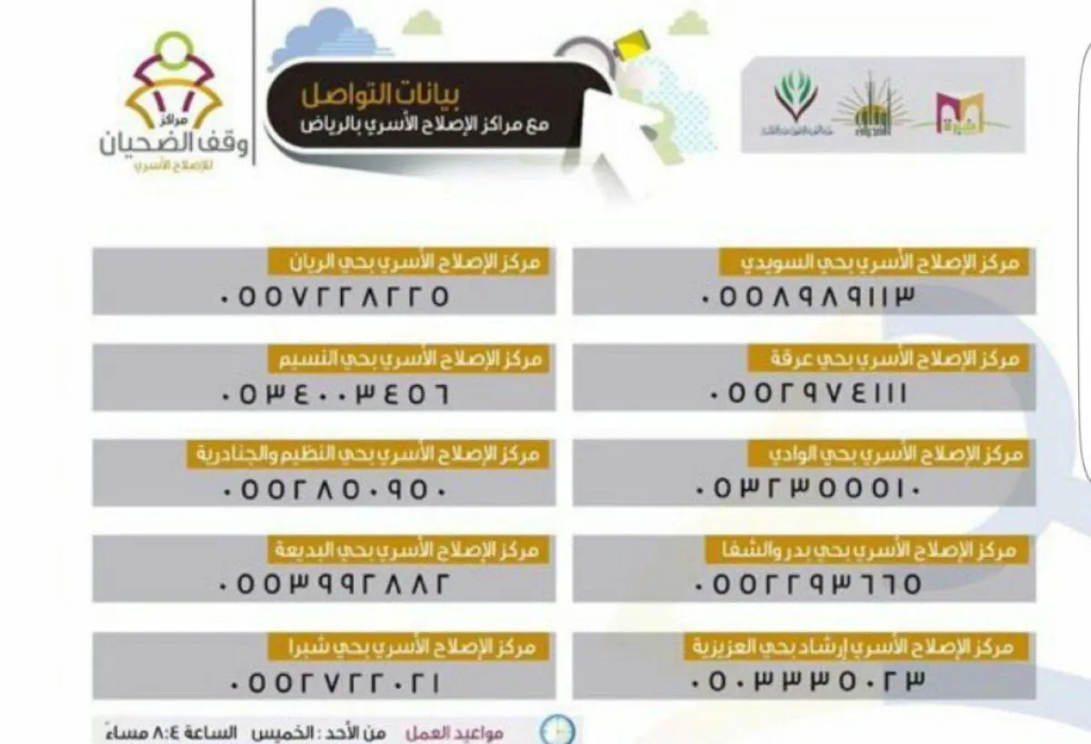 ومن الجدير بالذكر أن مركز الإصلاح الأسري بحيي بدر والشفا يقدم الكثير من الإصلاحات، سواءً في حالات الخلافات الزوجية، أو خلافات ذوي الأرحام، أو خلافات الأصدقاء والجيران وقطيعة الرحم والعقوق، وذلك بحضور الطرفين، وكذلك الاستشارات التربوية والأسرية.
