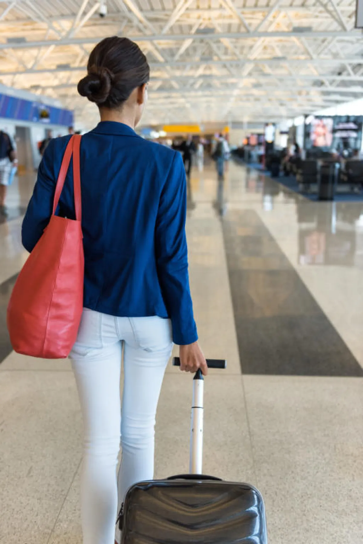 توضع في شنط السفر اليدوية: قناع العينين وسدادات الأذنين، وفرشاة ومعجون أسنان، فضلًا عن مناديل الوجه أو غسول الوجه، بعبوات لا تتجاوز سعاتها المائة ميلليلتر وألعاب خفيفة وصغيرة، لتسلية الطفل في الطائرة، إذا كنتِ برفقة رضيع. أمّا الأغراض الممنوع حملها على متن الطائرة، فهي: