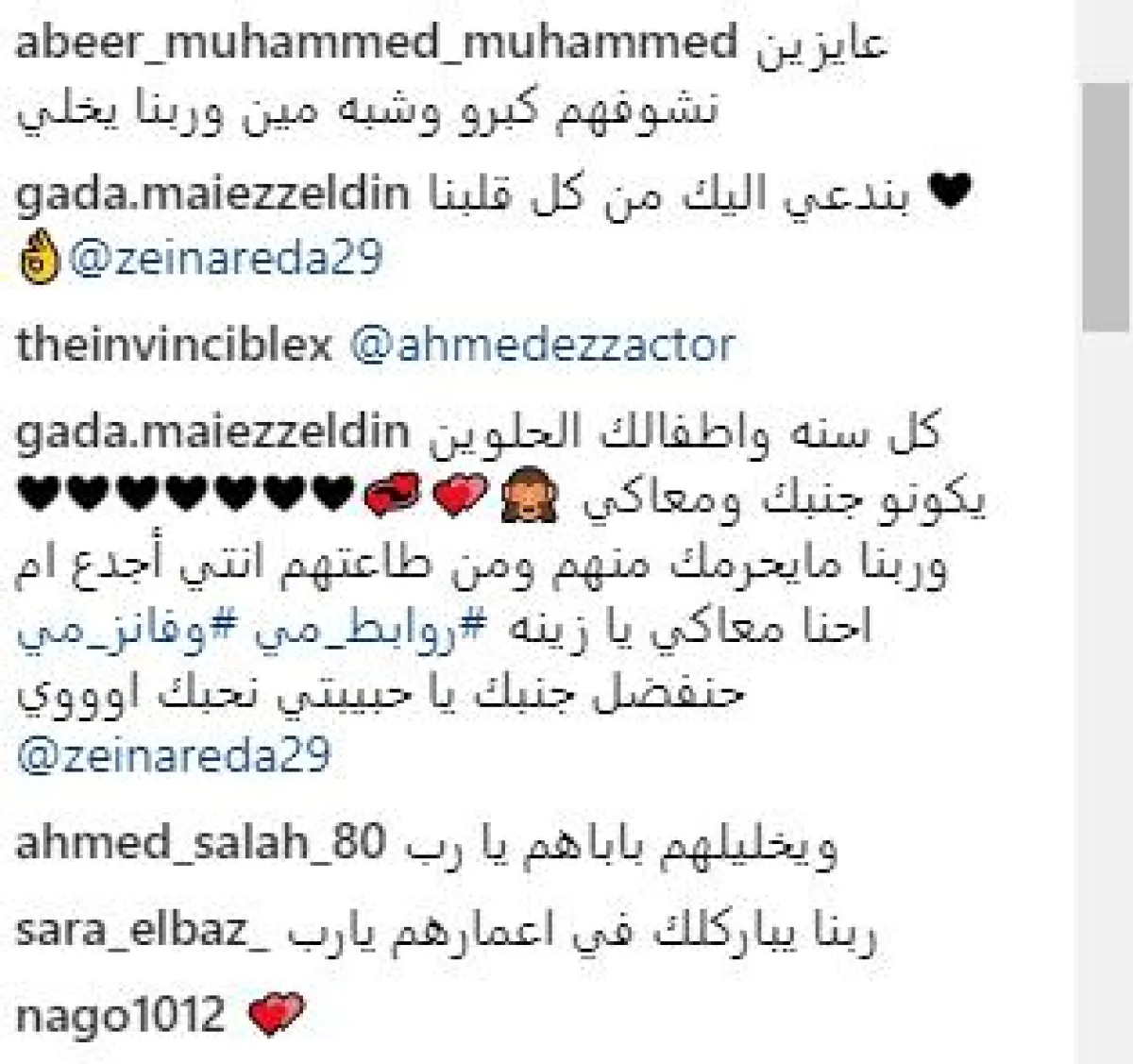جمهور زينة تفاعل مع الصورة والرسالة وبخاصة رابطة ألتراس مي عز الدين، وانهالت التعليقات بالتهنئة بعيد ميلاد التوأمين، والمطالبة بنشر صورهما فقالت معجبة تدعى غادة: كل سنة واطفالك الحلوين يكونو جنبك ومعاكي، وربنا مايحرمك منهم ومن طاعتهم، انتي أجدع امّ احنا معاكي يا زينة روابط_مي وفانز_مي حنفضل جنبك يا حبيبتي نحبك اوووي !!